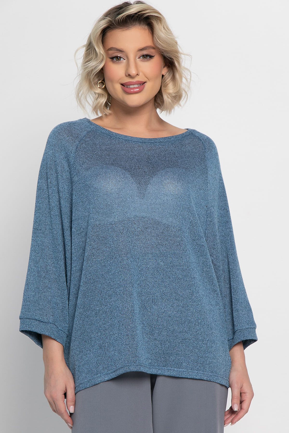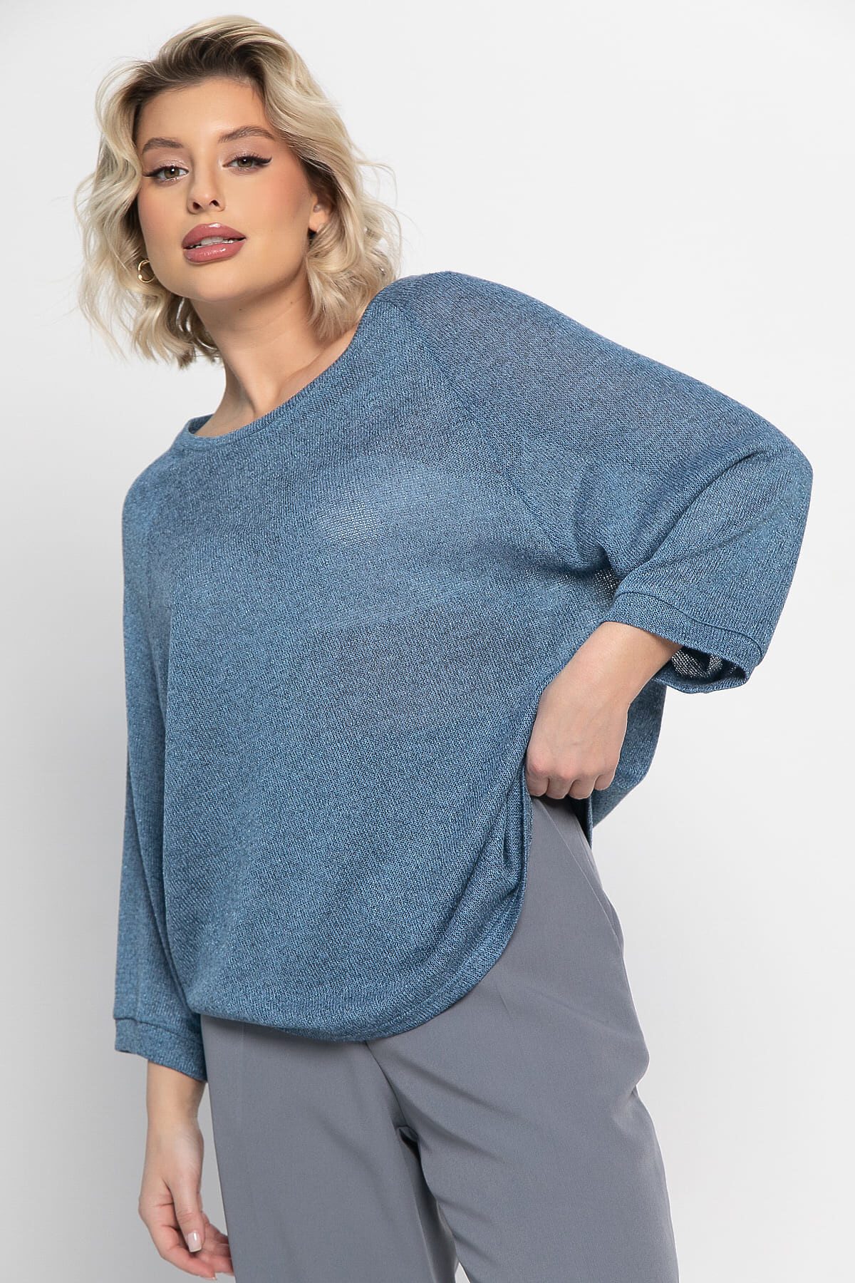 Сочетание модного силуэта, приятного материала и актуального цвета делает эту модель идеальным выбором для создания стильных и комфортных образов. Рукава выполнены по типу «летучая мышь», который обеспечивает свободу движений и создает легкий, непринужденный образ. Овальный вырез горловины деликатно подчеркивает линию шеи, добавляя модели женственности и утонченности. Блуза выполнена в красивом джинсовом цвете, который легко сочетать с различными предметами гардероба. Носите ее с брюками, джинсами или юбками, экспериментируйте со стилями и наслаждайтесь комфортом и привлекательным видом!