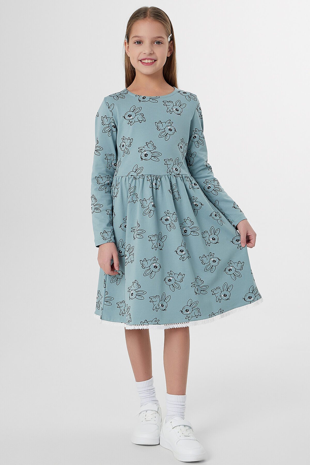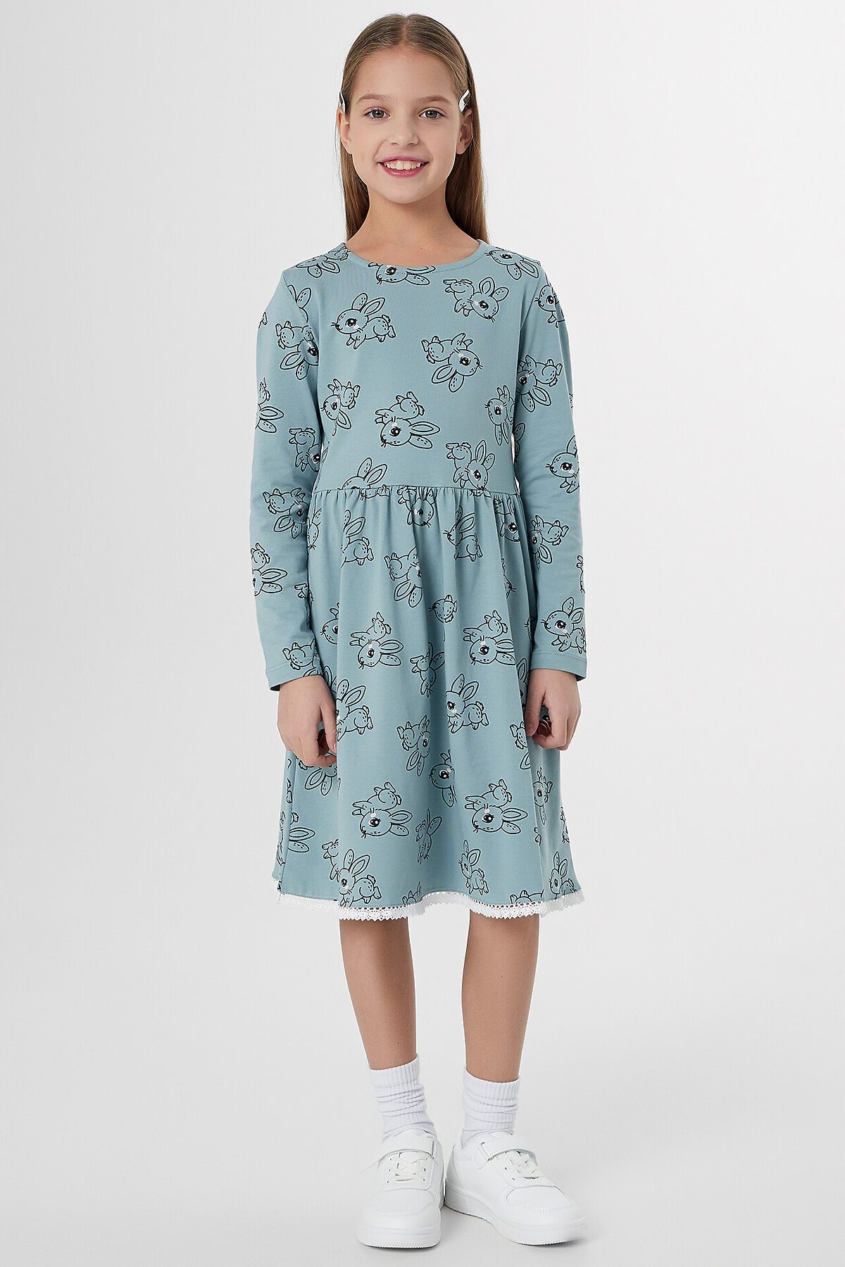 Платье для девочек MARK FORMELLE, зайчики на цвете сланец