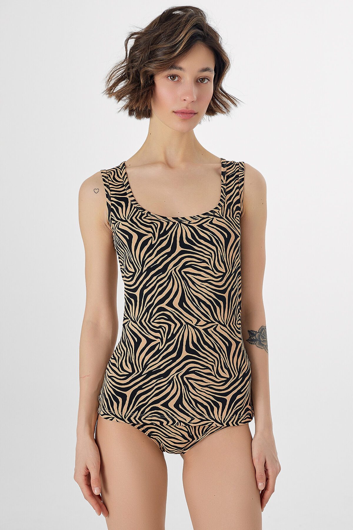 Топ женский MARK FORMELLE, анималистичный принт на бежевом
