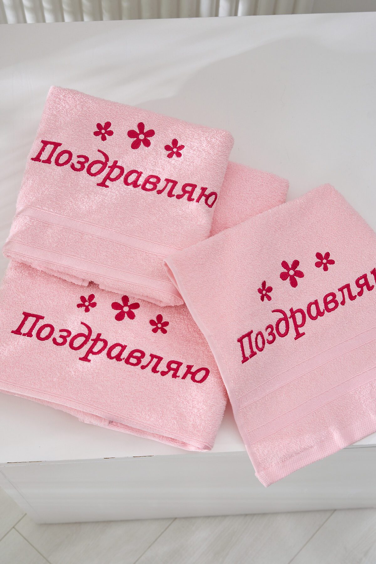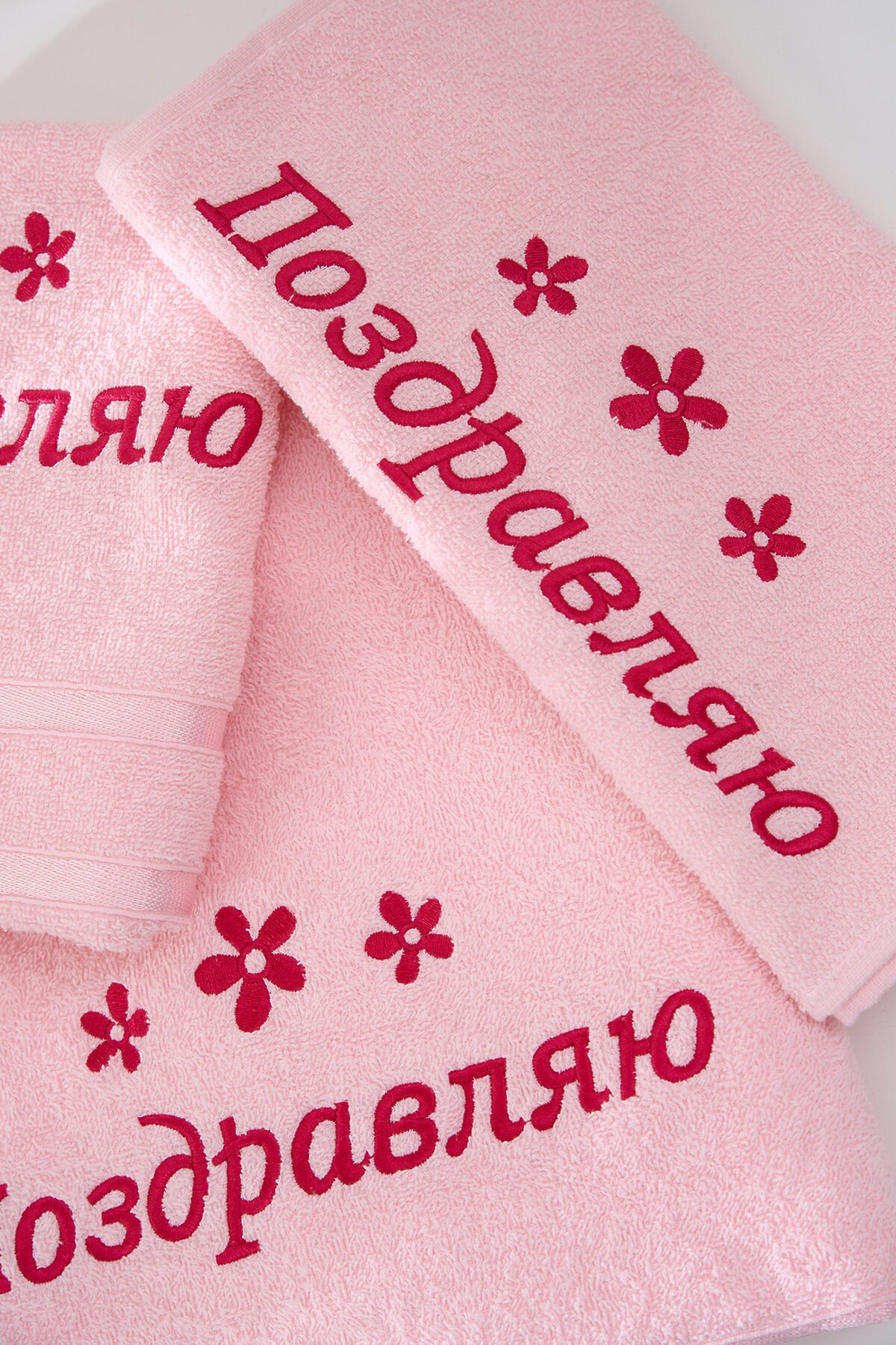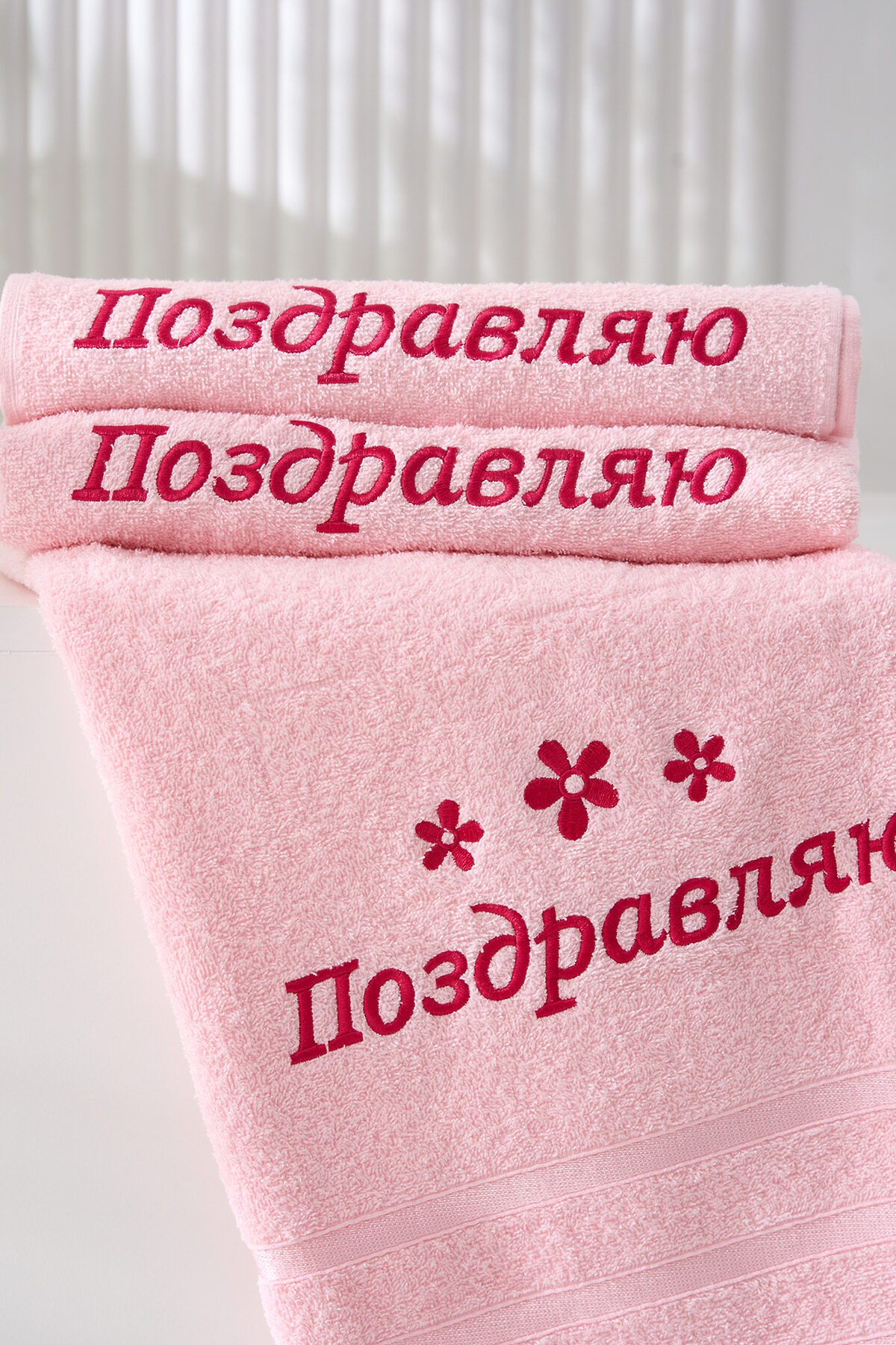Подарочное махровое полотенце Поздравляю это идеальный способ порадовать близких и выразить самые тёплые пожелания! Нежный розовый цвет, стильная вышивка цветов и яркая поздравительная надпись делают это полотенце не только практичным, но и оригинальным подарком для любого праздника. Мягкая хлопковая ткань отлично впитывает влагу, дарит комфорт и уют после водных процедур. Прекрасно подойдёт для подарка на день рождения, 8 Марта или любой другой приятный повод!