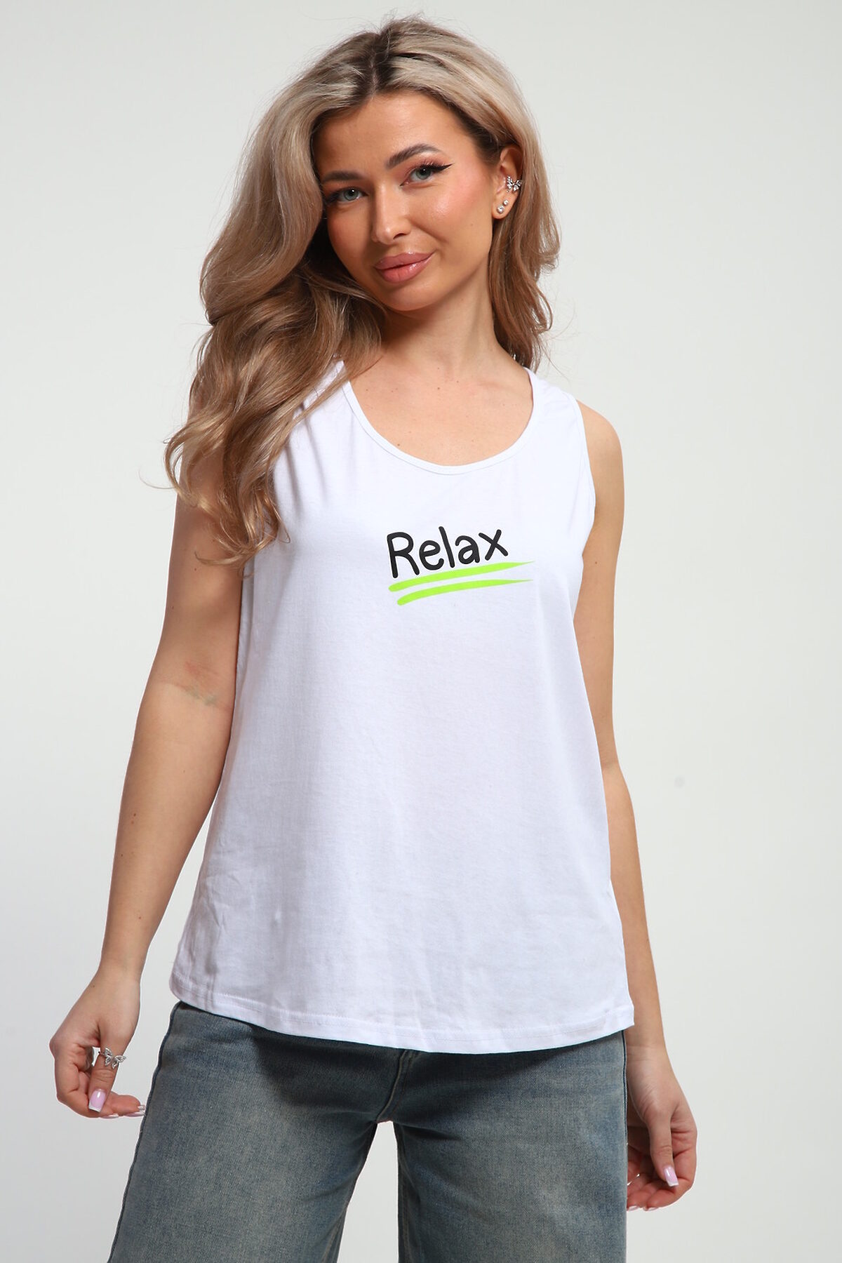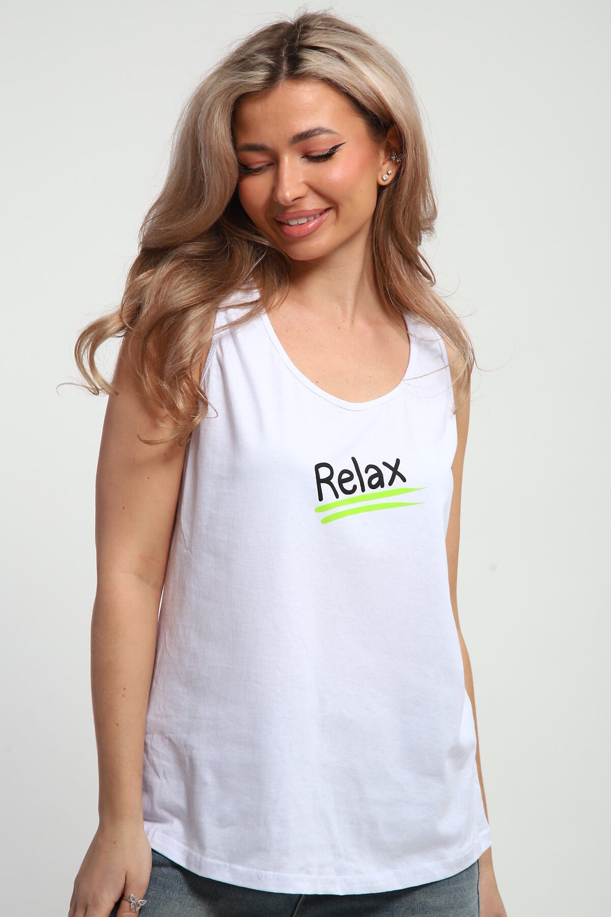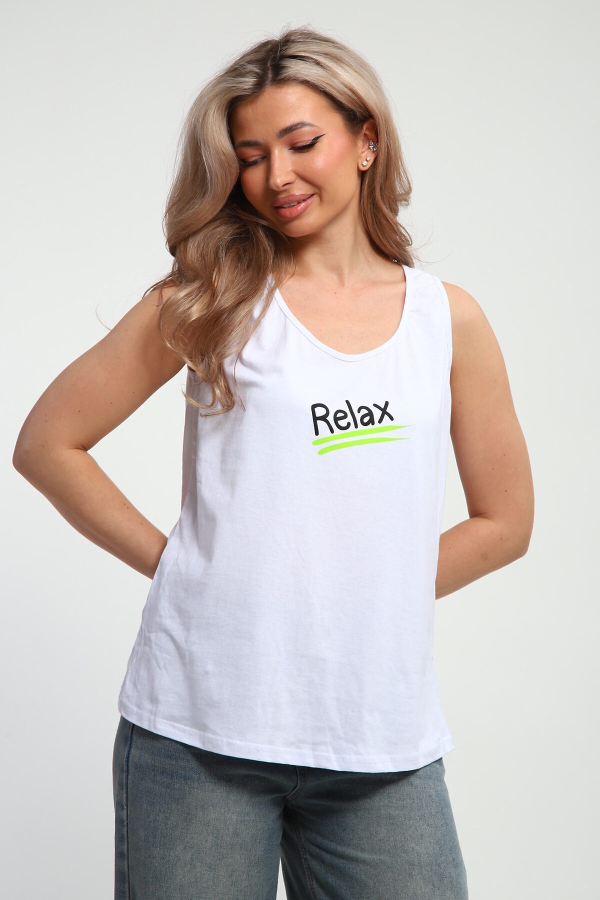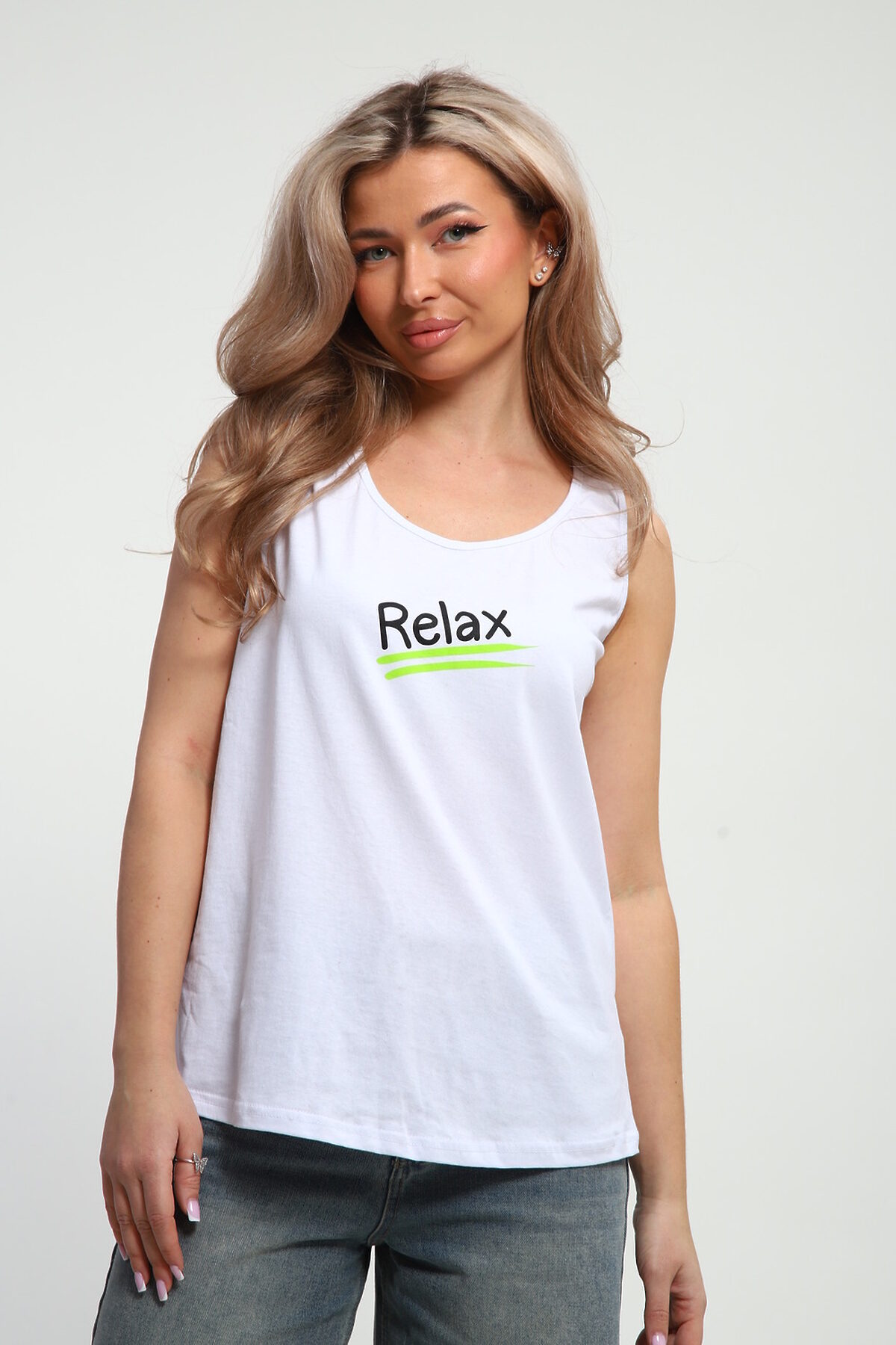 Майка женская с принтом. Данная модель выполнена из трикотажного полотна кулирка.