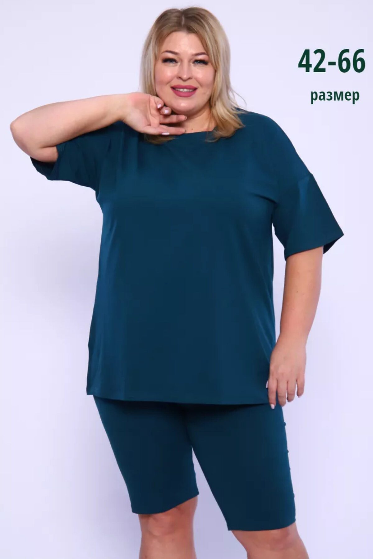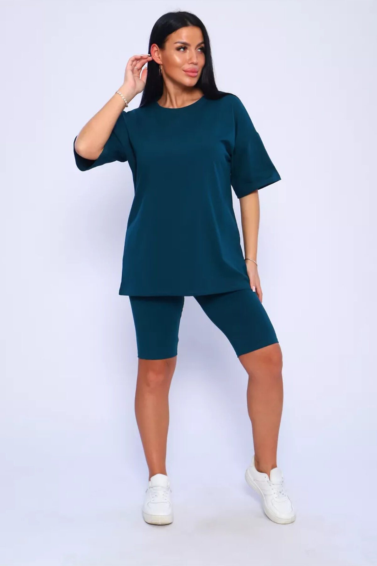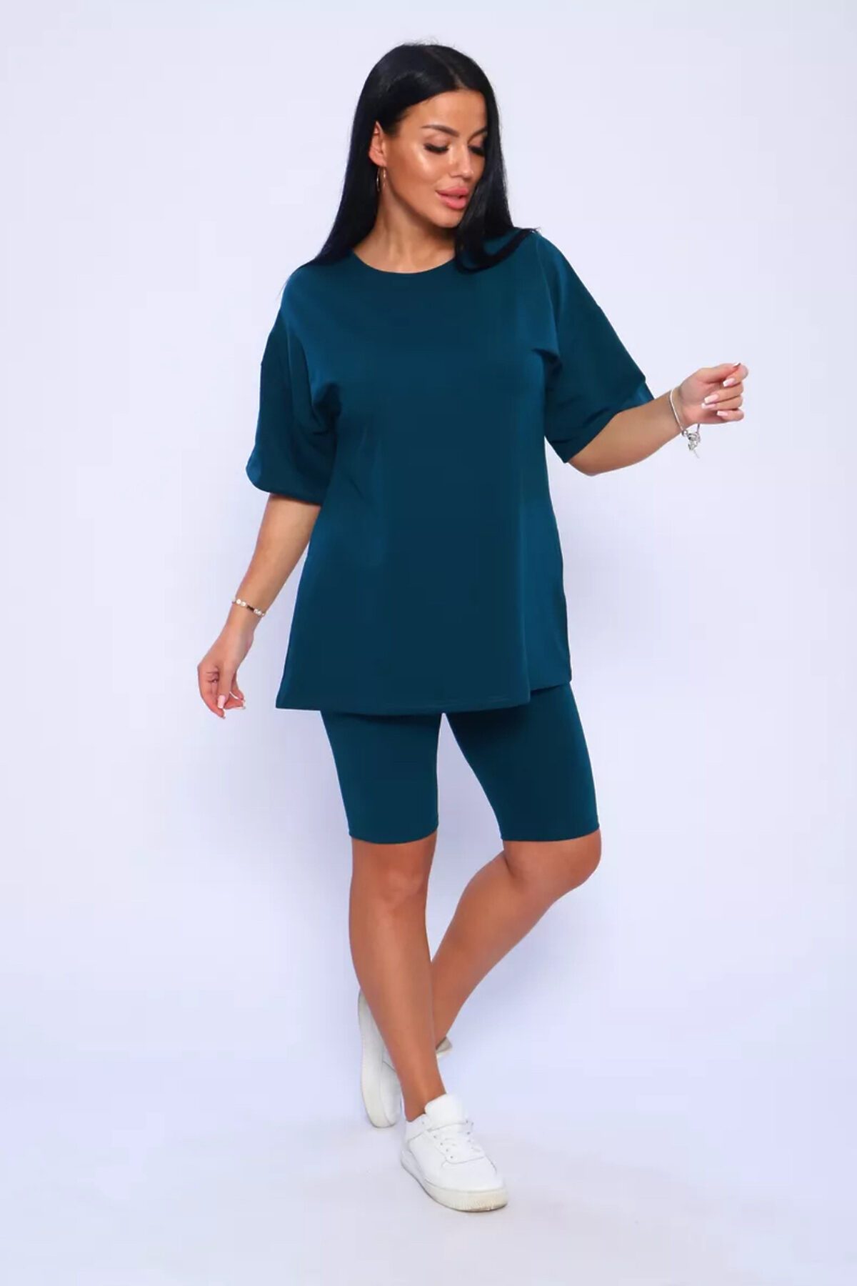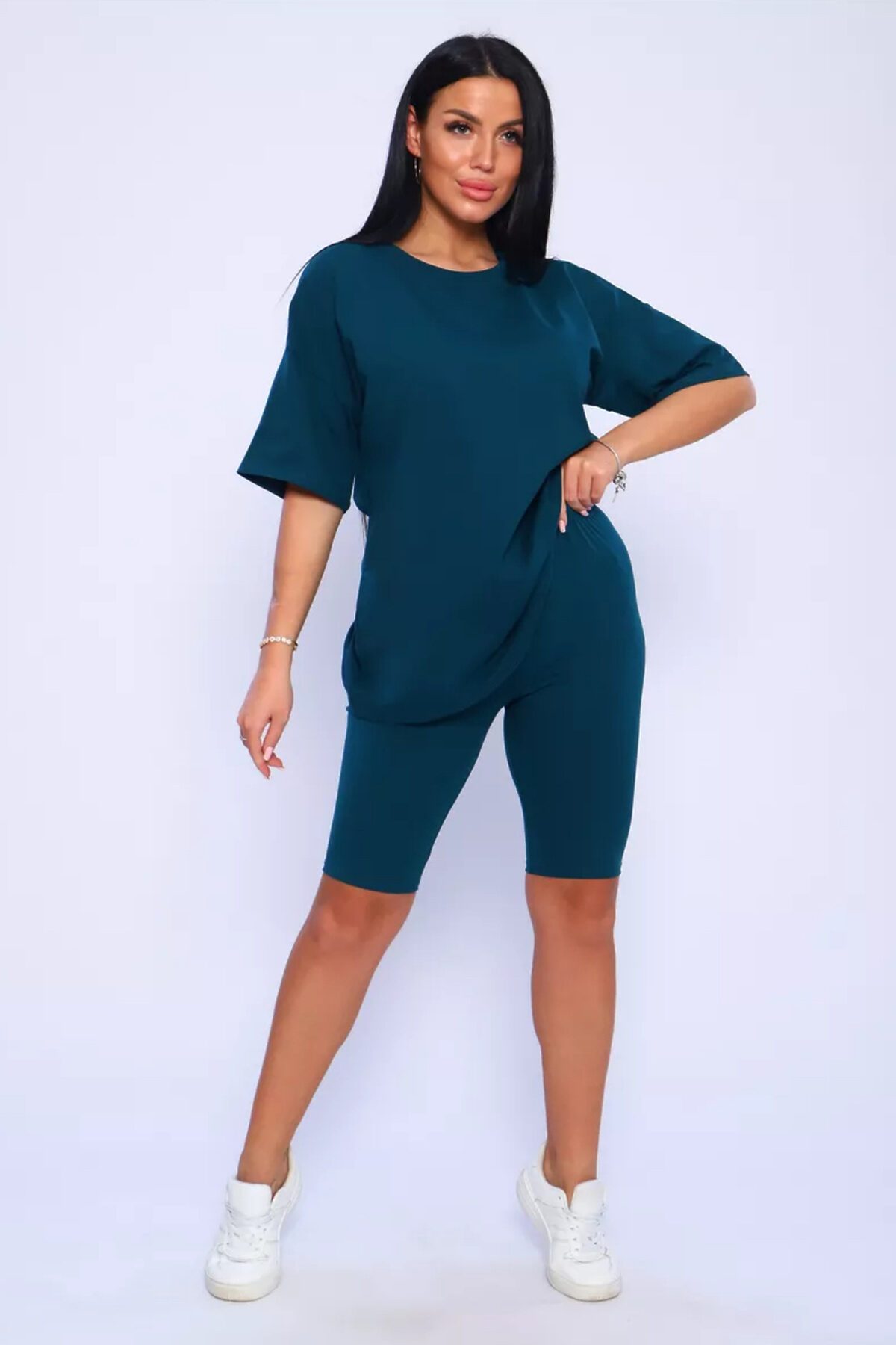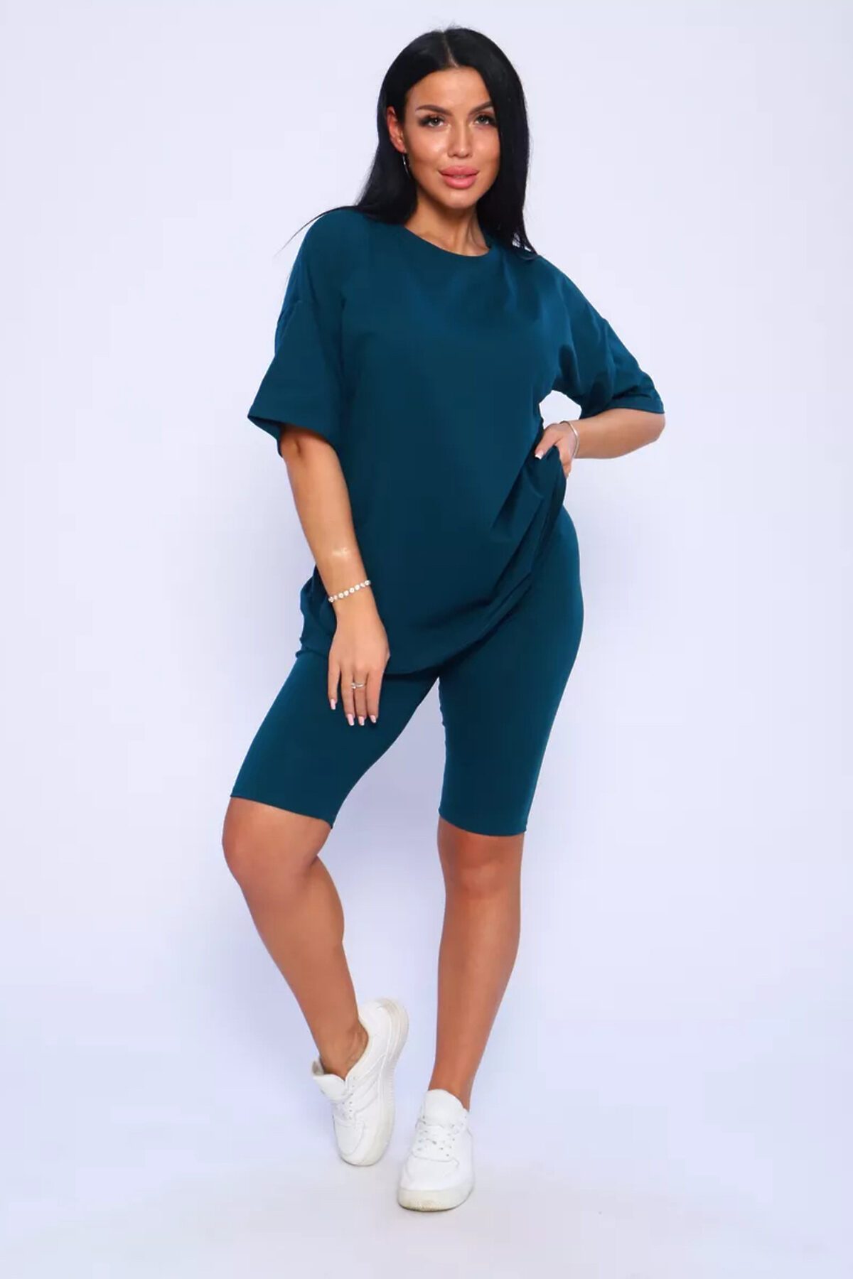 Представляем вам нашу эксклюзивную новинку - потрясающий женский костюм, идеальный для любых теплых дней! Этот великолепный комплект из двух предметов сочетает в себе современный дизайн и исключительный комфорт. Свободная футболка оверсайз с коротким рукавом создает непринужденный силуэт, позволяя вам двигаться легко и непринужденно. Сочетающиеся с ней велосипедки с высокой талией подчеркнут ваши изящные ноги, обеспечивая максимальную свободу движений. Этот универсальный костюм с легинсами подходит для множества случаев. Отправляетесь на пробежку в парк? Спортивный стиль сделает вашу тренировку комфортной. Собираетесь на дачу? Легкая и дышащая ткань обеспечит прохладу и удобство. Ищете стильный наряд для прогулки по городу или отдыха на море? Яркие цвета и модный дизайн сделают вас центром внимания. Мы верим, что стиль должен быть доступен для всех женщин. Этот костюм представлен в широком диапазоне размеров, от самых маленьких до больших, включая размеры для беременных. Независимо от вашей фигуры, вы найдете идеальную посадку, которая подчеркнет ваши лучшие стороны. Мы знаем, что комфорт - это ключ. Вот почему наш костюм изготовлен из высококачественного трикотажа на основе хлопка. Этот мягкий и приятный для кожи материал обеспечит вам прохладу и сухость в течение всего дня. Гипоаллергенные свойства хлопка делают его идеальным даже для самой чувствительной кожи. Удлиненный крой футболки и облегающий силуэт бридж создают стильный и современный образ. Яркие и модные цвета сделают вас заметной в любой толпе. Дополните образ модными аксессуарами, чтобы создать неповторимый стиль. Этот универсальный костюм подходит не только для занятий фитнесом. Он станет отличным выбором для повседневной носки, отдыха дома или неспешных прогулок с друзьями. Мягкий и дышащий материал обеспечит вам максимальный комфорт в любой ситуации. Наш женский спортивный костюм с футболкой и велосипедками - это идеальный способ добавить стиль и комфорт в свой гардероб.