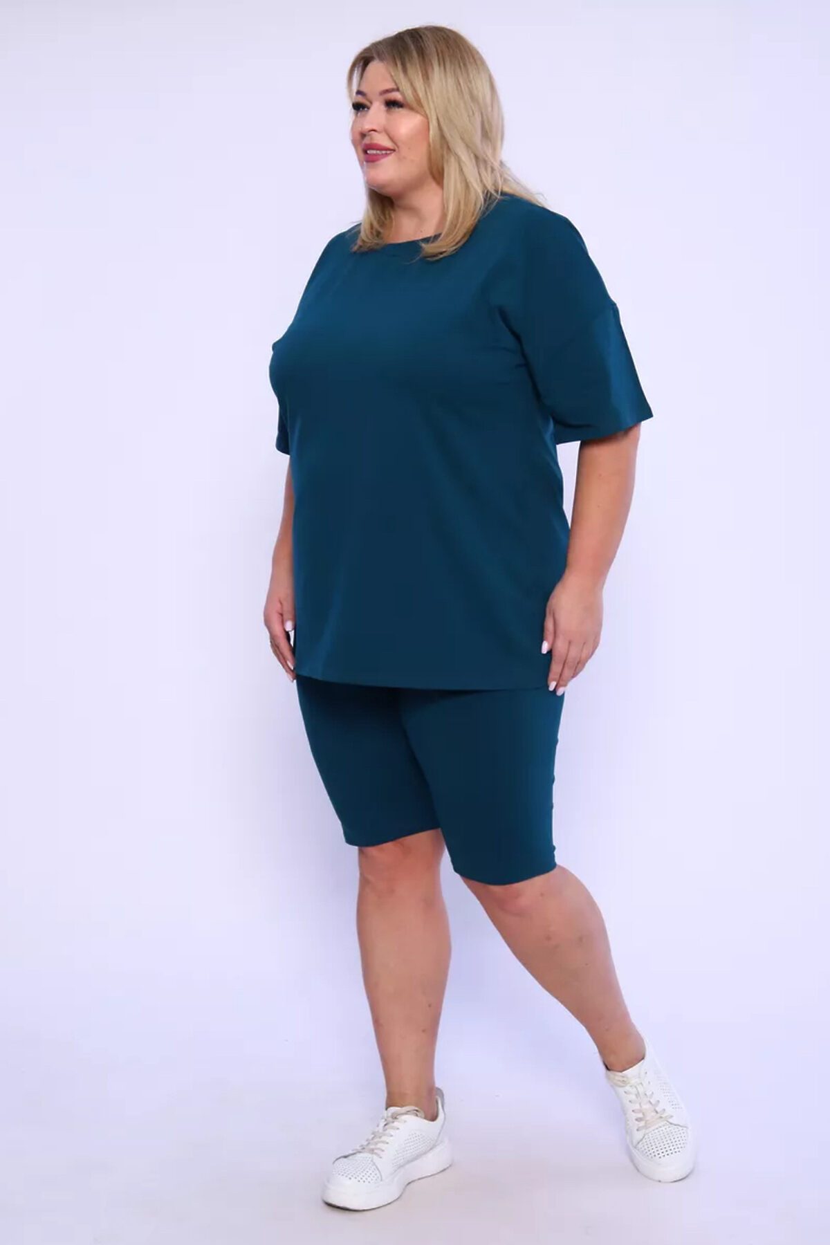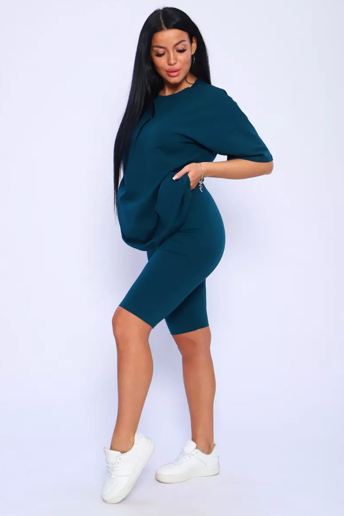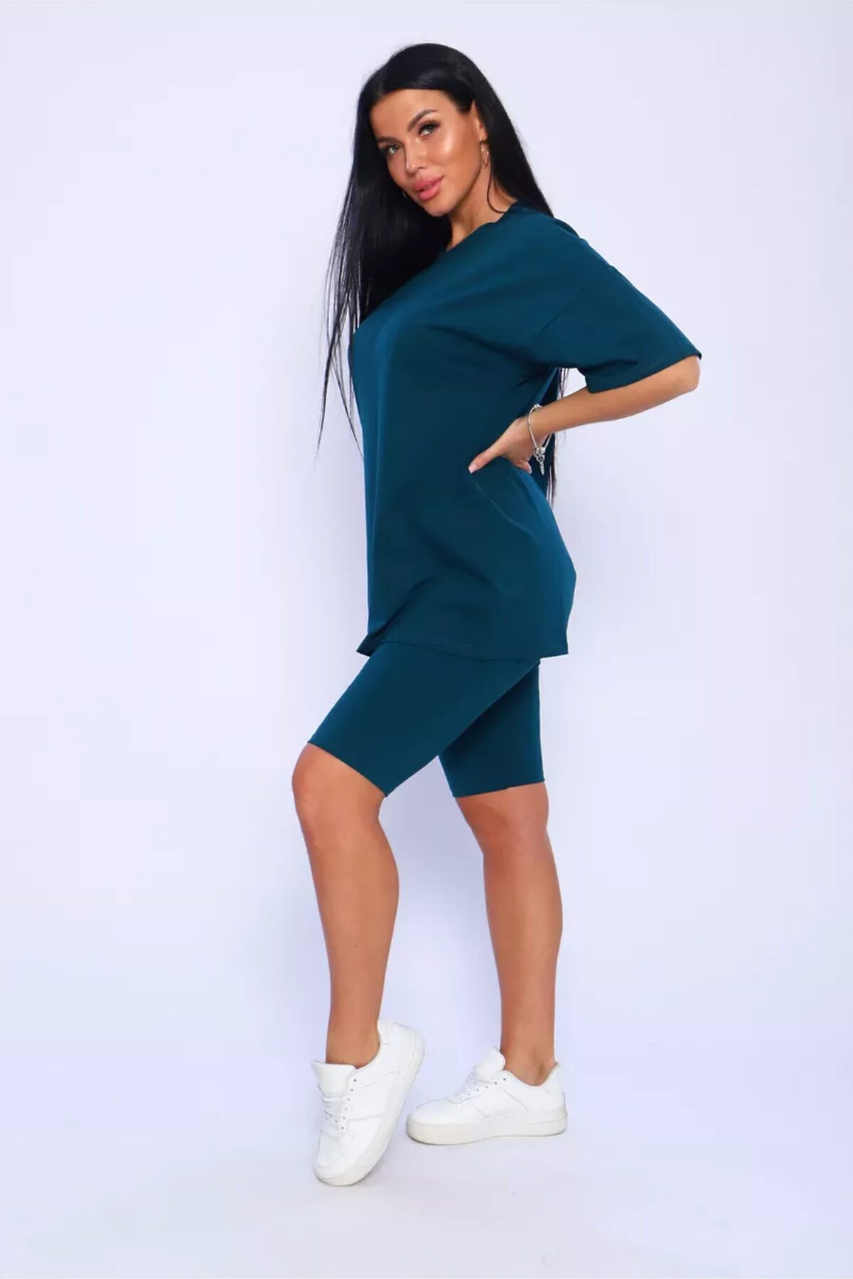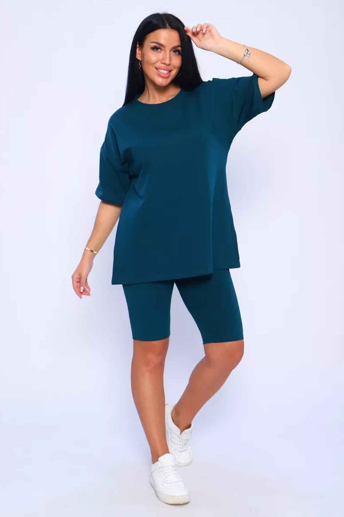 Представляем вам нашу эксклюзивную новинку - потрясающий женский костюм, идеальный для любых теплых дней! Этот великолепный комплект из двух предметов сочетает в себе современный дизайн и исключительный комфорт. Свободная футболка оверсайз с коротким рукавом создает непринужденный силуэт, позволяя вам двигаться легко и непринужденно. Сочетающиеся с ней велосипедки с высокой талией подчеркнут ваши изящные ноги, обеспечивая максимальную свободу движений. Этот универсальный костюм с легинсами подходит для множества случаев. Отправляетесь на пробежку в парк? Спортивный стиль сделает вашу тренировку комфортной. Собираетесь на дачу? Легкая и дышащая ткань обеспечит прохладу и удобство. Ищете стильный наряд для прогулки по городу или отдыха на море? Яркие цвета и модный дизайн сделают вас центром внимания. Мы верим, что стиль должен быть доступен для всех женщин. Этот костюм представлен в широком диапазоне размеров, от самых маленьких до больших, включая размеры для беременных. Независимо от вашей фигуры, вы найдете идеальную посадку, которая подчеркнет ваши лучшие стороны. Мы знаем, что комфорт - это ключ. Вот почему наш костюм изготовлен из высококачественного трикотажа на основе хлопка. Этот мягкий и приятный для кожи материал обеспечит вам прохладу и сухость в течение всего дня. Гипоаллергенные свойства хлопка делают его идеальным даже для самой чувствительной кожи. Удлиненный крой футболки и облегающий силуэт бридж создают стильный и современный образ. Яркие и модные цвета сделают вас заметной в любой толпе. Дополните образ модными аксессуарами, чтобы создать неповторимый стиль. Этот универсальный костюм подходит не только для занятий фитнесом. Он станет отличным выбором для повседневной носки, отдыха дома или неспешных прогулок с друзьями. Мягкий и дышащий материал обеспечит вам максимальный комфорт в любой ситуации. Наш женский спортивный костюм с футболкой и велосипедками - это идеальный способ добавить стиль и комфорт в свой гардероб.