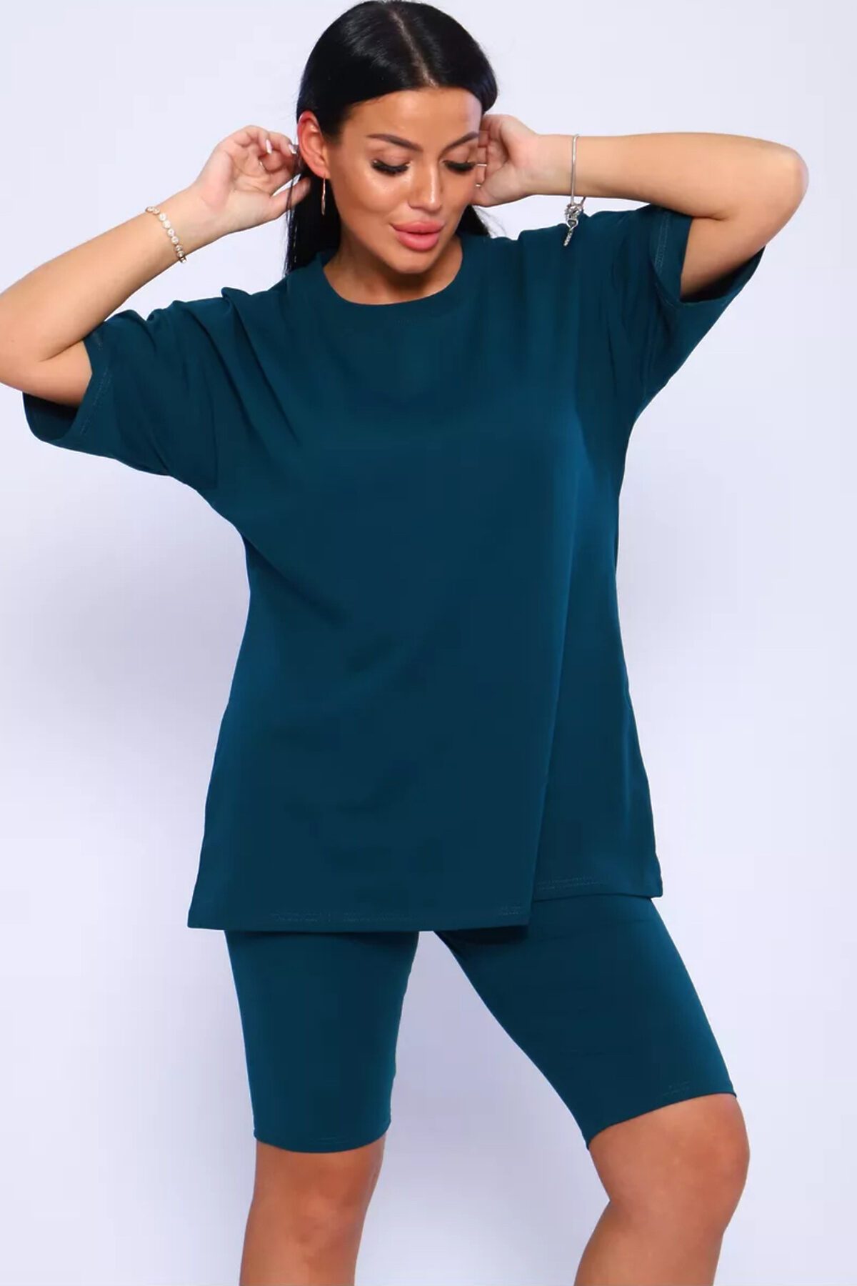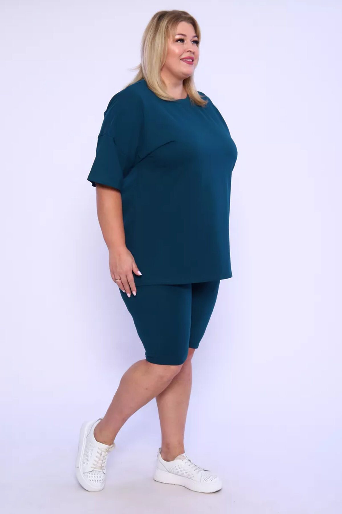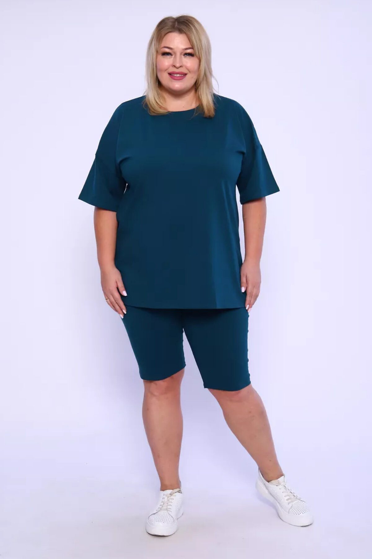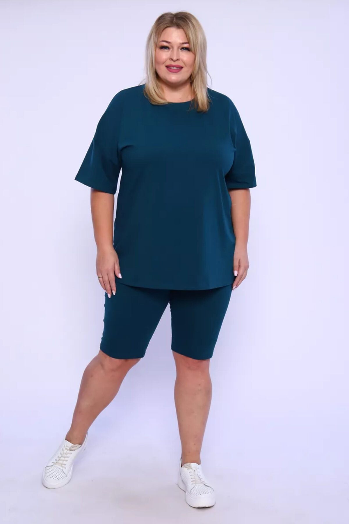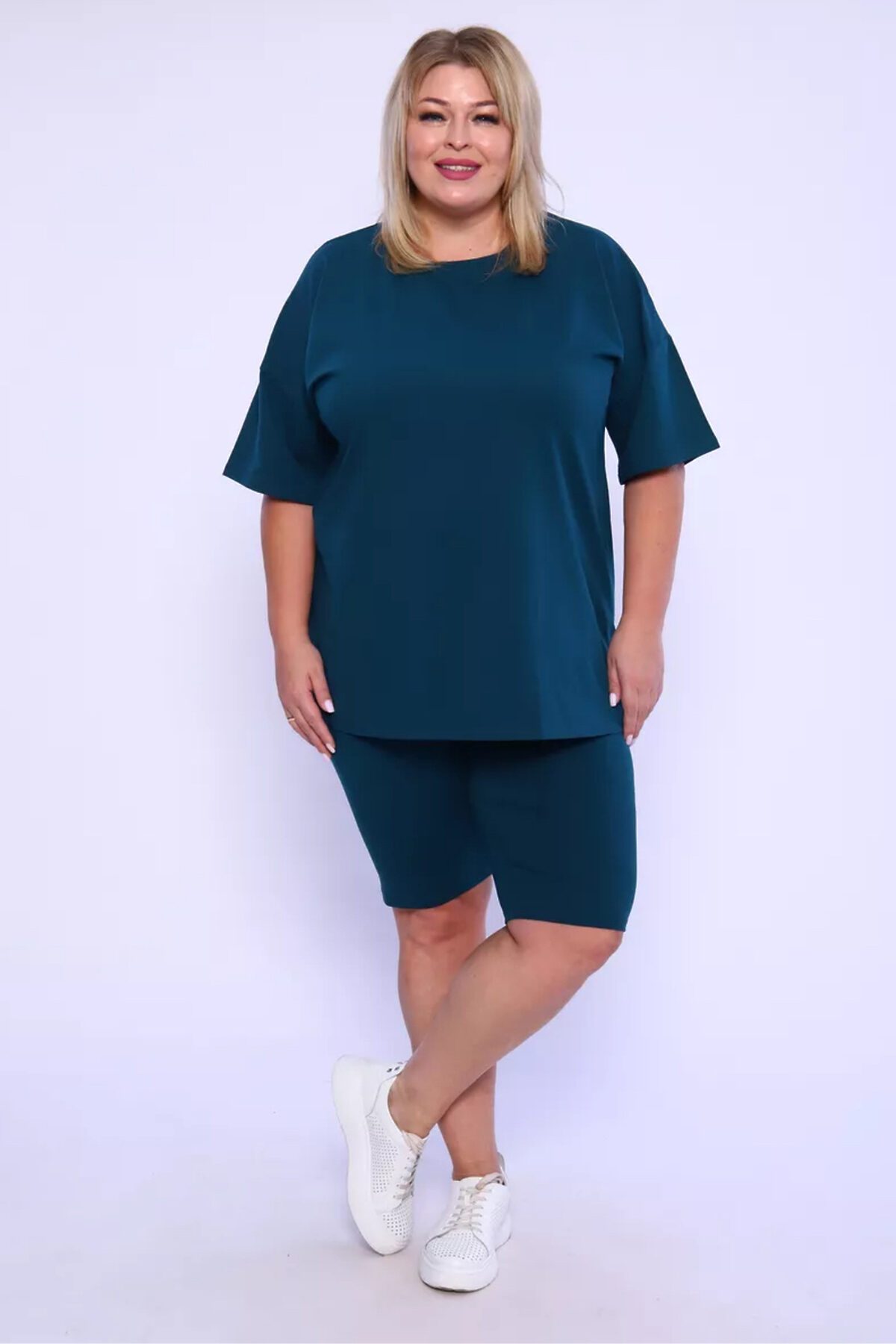 Представляем вам нашу эксклюзивную новинку - потрясающий женский костюм, идеальный для любых теплых дней! Этот великолепный комплект из двух предметов сочетает в себе современный дизайн и исключительный комфорт. Свободная футболка оверсайз с коротким рукавом создает непринужденный силуэт, позволяя вам двигаться легко и непринужденно. Сочетающиеся с ней велосипедки с высокой талией подчеркнут ваши изящные ноги, обеспечивая максимальную свободу движений. Этот универсальный костюм с легинсами подходит для множества случаев. Отправляетесь на пробежку в парк? Спортивный стиль сделает вашу тренировку комфортной. Собираетесь на дачу? Легкая и дышащая ткань обеспечит прохладу и удобство. Ищете стильный наряд для прогулки по городу или отдыха на море? Яркие цвета и модный дизайн сделают вас центром внимания. Мы верим, что стиль должен быть доступен для всех женщин. Этот костюм представлен в широком диапазоне размеров, от самых маленьких до больших, включая размеры для беременных. Независимо от вашей фигуры, вы найдете идеальную посадку, которая подчеркнет ваши лучшие стороны. Мы знаем, что комфорт - это ключ. Вот почему наш костюм изготовлен из высококачественного трикотажа на основе хлопка. Этот мягкий и приятный для кожи материал обеспечит вам прохладу и сухость в течение всего дня. Гипоаллергенные свойства хлопка делают его идеальным даже для самой чувствительной кожи. Удлиненный крой футболки и облегающий силуэт бридж создают стильный и современный образ. Яркие и модные цвета сделают вас заметной в любой толпе. Дополните образ модными аксессуарами, чтобы создать неповторимый стиль. Этот универсальный костюм подходит не только для занятий фитнесом. Он станет отличным выбором для повседневной носки, отдыха дома или неспешных прогулок с друзьями. Мягкий и дышащий материал обеспечит вам максимальный комфорт в любой ситуации. Наш женский спортивный костюм с футболкой и велосипедками - это идеальный способ добавить стиль и комфорт в свой гардероб.