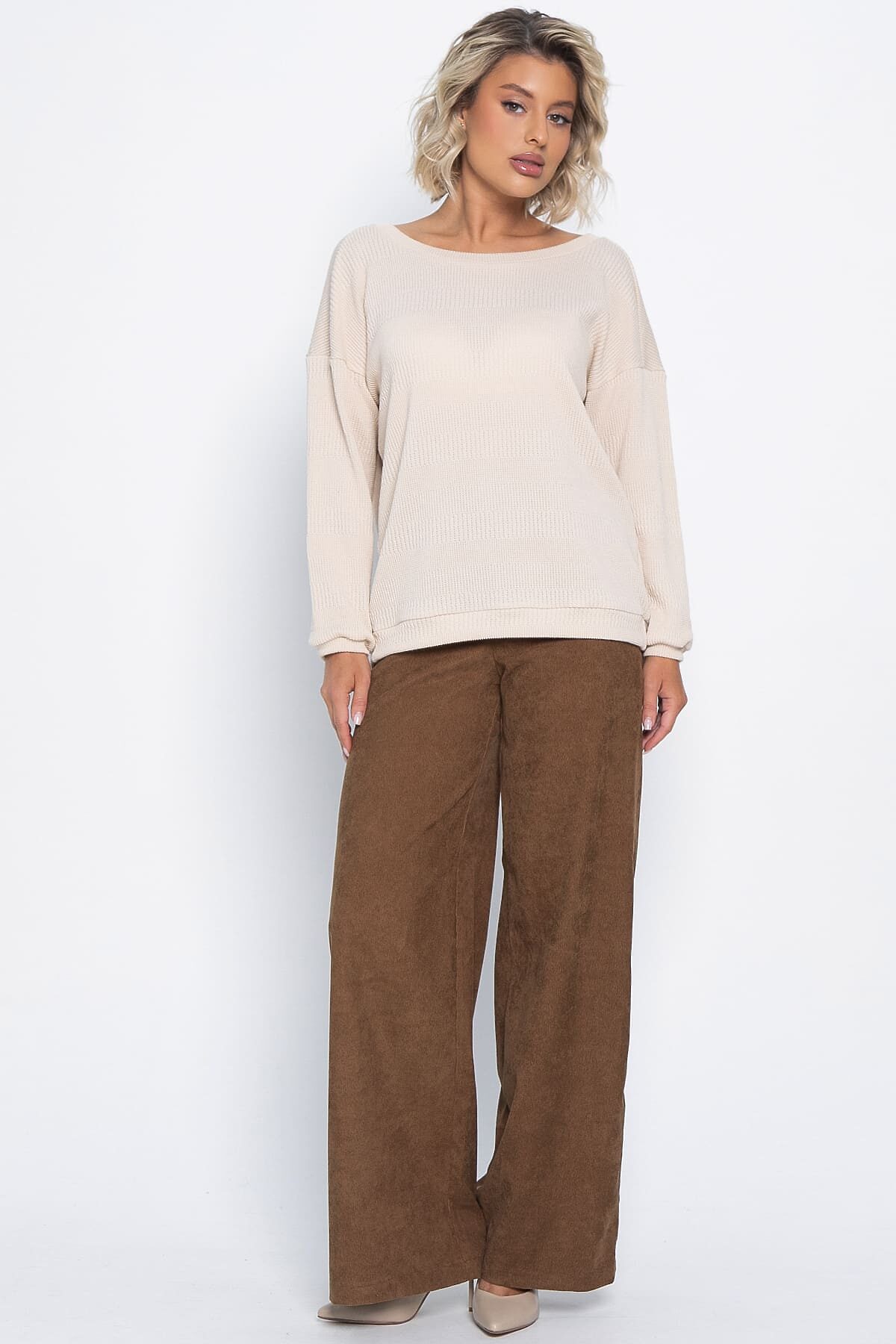 Этот женский трикотажный костюм свободного кроя — идеальный выбор для повседневного ношения! Он сочетает комфорт и стиль, подходя для любых ситуаций. Верхняя часть выполнена в нежном бежевом цвете, который добавляет свежести и живости образу. Брюки имеют красивый коричневый цвет, придающий глубину и выразительность. Брюки оснащены удобной молнией, облегчающей ношение, а верхняя часть без застёжек делает костюм ещё более комфортным для повседневного использования.