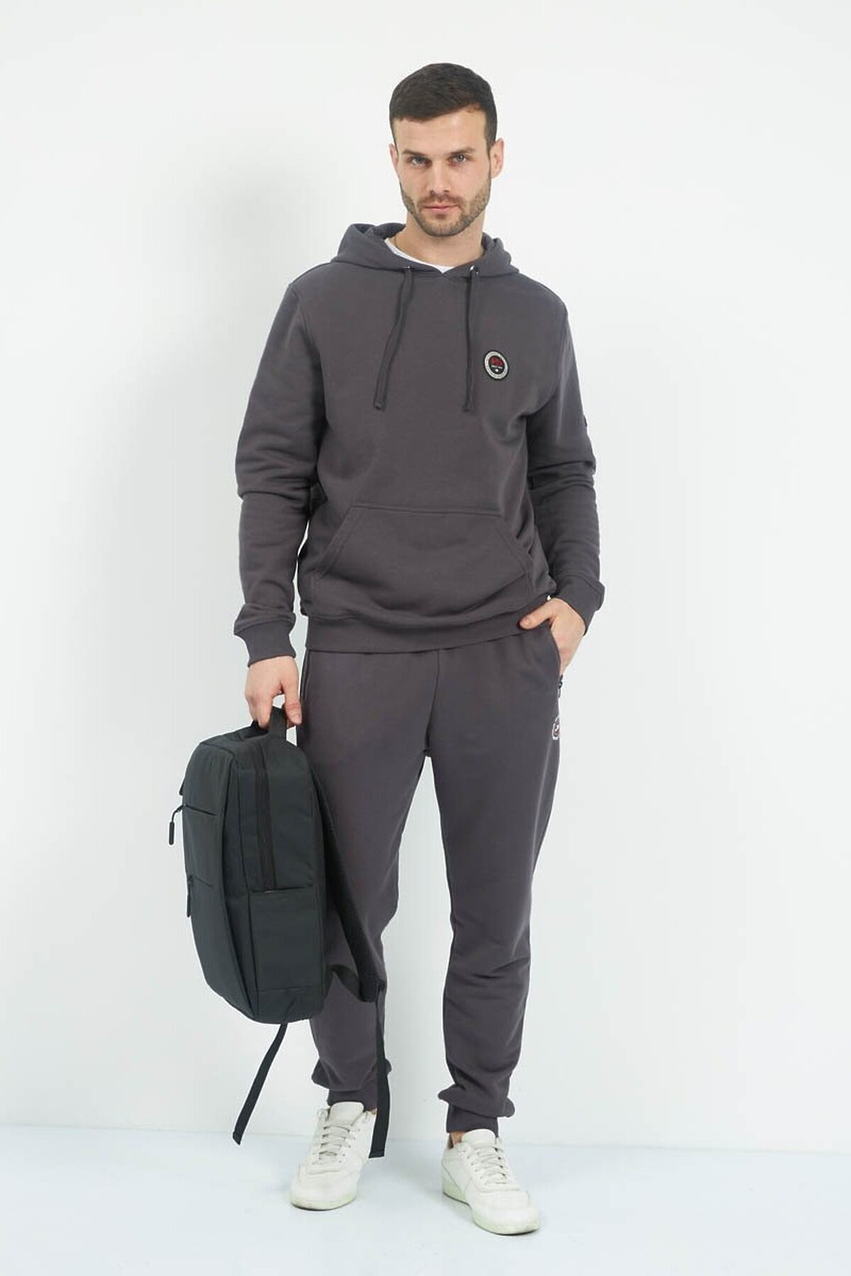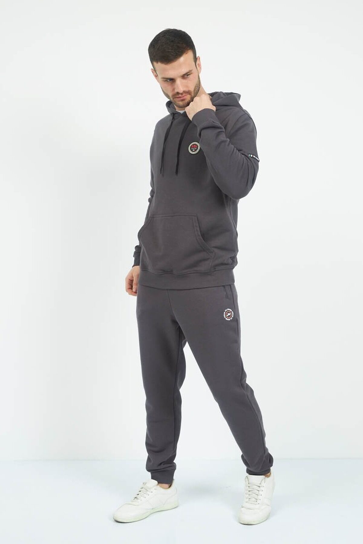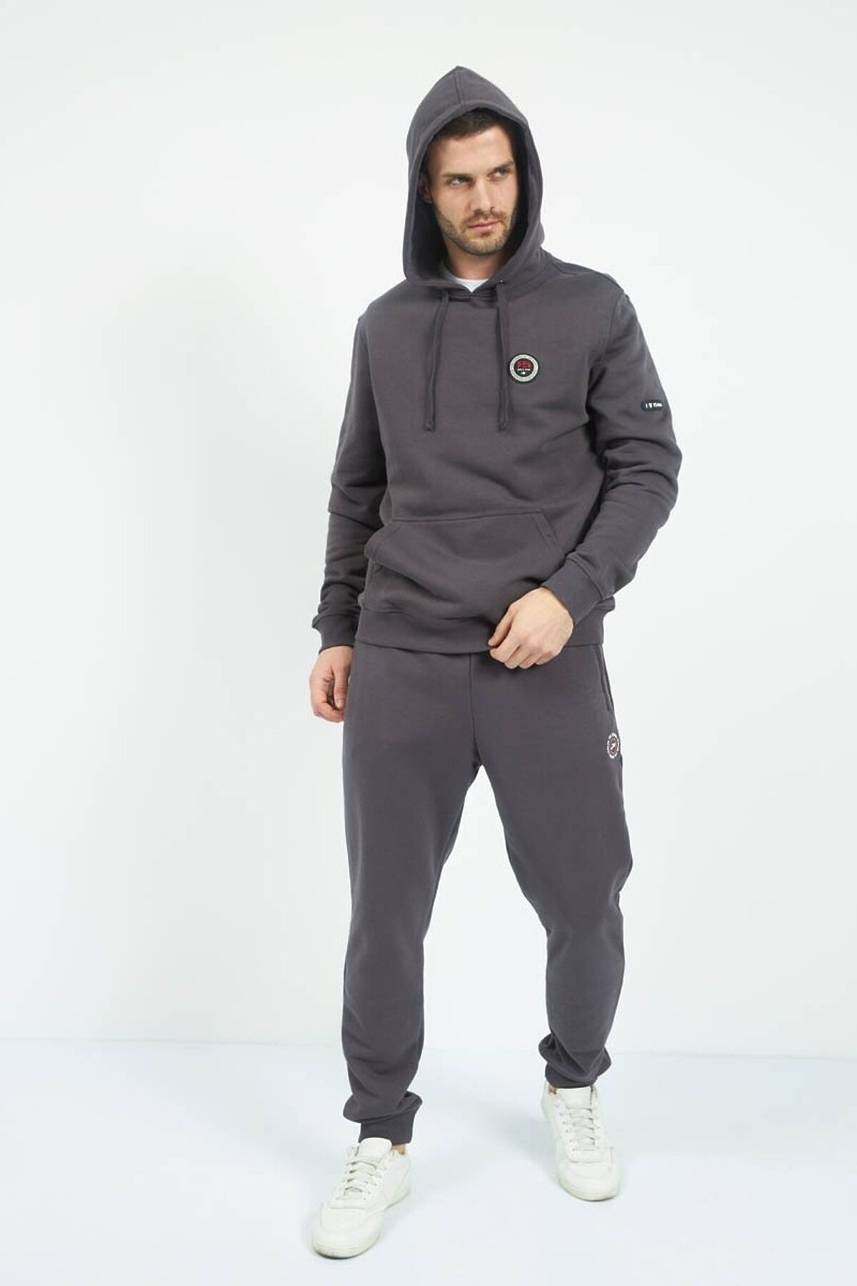 Трикотажные мужские брюки из хлопка с добавлением полиэстера, мягкие и приятные на ощупь, не сковывают движения, обеспечивая максимальный комфорт. На передних половинках вместительные карманы. По низу брюки собраны мягкой трикотажной резинкой. Пояс на резинке. Дополнительно в поясе имеется шнур.