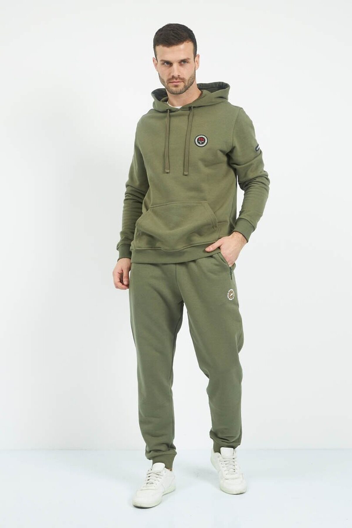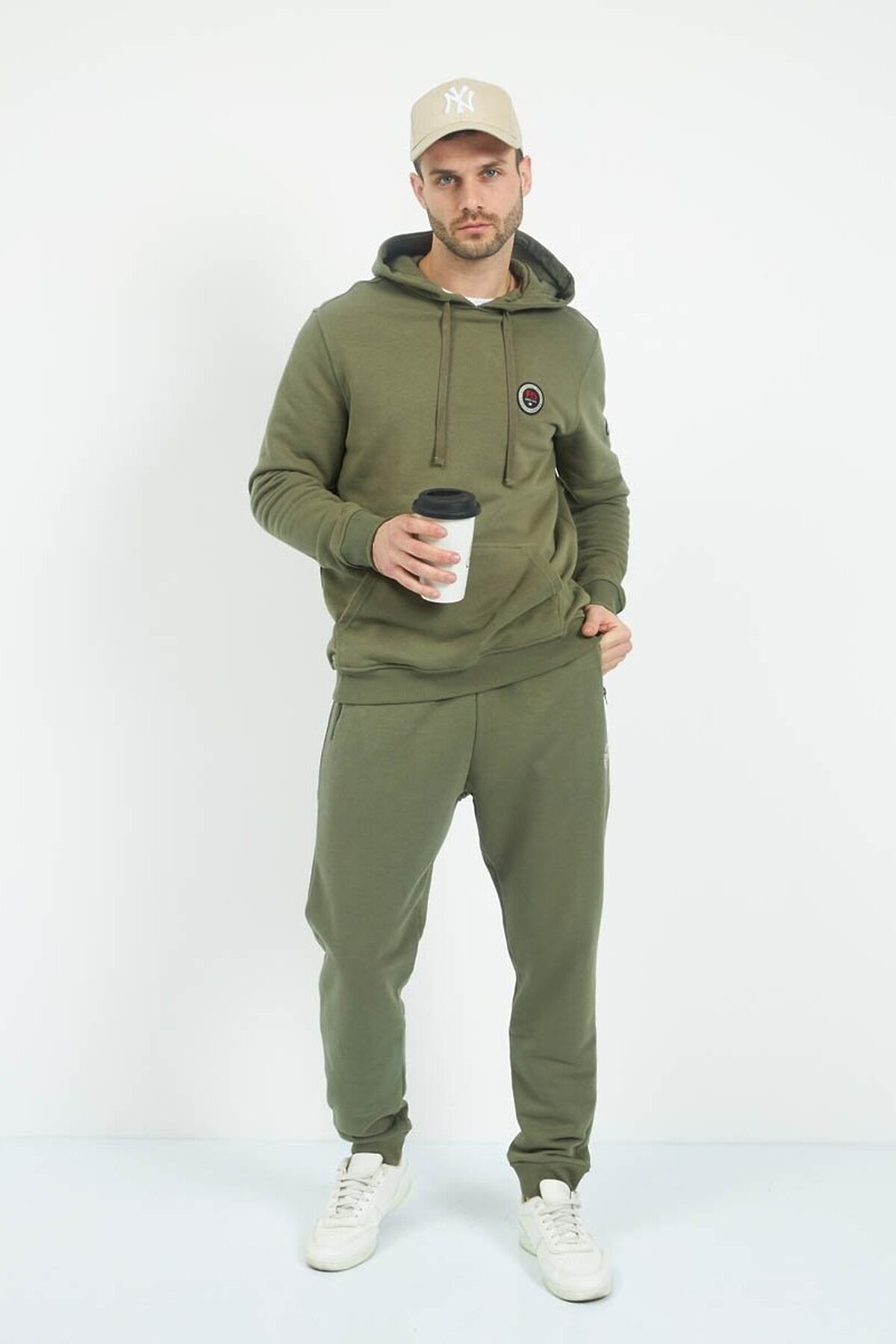 Классические трикотажные мужские брюки из хлопкового полотна с добавлением полиэстера. Спереди вместительные карманы на молнии. По низу штанин эластичные манжеты. Широкий пояс на резинке. В поясе шнур.