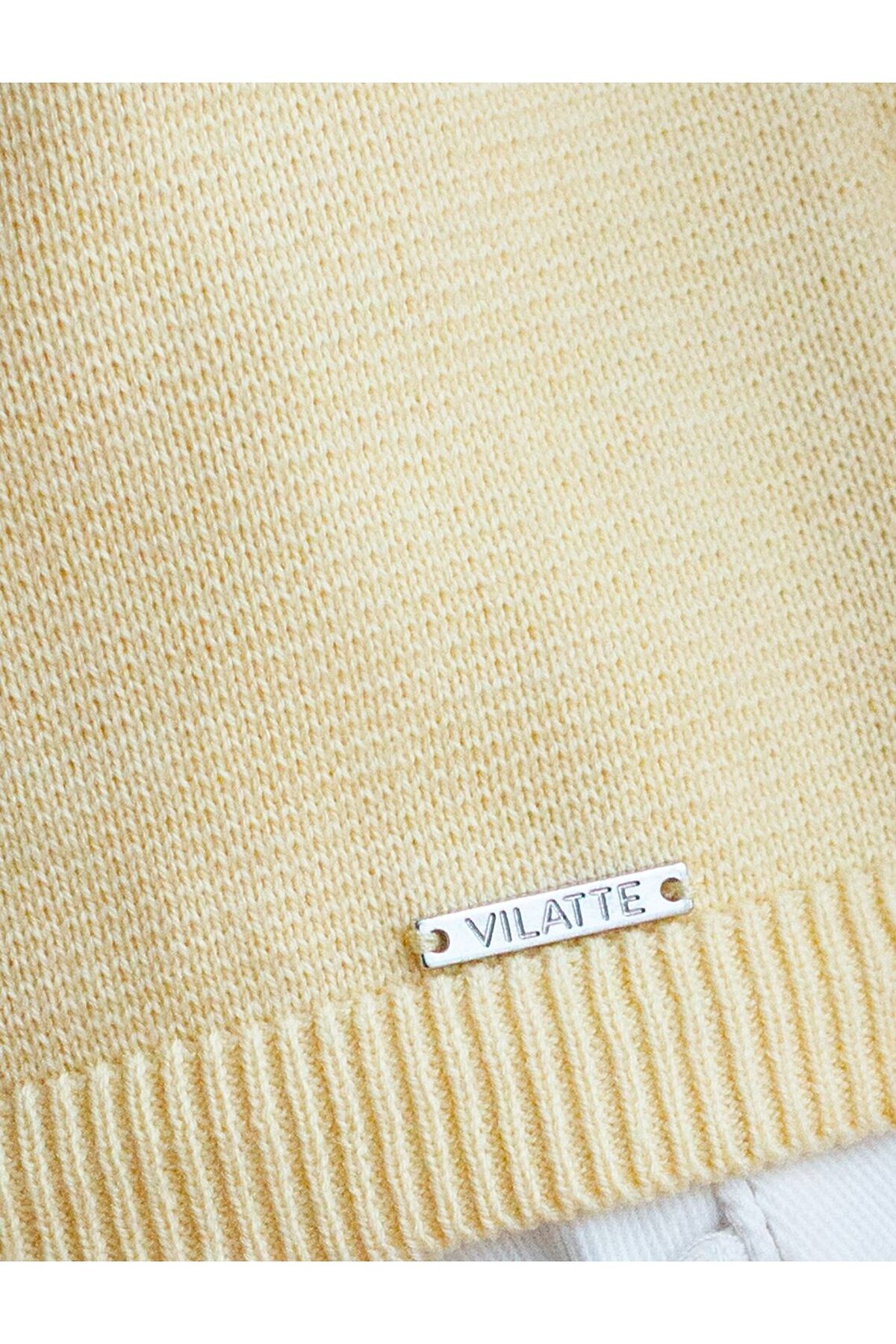 Кардиган c коротким рукавом вязаный из хлопка с акрилом VILATTE, сливочное масло