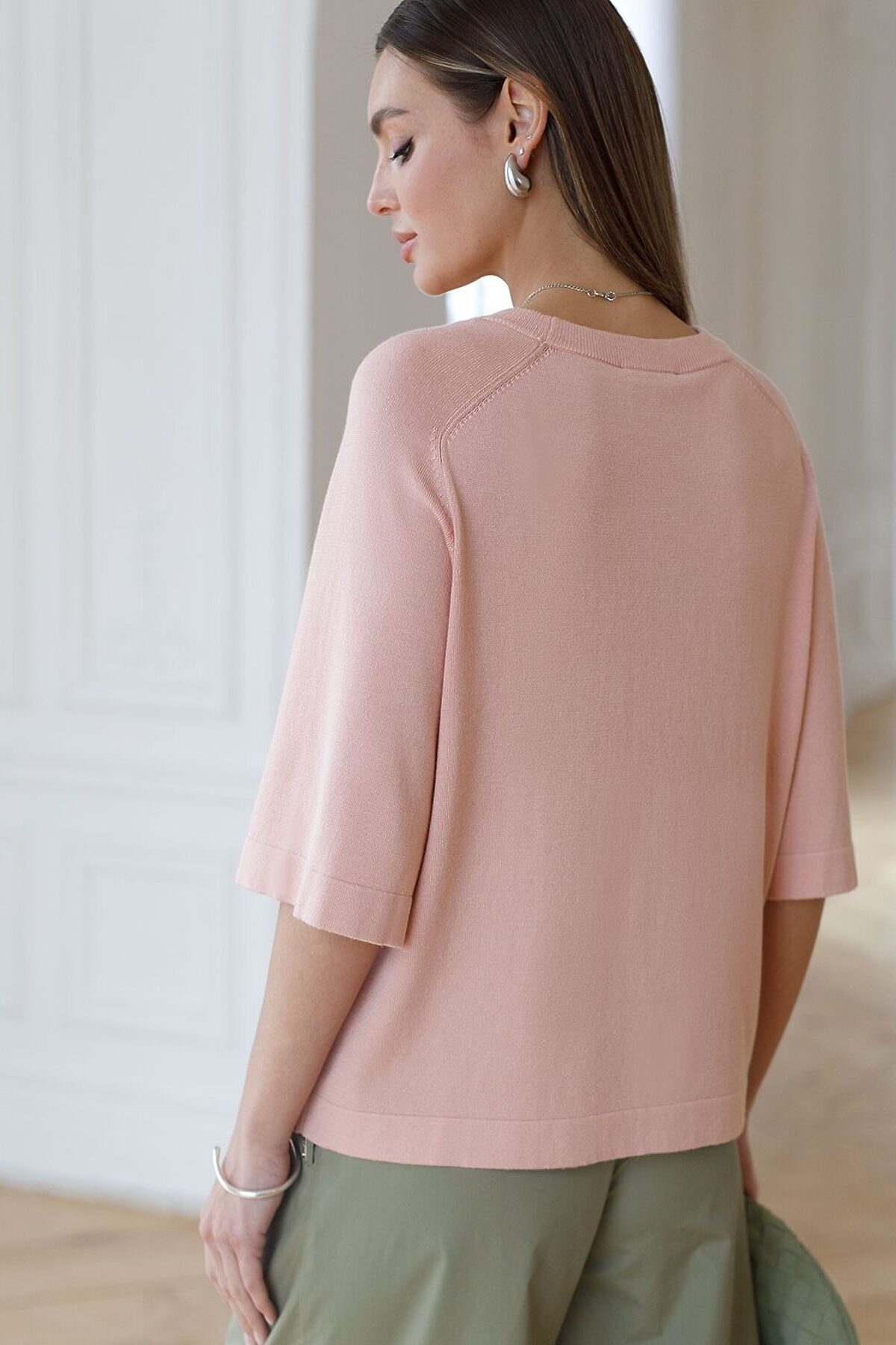 Свободный джемпер с рукавом 3/4 тонкой вязки из вискозы VILATTE, пудровый