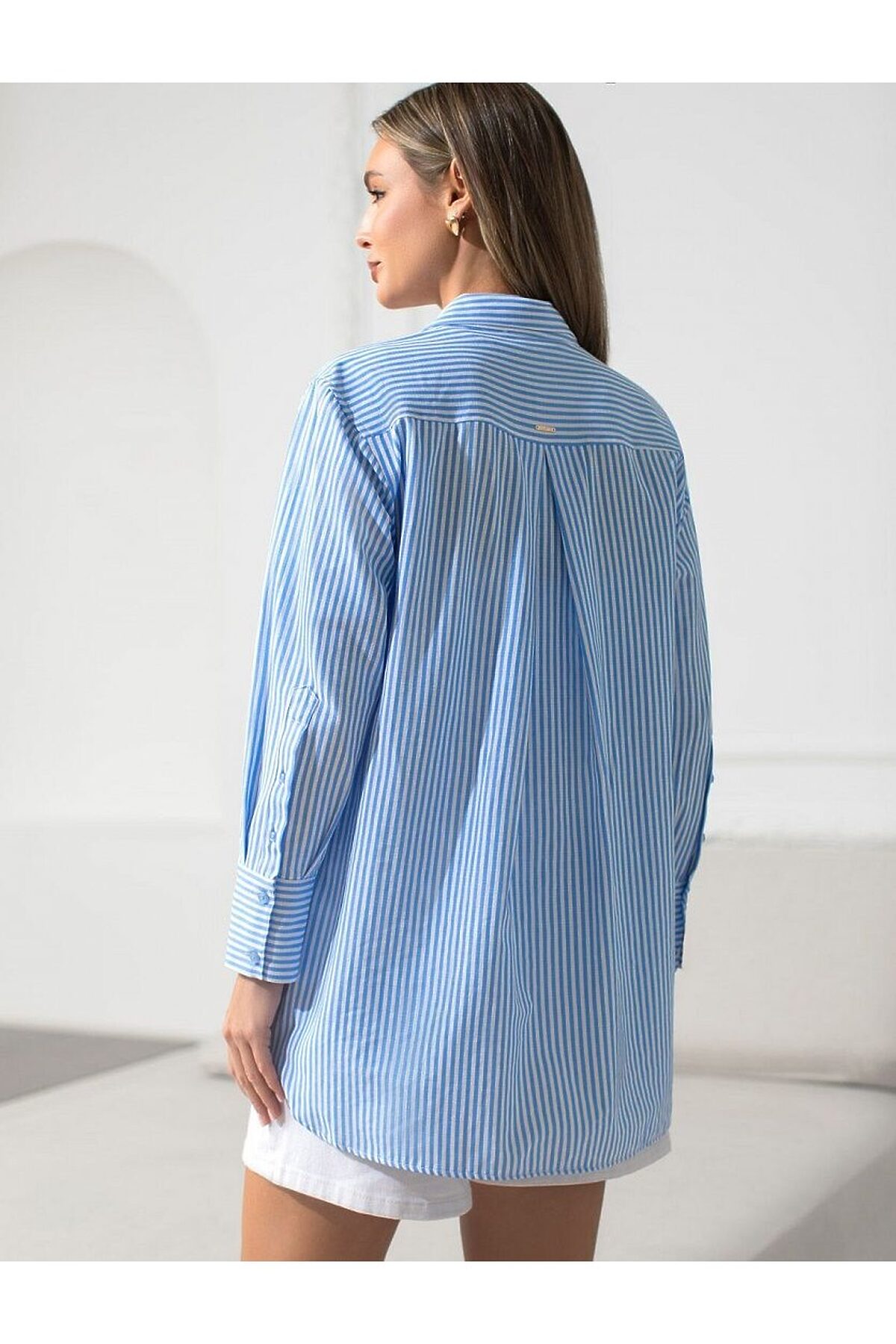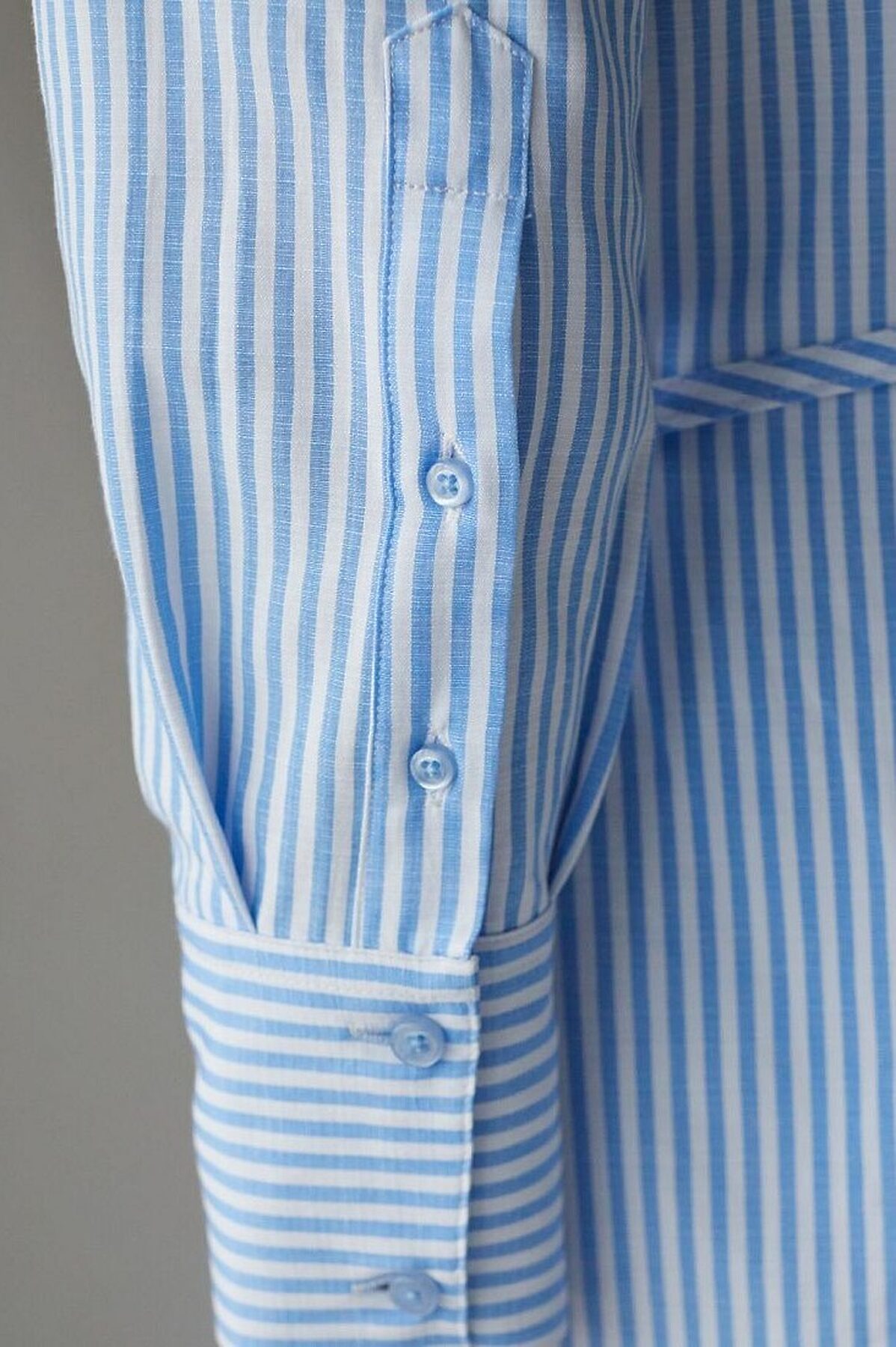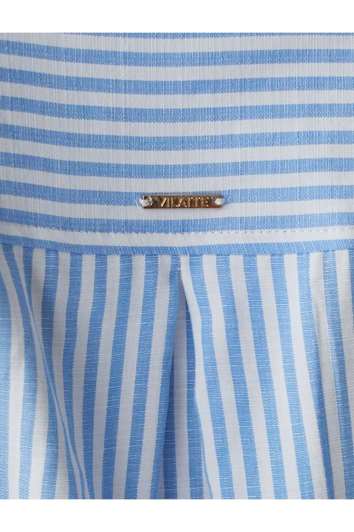 Удлиненная блузка с поясом в тонкую полоску из эластичного хлопка VILATTE, белый-голубой