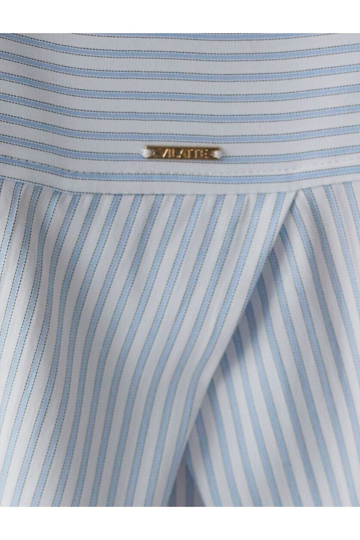 Укороченная блузка в полоску из эластичного хлопка VILATTE, белый-голубой