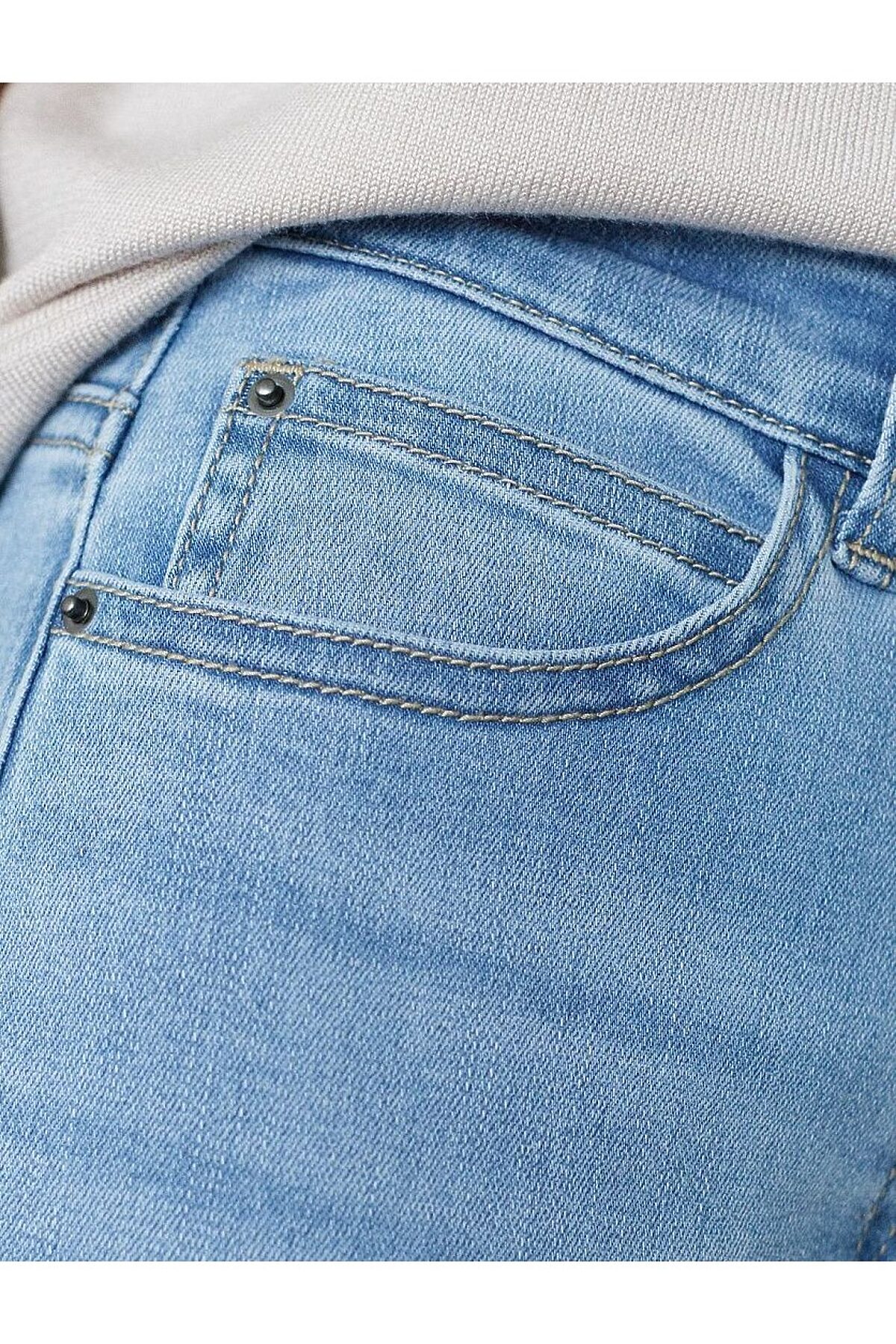 Джинсы трубы с декоративной стиркой из эластичного облегченного денима VILATTE, голубой