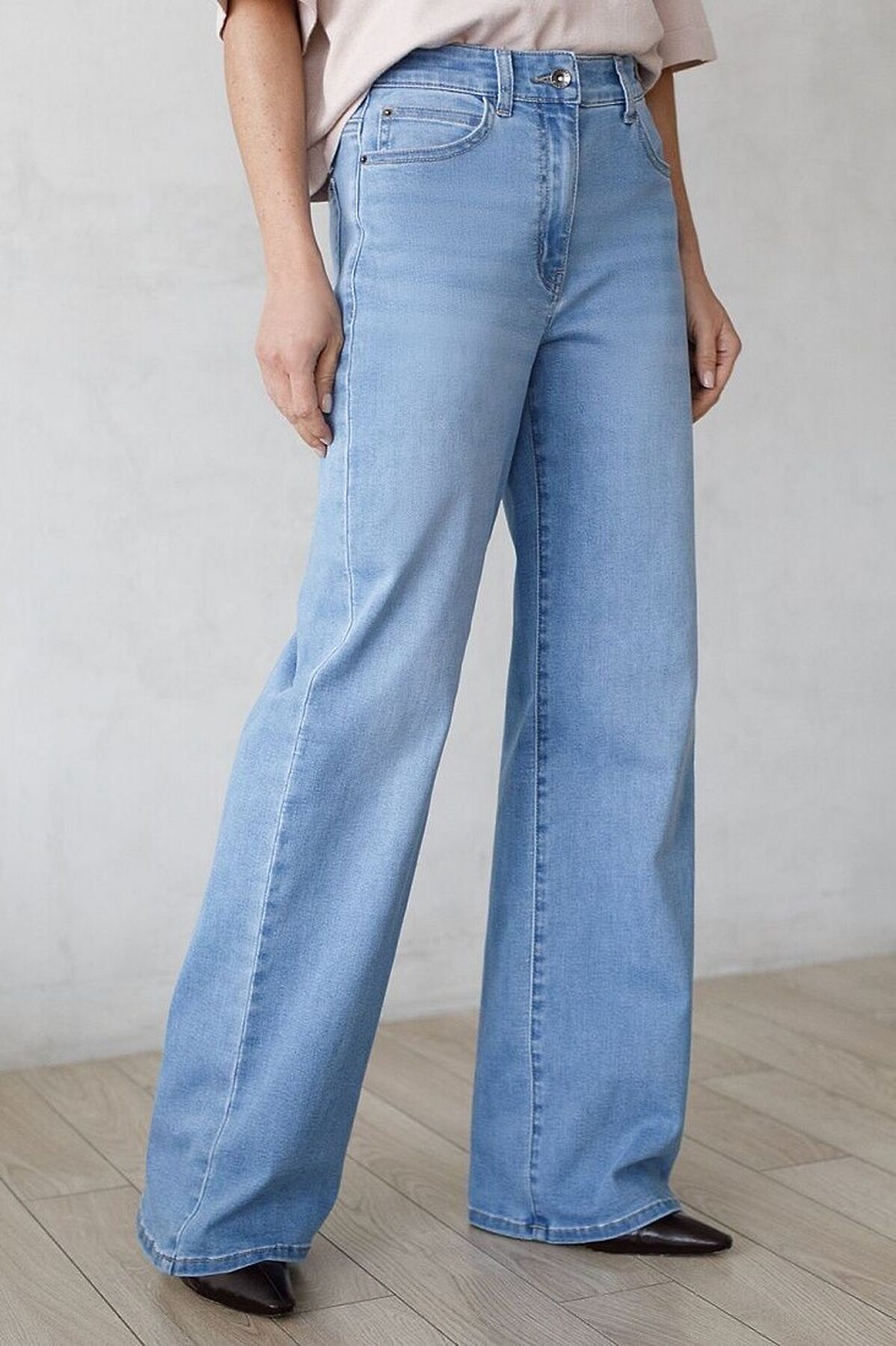 Стильные джинсы трубы голубого цвета цвета прямого кроя выполнены из эластичного облегченного денима, что делает их особенно удобными для повседневной носки. Легкая декоративная стирка добавляет интересный акцент и подчеркивает современный дизайн. Джинсы правильного кроя визуально вытягивают силуэт, благодаря эластану в составе аккуратно садятся на любую фигуру, подчеркивая достоинства и обеспечивают максимальный комфорт в течение дня, не сковывая движения. Широкая размерная линейка подходит для разных типов фигур: свободные джинсы комфортны как для обладательниц пышных форм, так и для худеньких. Вы сможете подабрать джинсы на низкий или высокий рост. Джинсы идеально держат форму даже при активном движении и не вытягиваются после долгой носки. Качественная надежная фурнитура делает эти джинсы премиальными. Широкий подгиб добавляет актуальности — такой тренд отлично сочетается как с обувью на каблуке, так и на плоском ходу. Благодаря универсальному дизайну джинсы легко комбинируется с разными элементами гардероба.