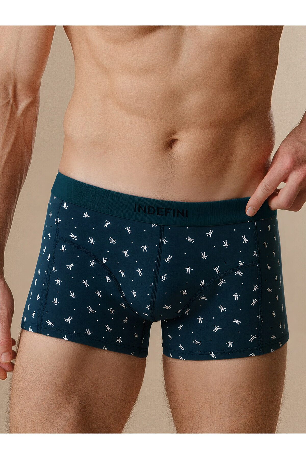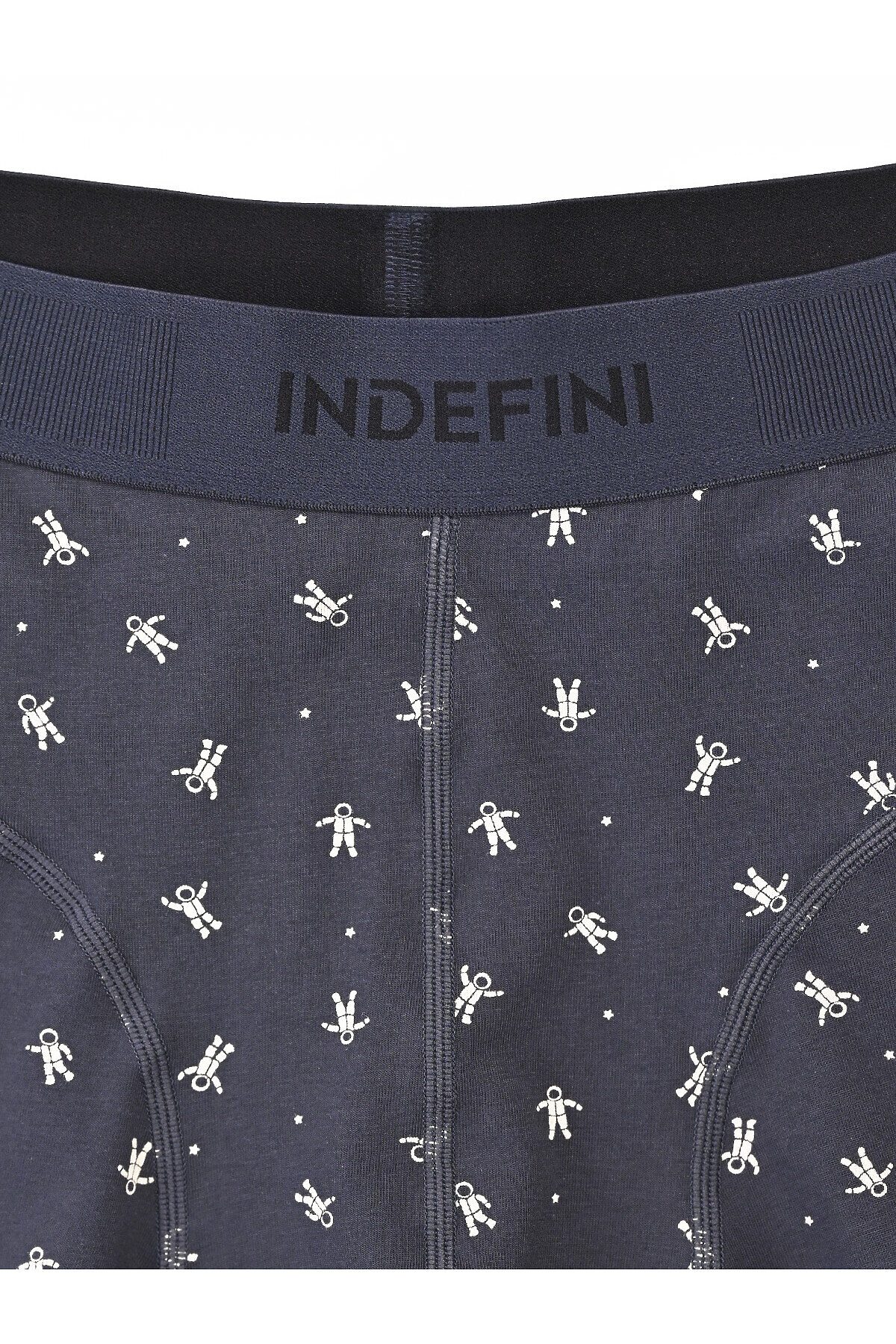 Мужские трусы из хлопка и эластана. Эластичная лента с логотипом INDEFINI надежно сидит на талии и поддерживает. Привлекательный вид трусам боксерам придает узор в виде маленьких белых кораблей на темно-синем фоне. Белье станет отличным дополнением к гардеробу, обеспечивая комфорт и удобство в любой ситуации.