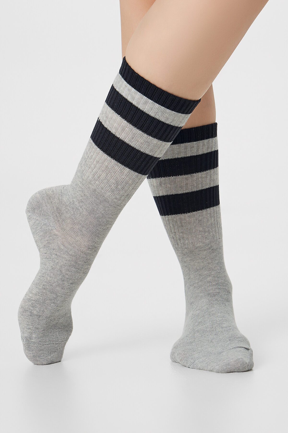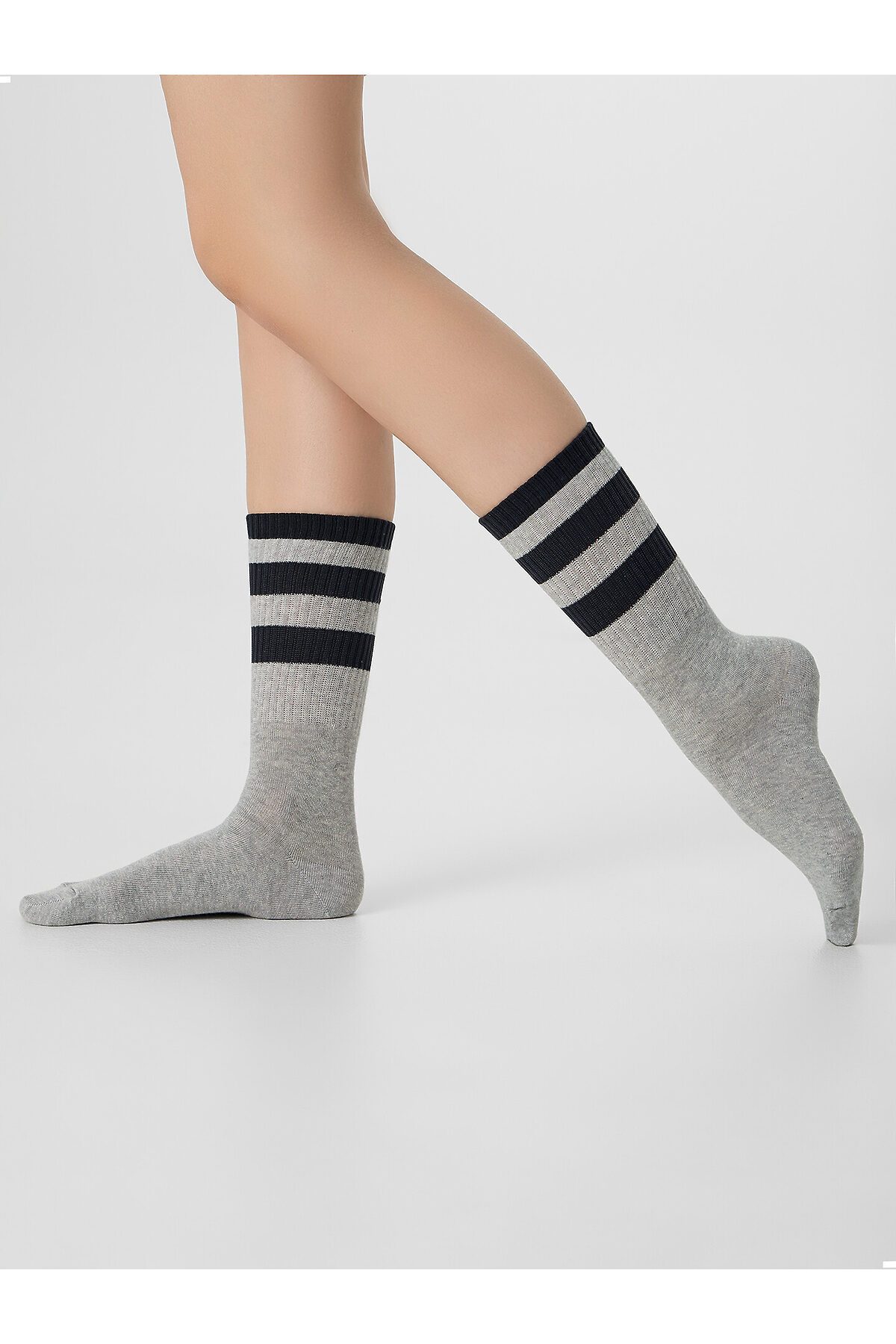 рис.3112 Женский носок с цветным высоким плотным бортом и рисунком в виде цветных полосок.