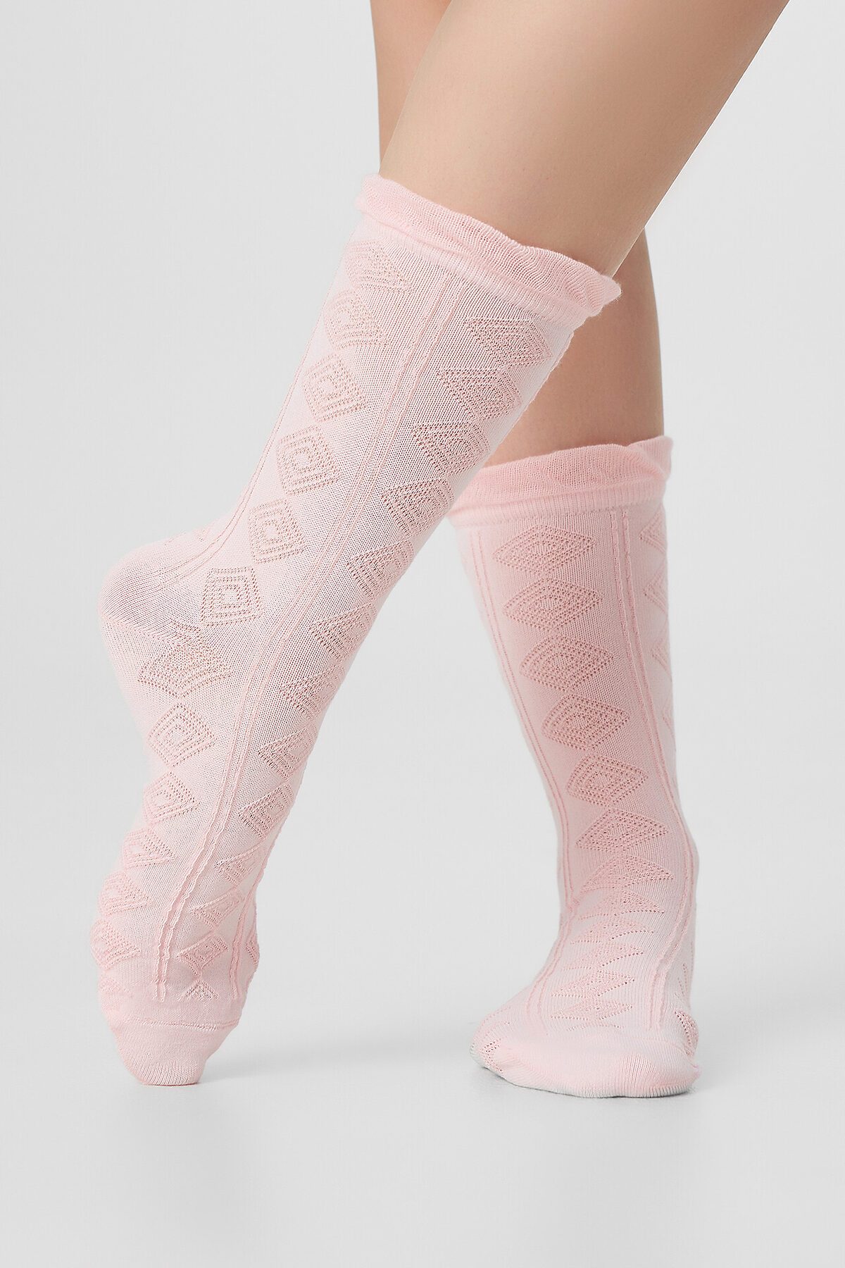 рис.3113 Женские, классические, однотонные носки с объёмным геометрическим рисунком.
