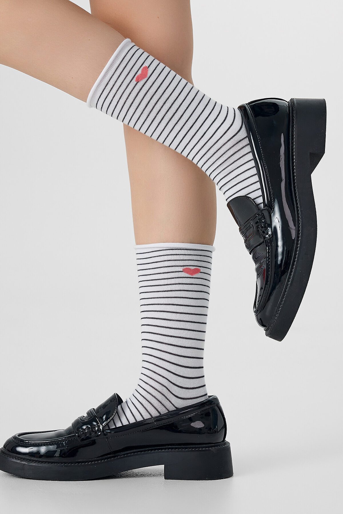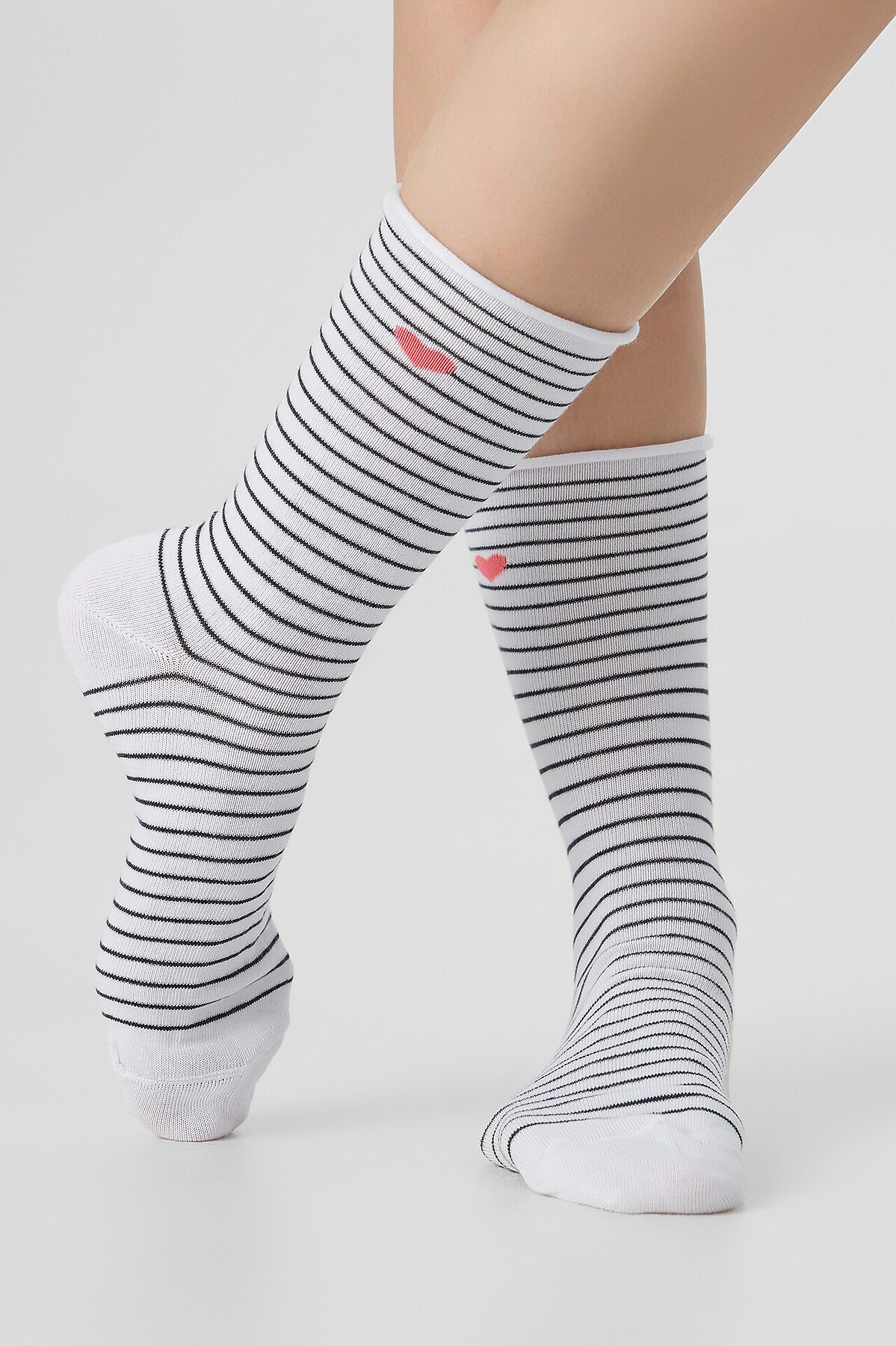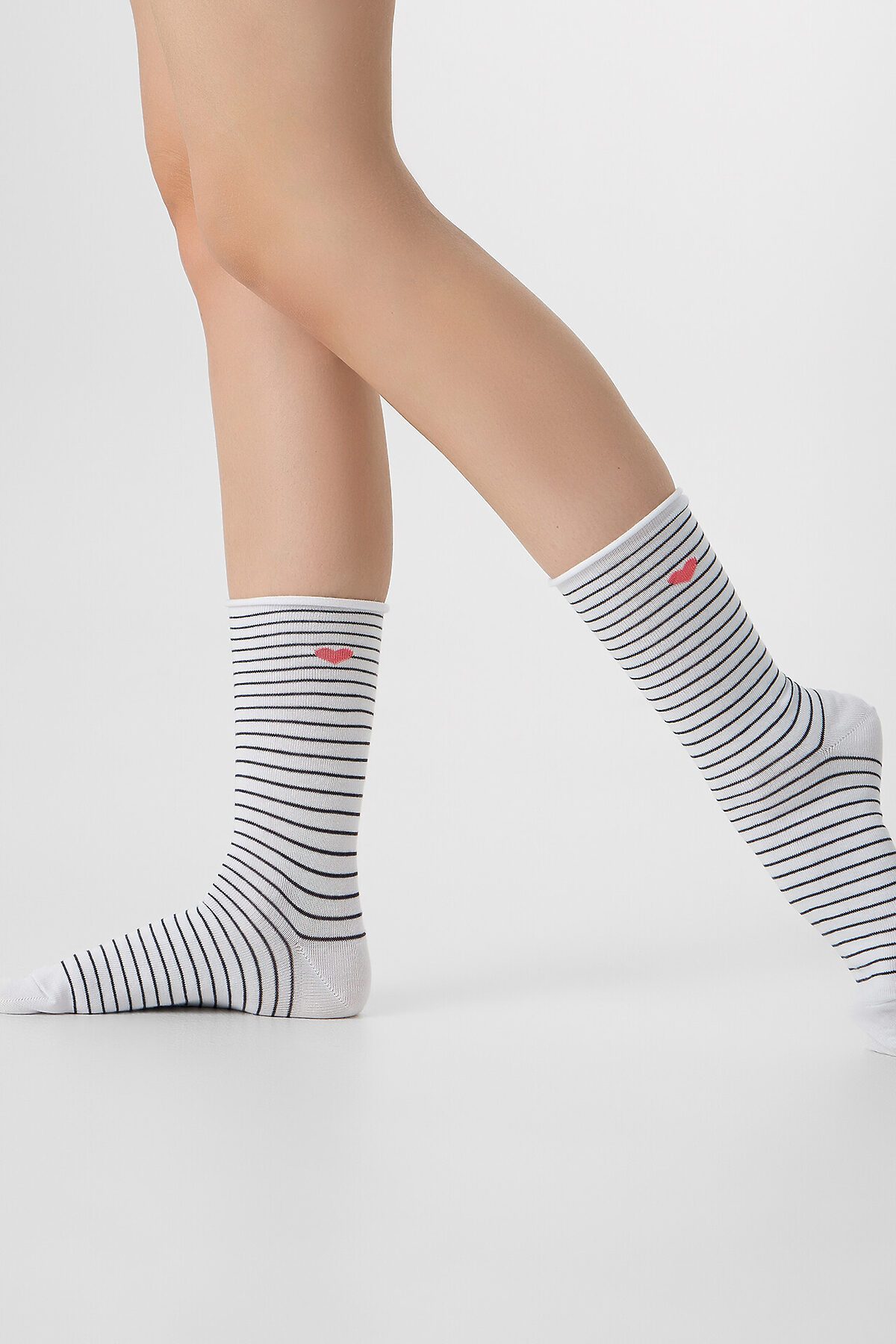 рис.2345 Женские носки классические, без борта, с рисунком в виде сердца и полоски