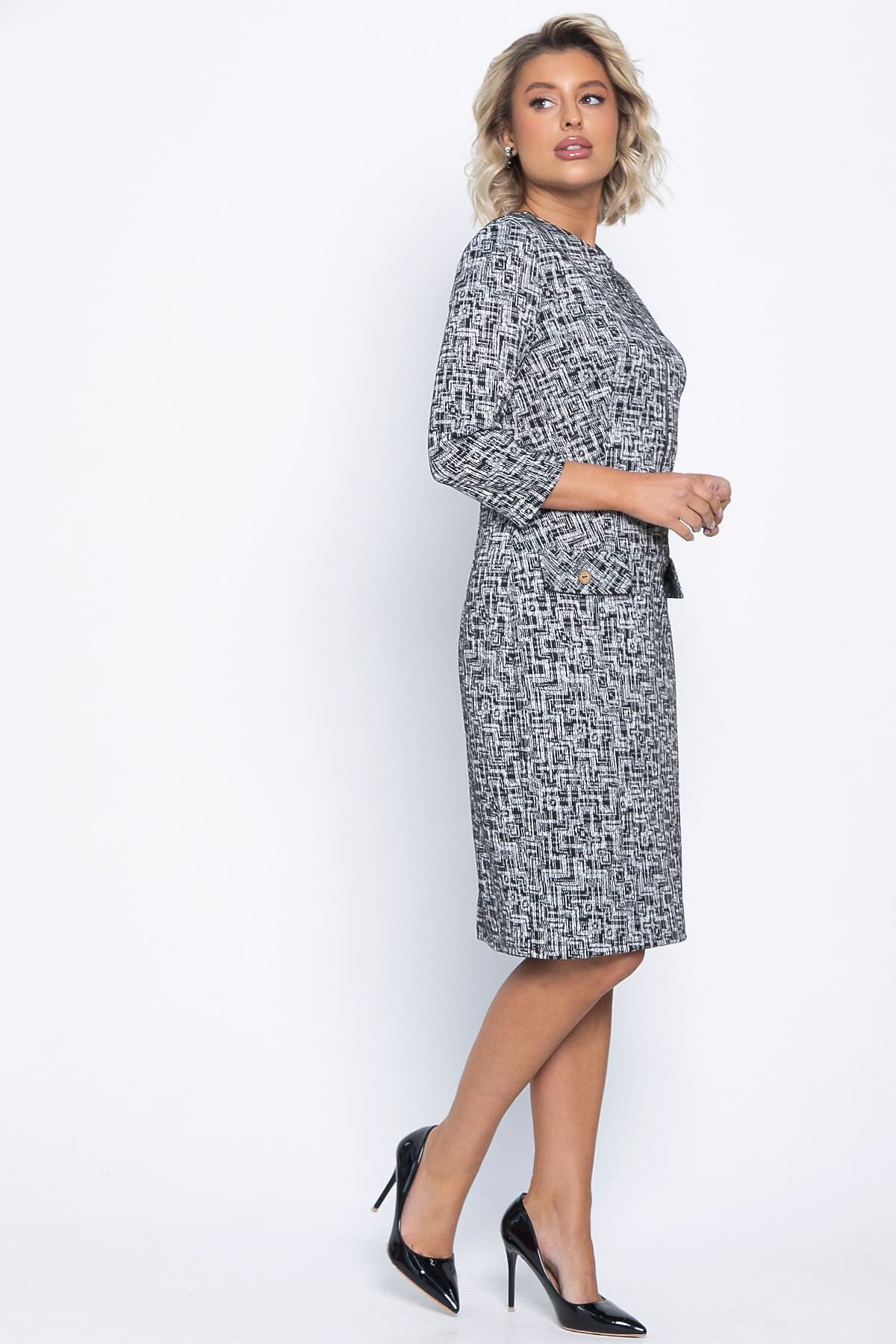 Платье в деловом стиле — это воплощение элегантности, которое подходит как для офиса, так и для особых случаев. Его полуприлегающий силуэт изящно подчеркивает фигуру, создавая утонченный образ. Универсальный дизайн позволяет легко комбинировать это платье с различными аксессуарами и обувью, что делает его незаменимым элементом вашего гардероба.