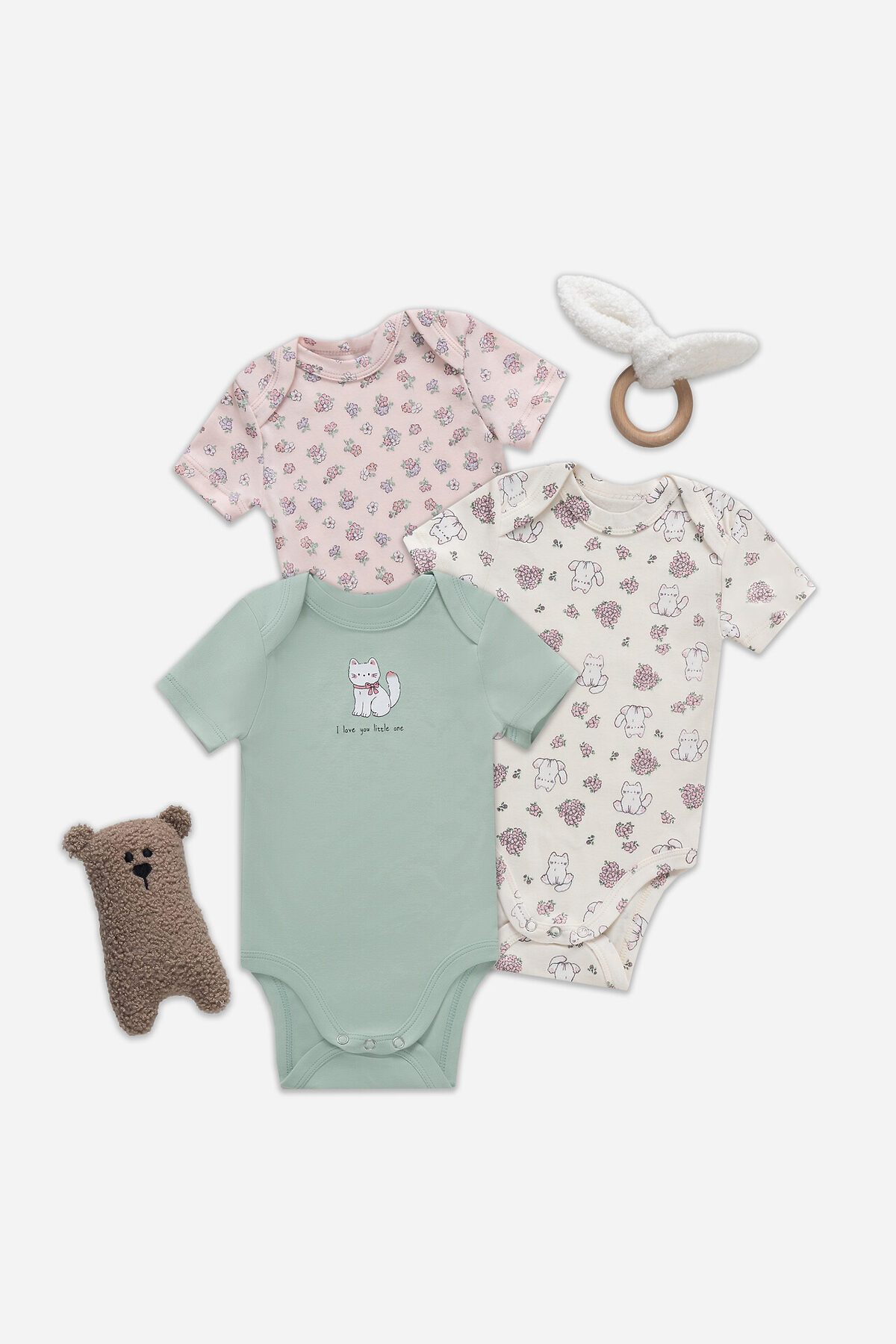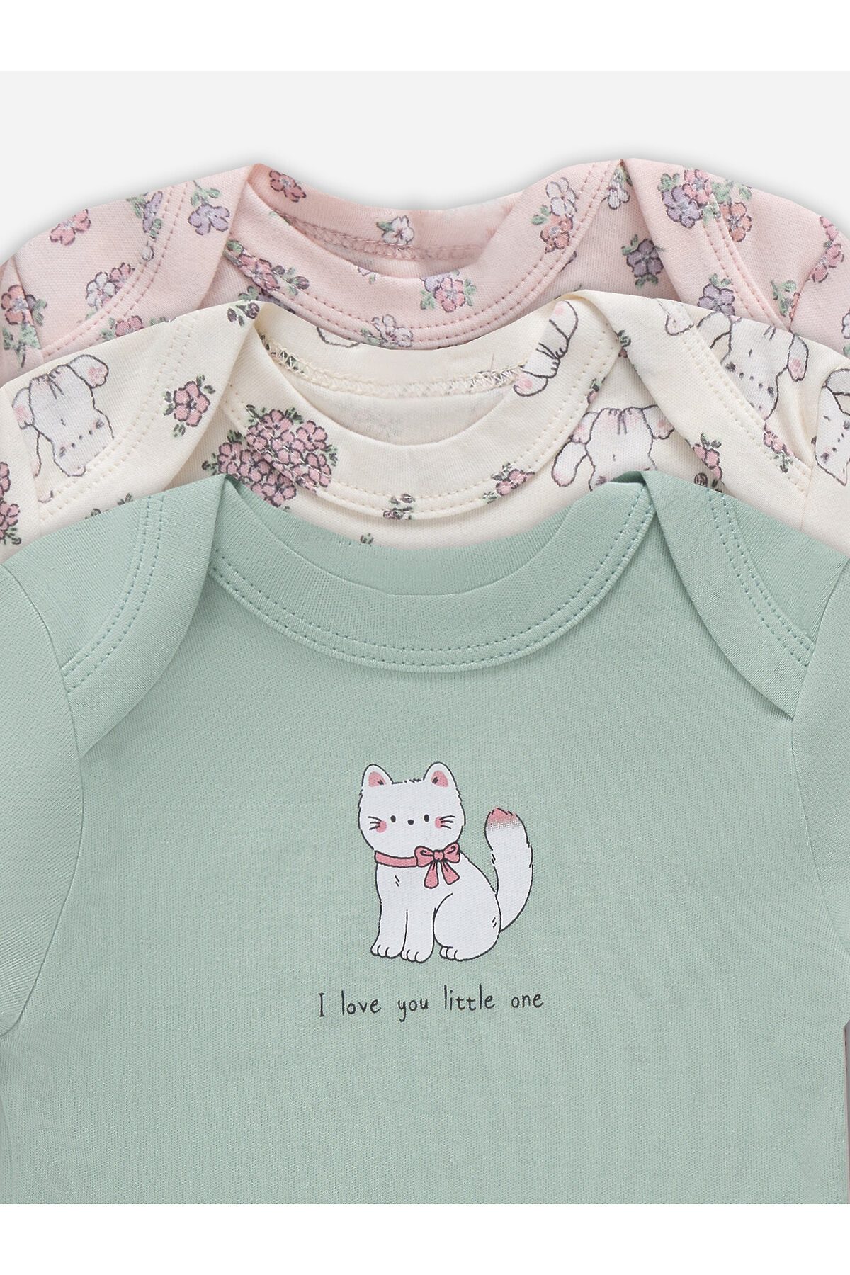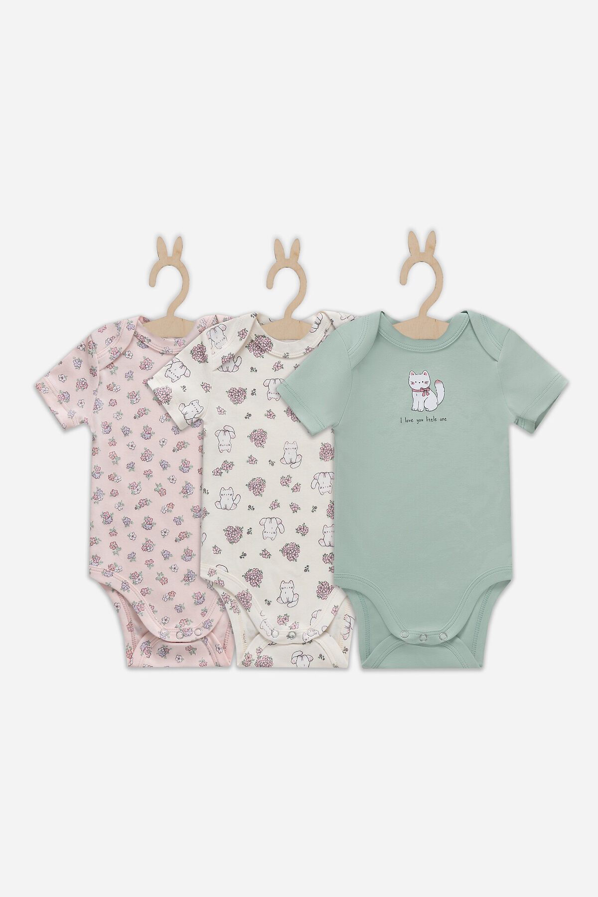 Боди детское (3шт.) MARK FORMELLE, котики с цветами на молочном +мята +цветочки на розовом