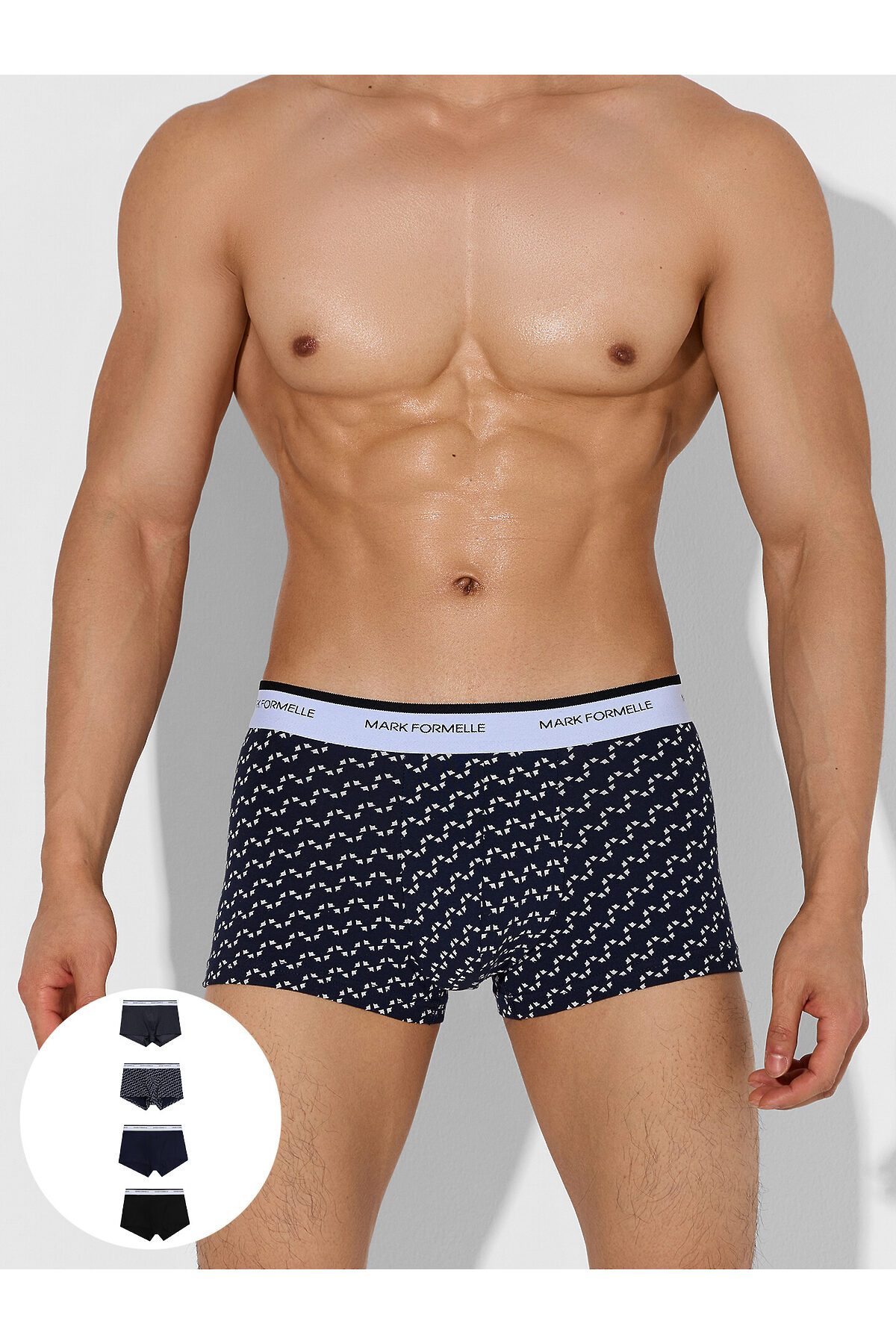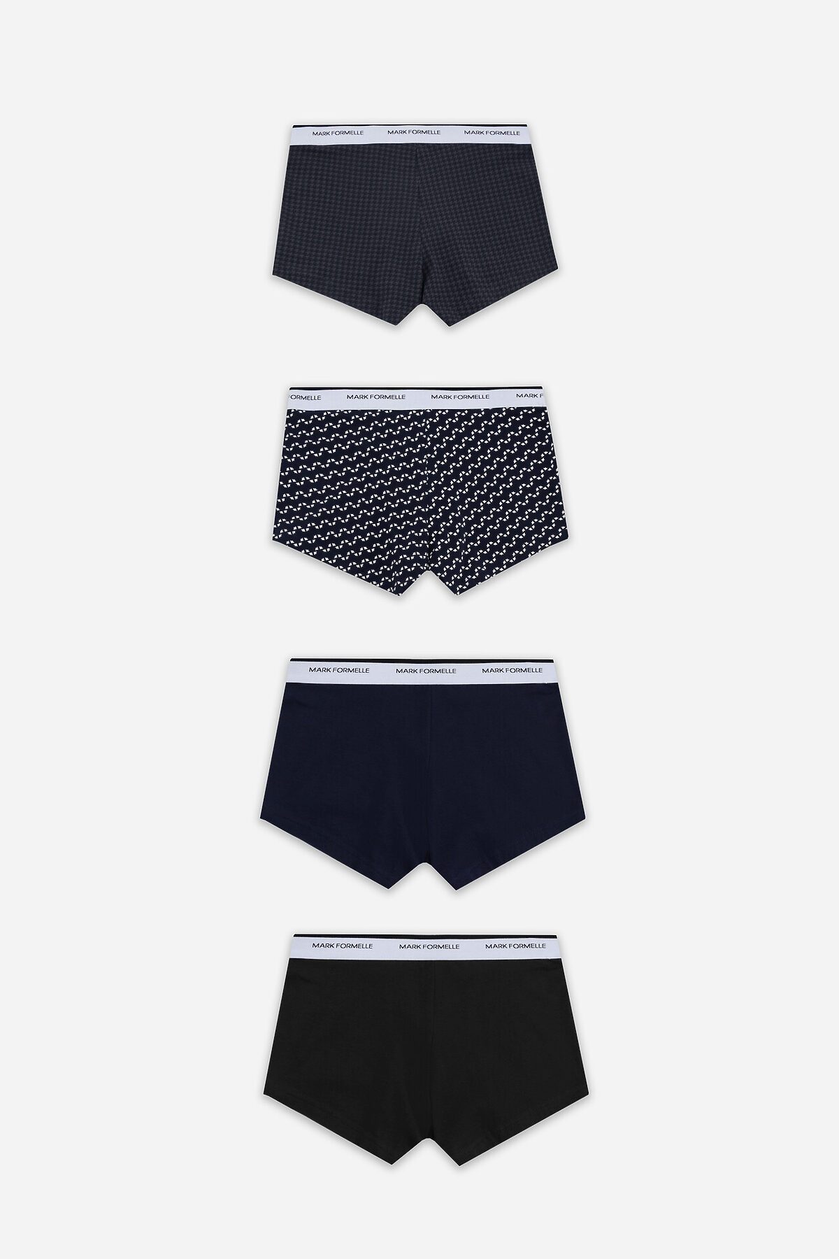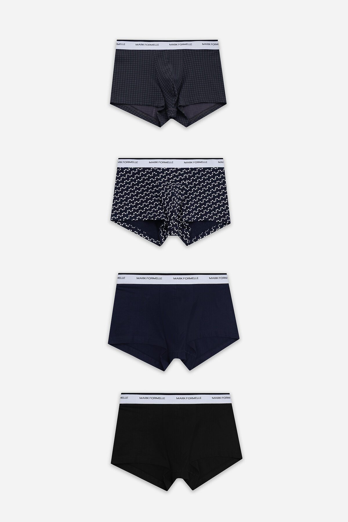 Трусы мужские (4шт). MARK FORMELLE, диагональн. узор на гл.синем +гл.синий +черный +черная гусиная лапка