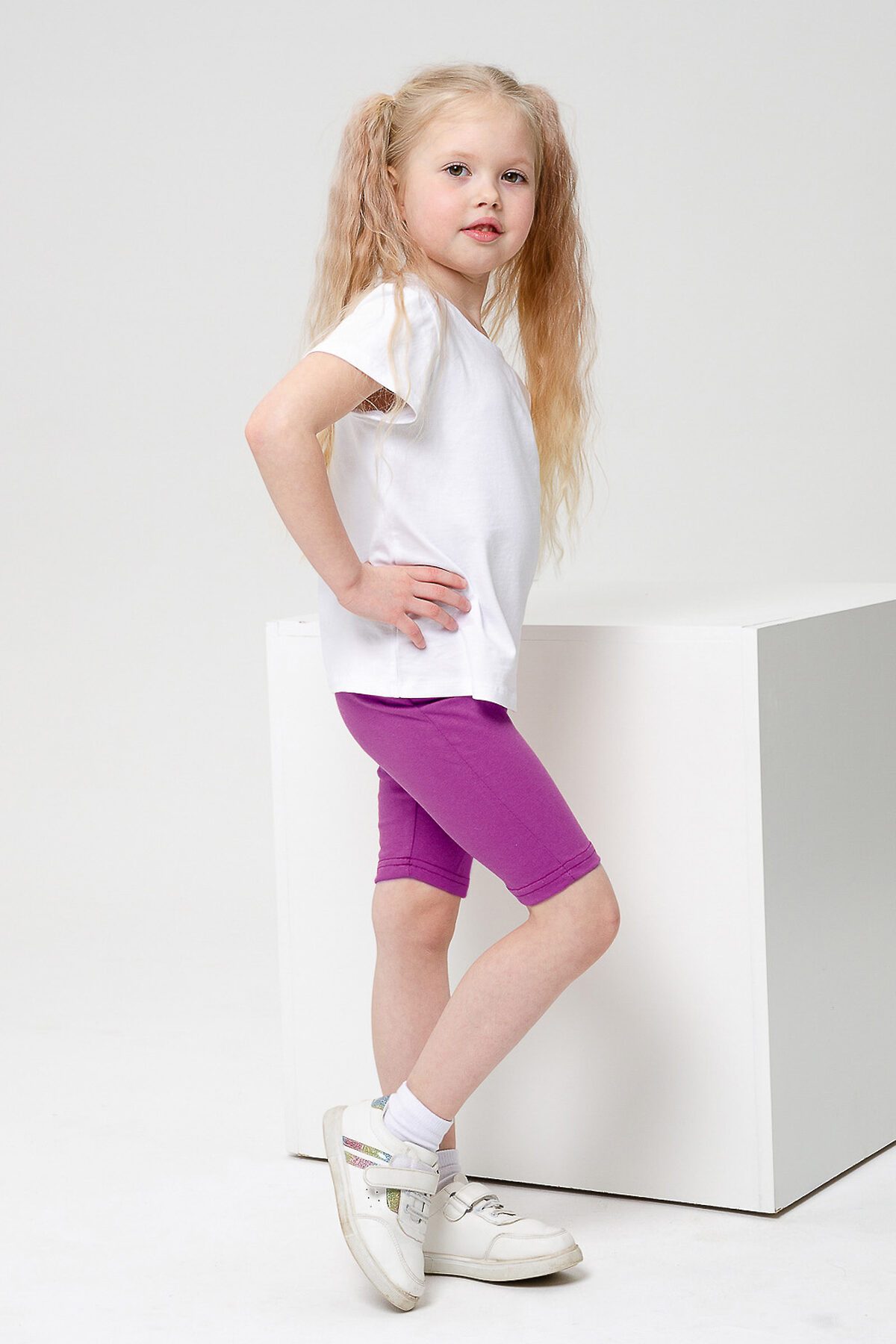 Шорты для девочки чуть выше колена. Отлично подойдут для лета, школы или детского сада.