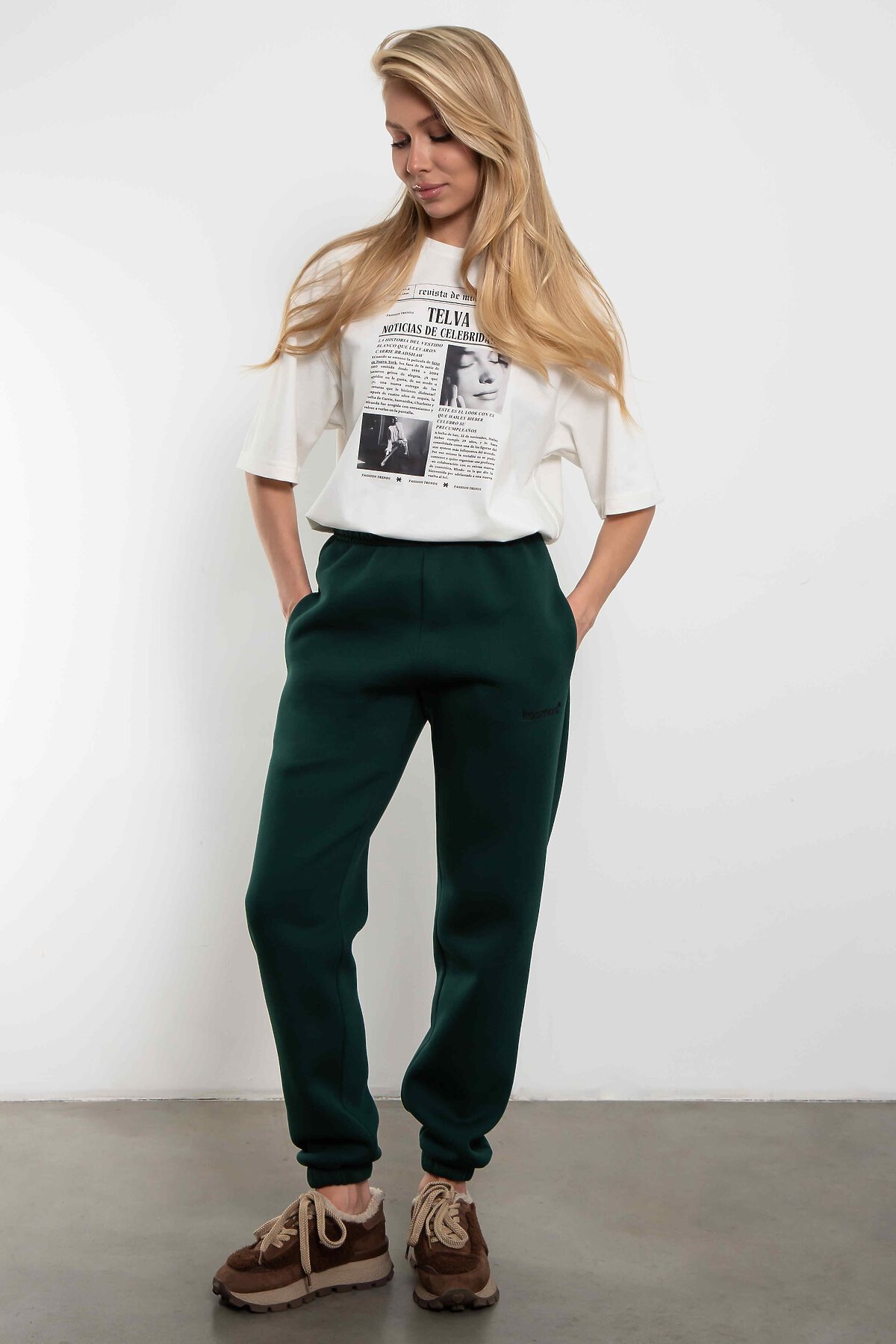 Брюки джоггеры женские малахит с начесом KOSMOS