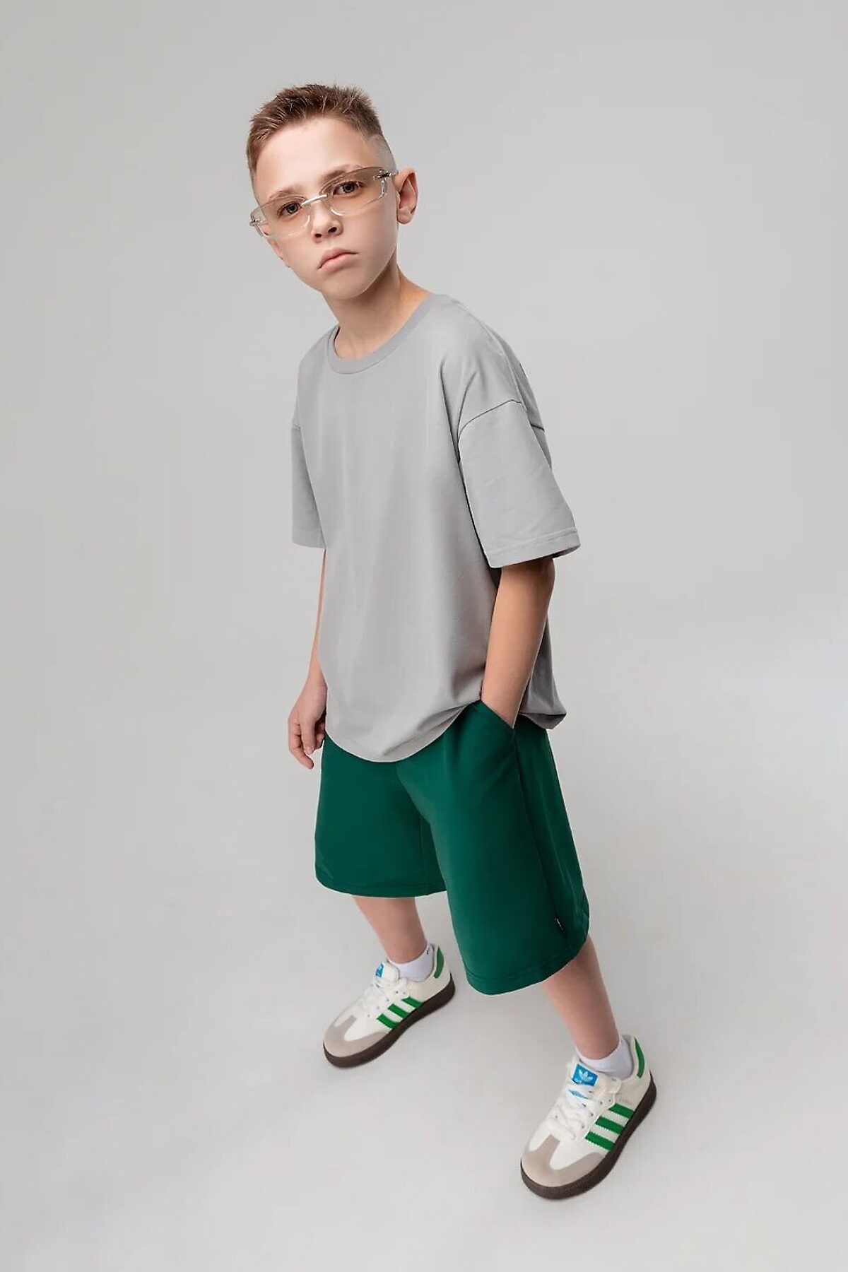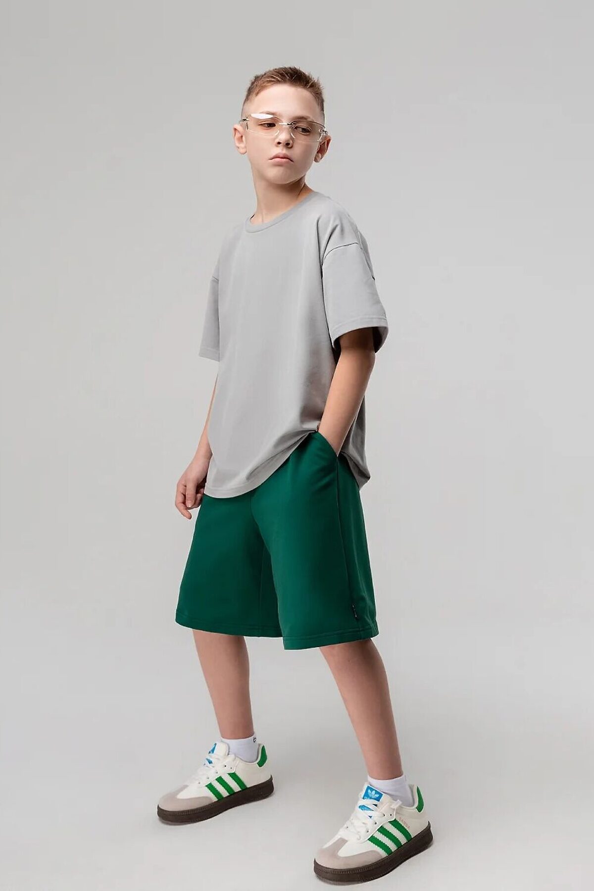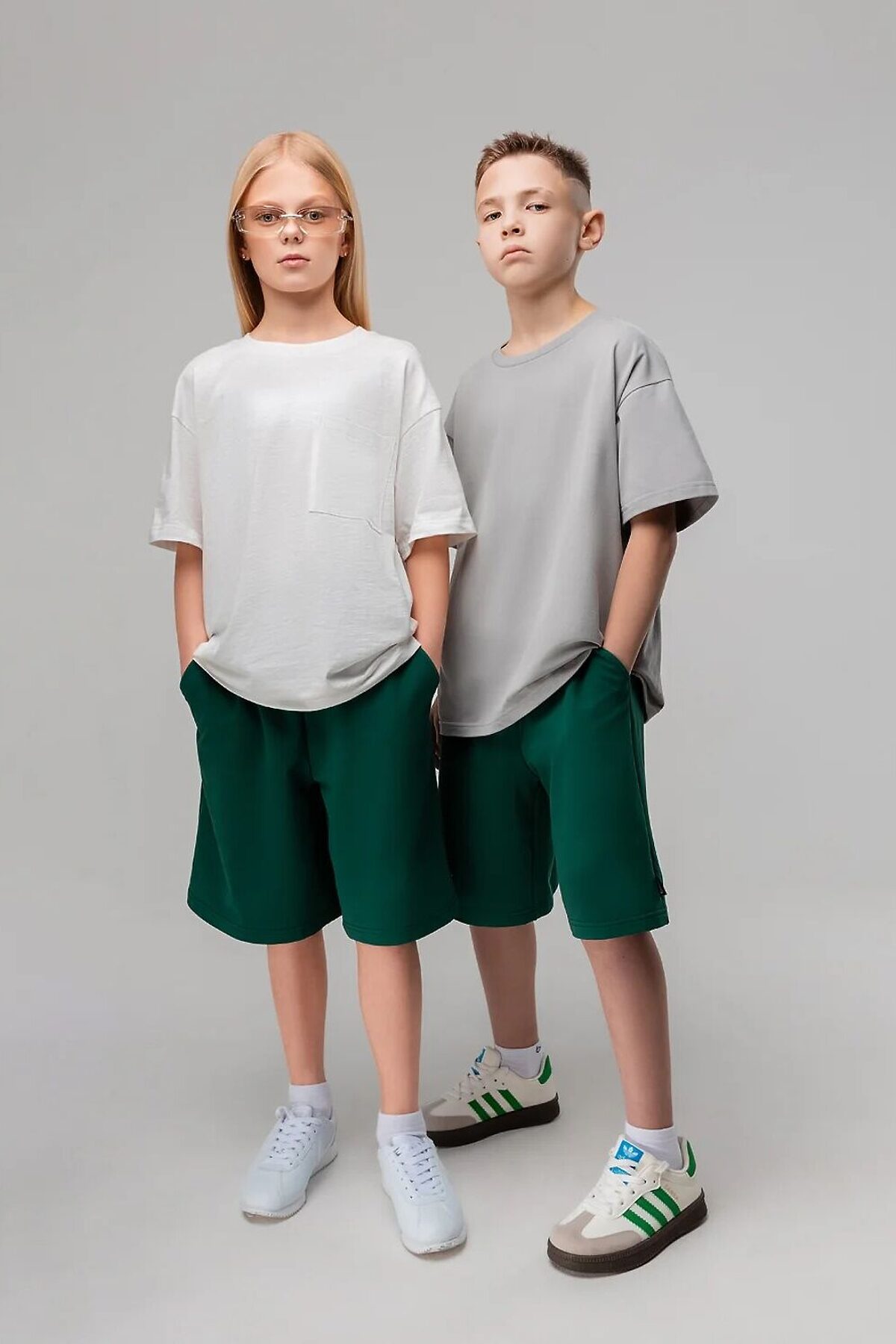 Спортивные шорты для детей школьного возраста, подойдут мальчикам и девочкам. Детали: свободный покрой, пояс- эластичная резинка, по бокам карманы с отрезным бочком. Состав: футер двухнитка 92% хлопок 8% лайкра