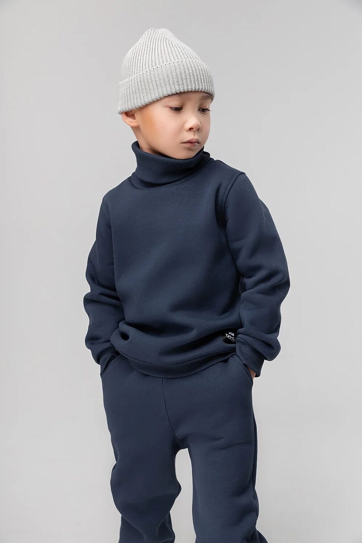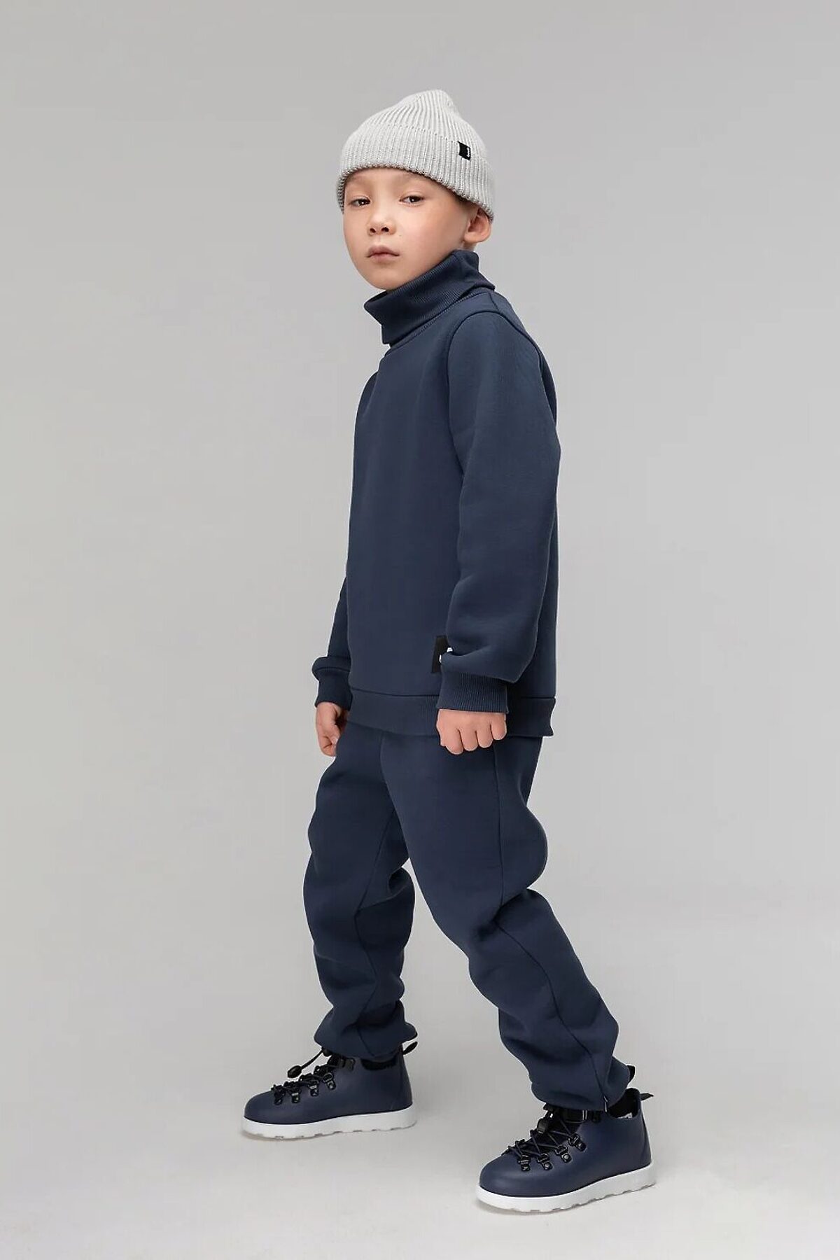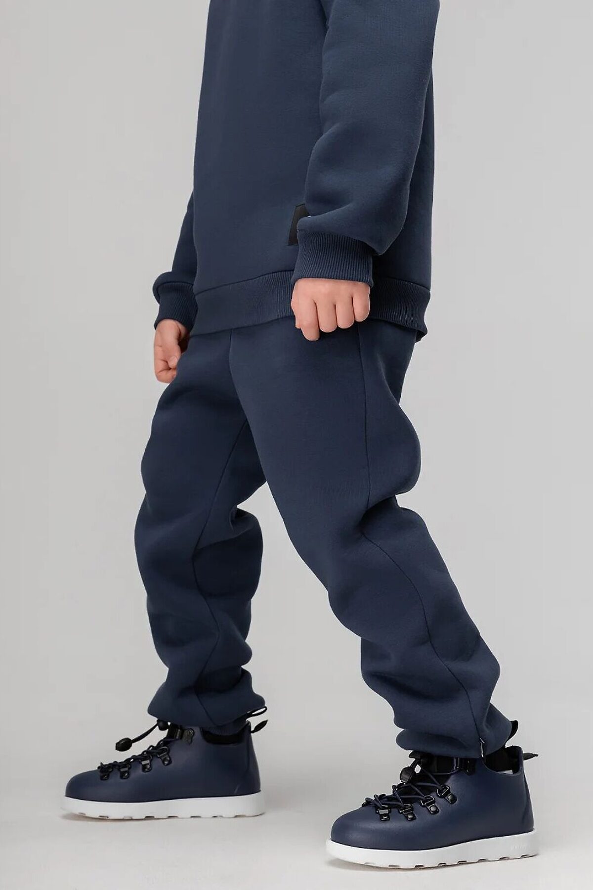 Детский костюм. Толстовка с воротником-стойка, рукава на манжетах, полуприлегающий покрой. Брюки- джоггеры, детали: пояс - эластичная резинка, низ изделия- манжеты. Состав: футер трехнитка с начесом 80% хлопок 20% полиэстер