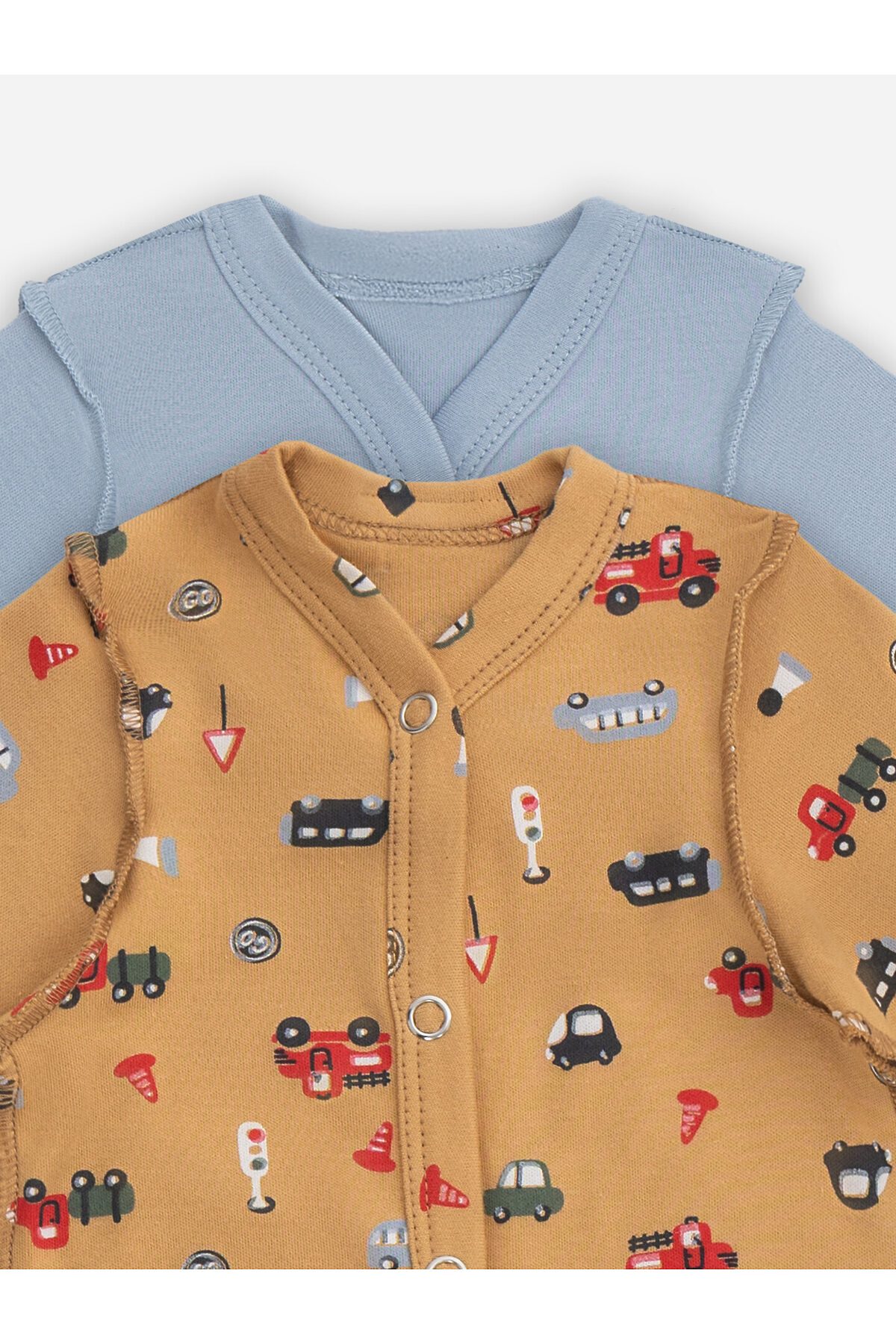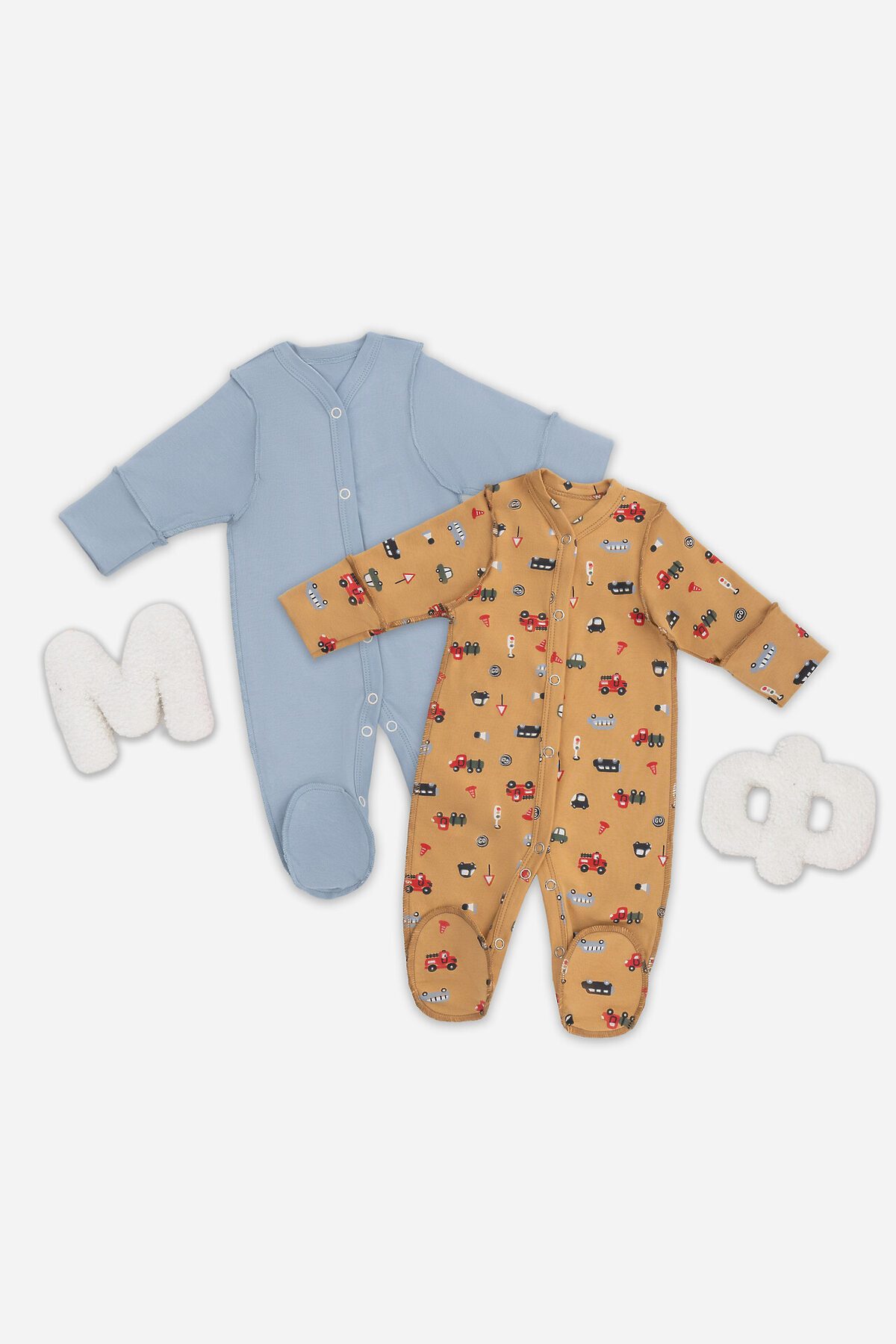 Комбинезон нательный детский (2шт.) MARK FORMELLE, машинки на бисквите +серо -голубой