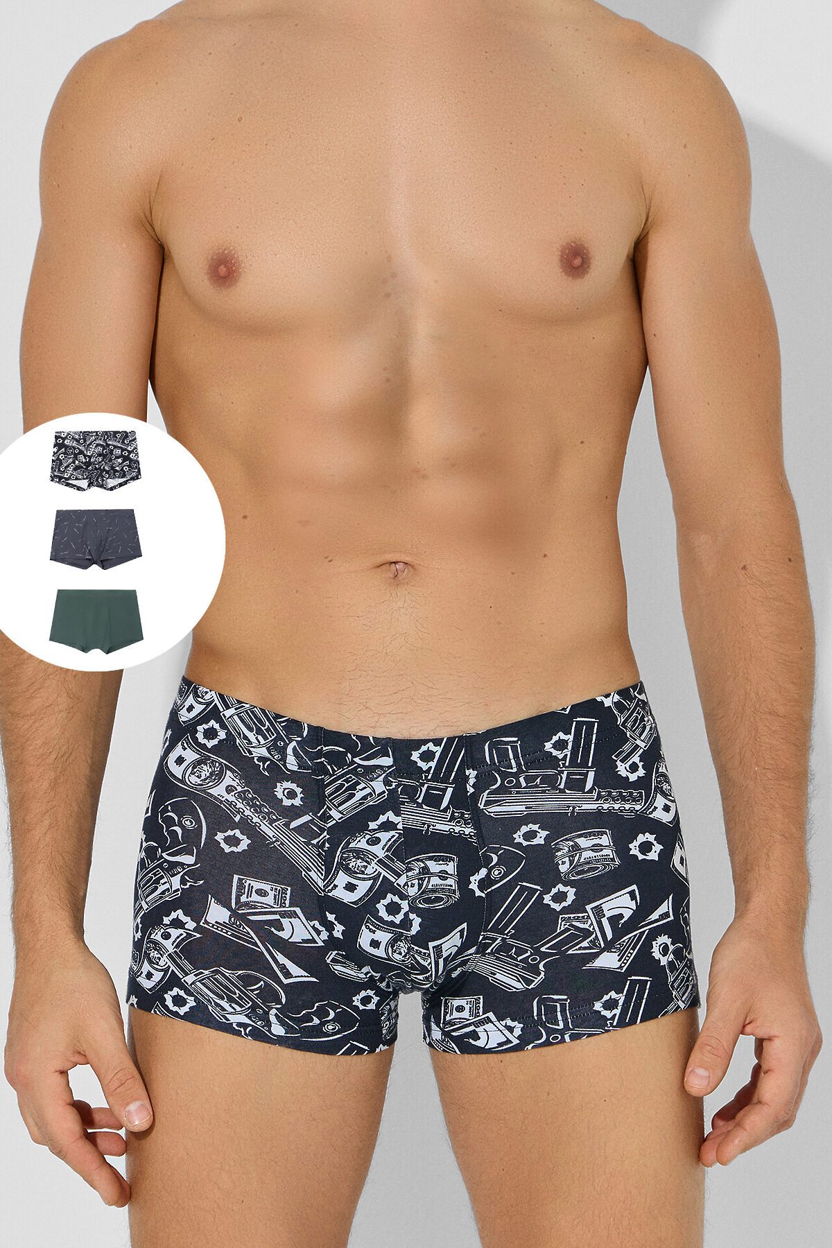 Трусы мужские (3шт) MARK FORMELLE, пистолеты и деньги на черном +хвойный лес +пули на графите