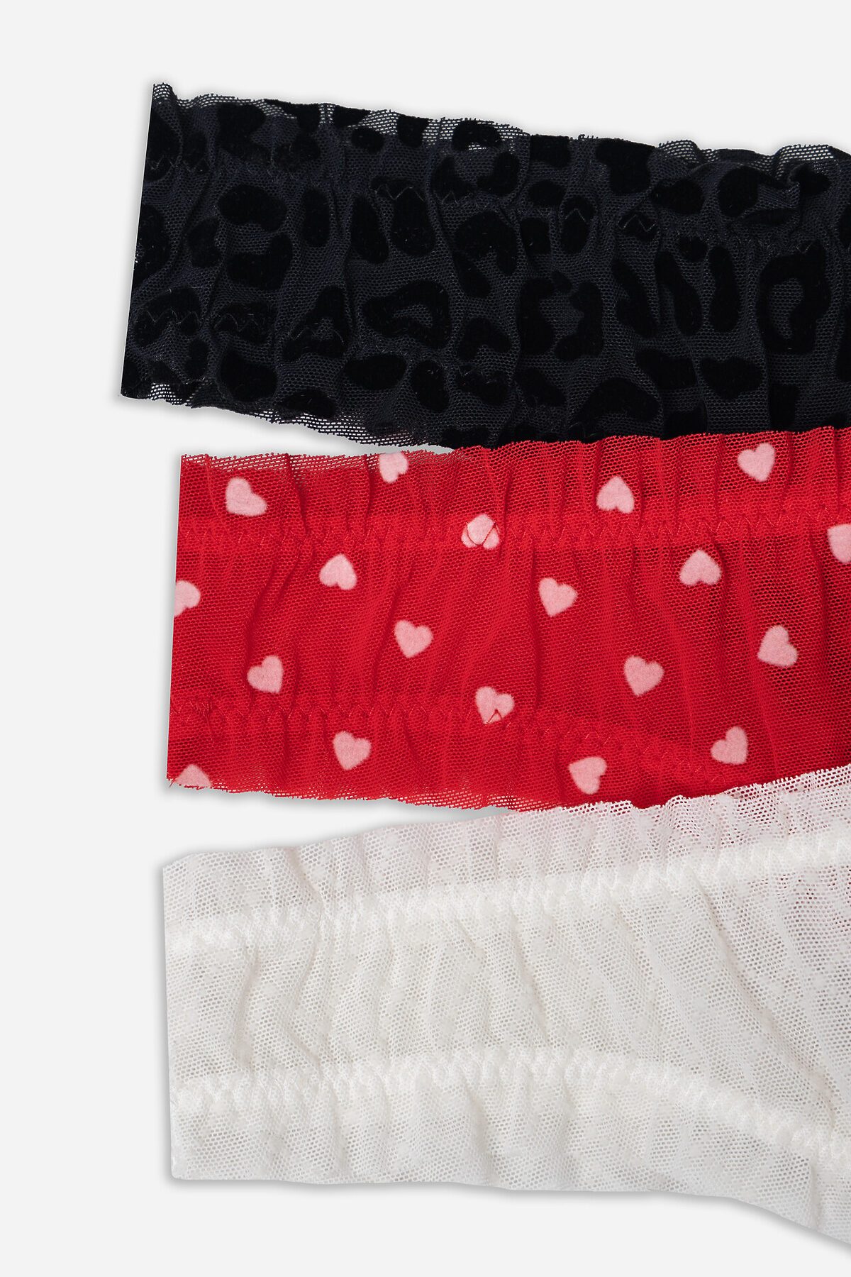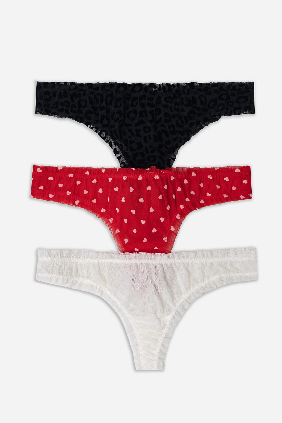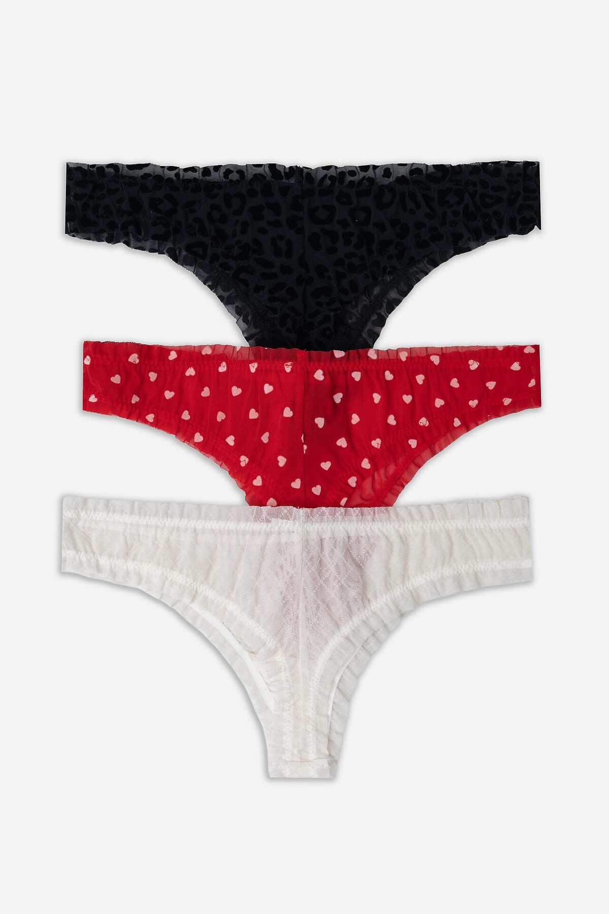 Трусы женские, средняя линия талии, силуэт - бразилиано. Передняя и задние детали выполнены из сетки. Подкладка ластовицы из хлопка, верхний срез подкладки ластовицы отлетной. По верхнему срезу трусов и по ножкам рюша из сборки, под низом жилка.