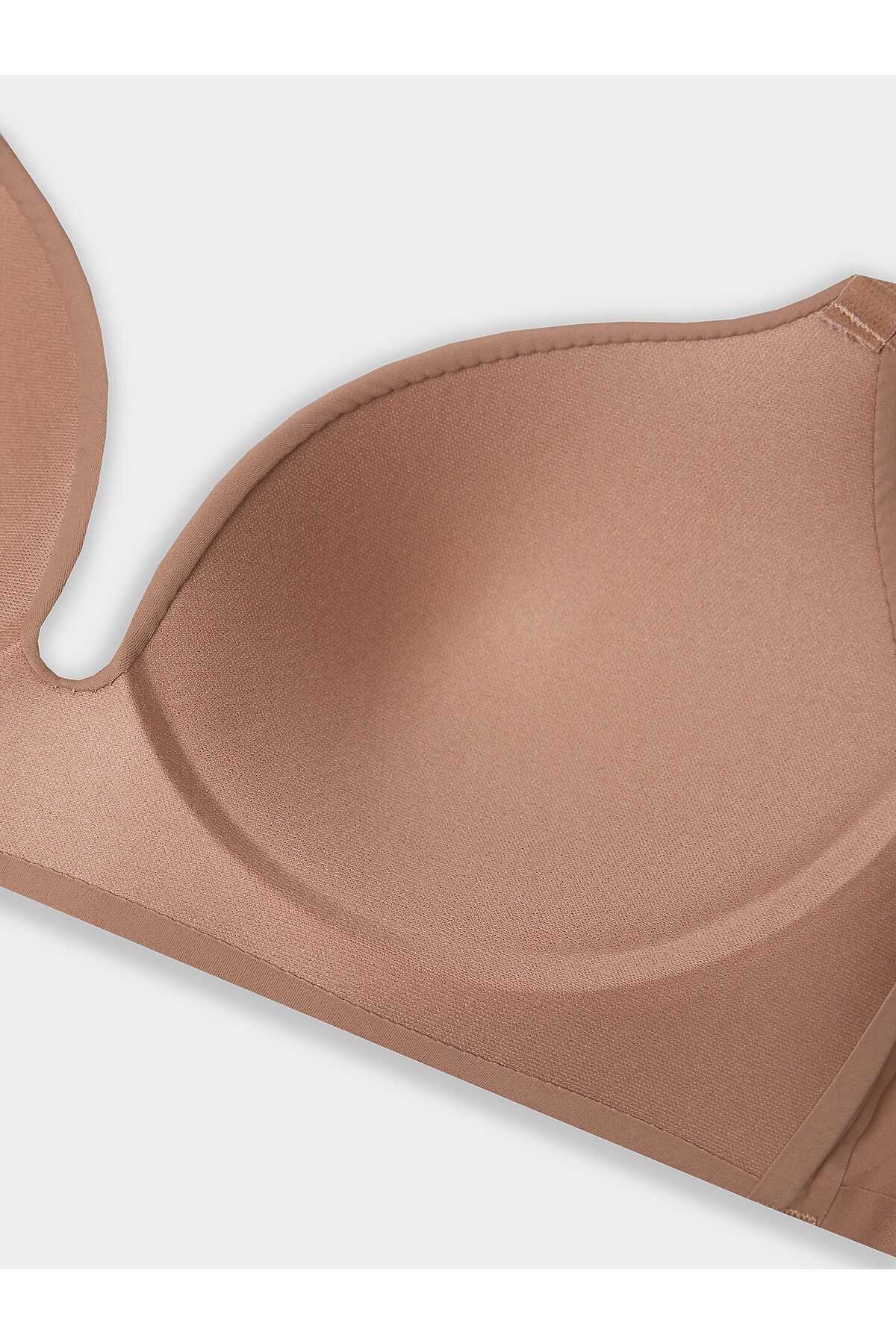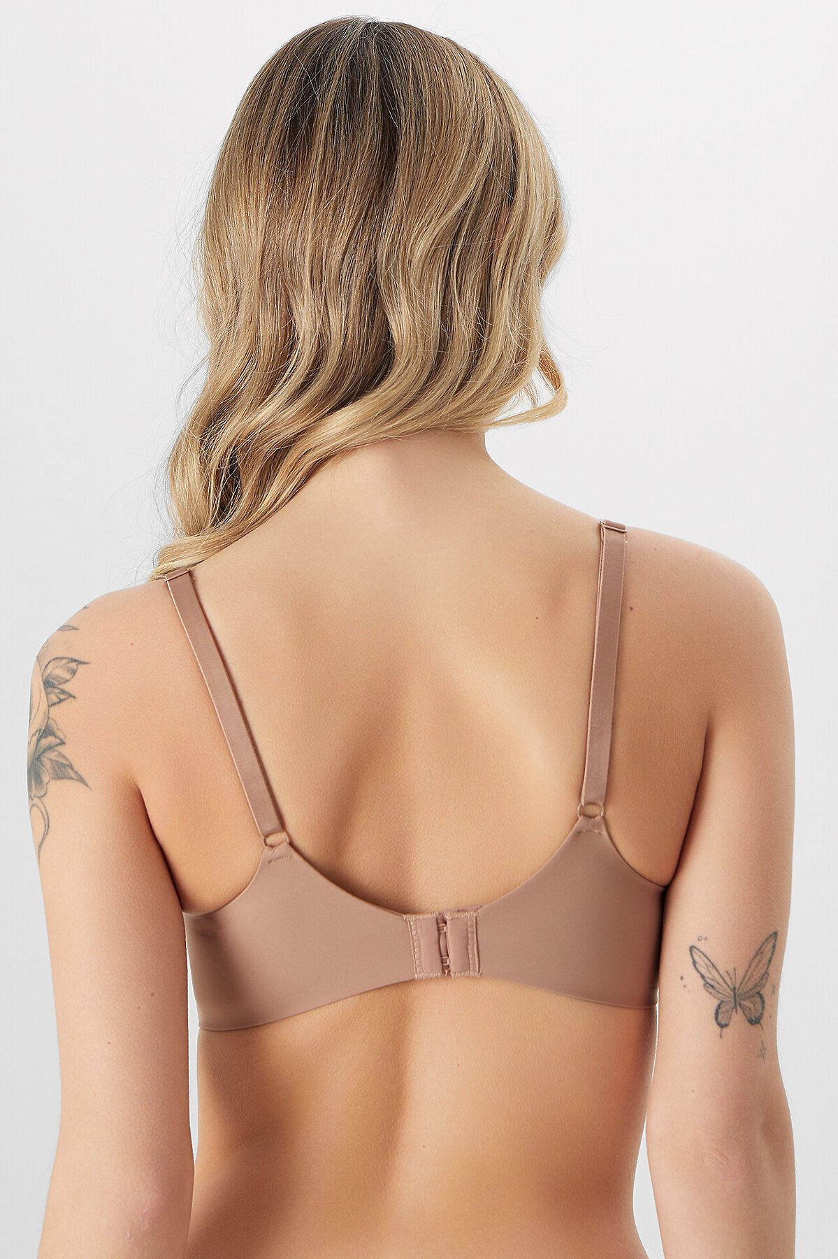 Бюстгальтер имеет формованные чашки, которые обеспечивают естественную поддержку и мягко повторяют форму груди без использования косточек или вставок push-up. Это делает модель особенно удобной, так как она практически не ощущается на теле. Дизайн бюстгальтера выполнен в классическом стиле, без лишних деталей, что делает его незаметным под облегающей и тонкой одеждой.
