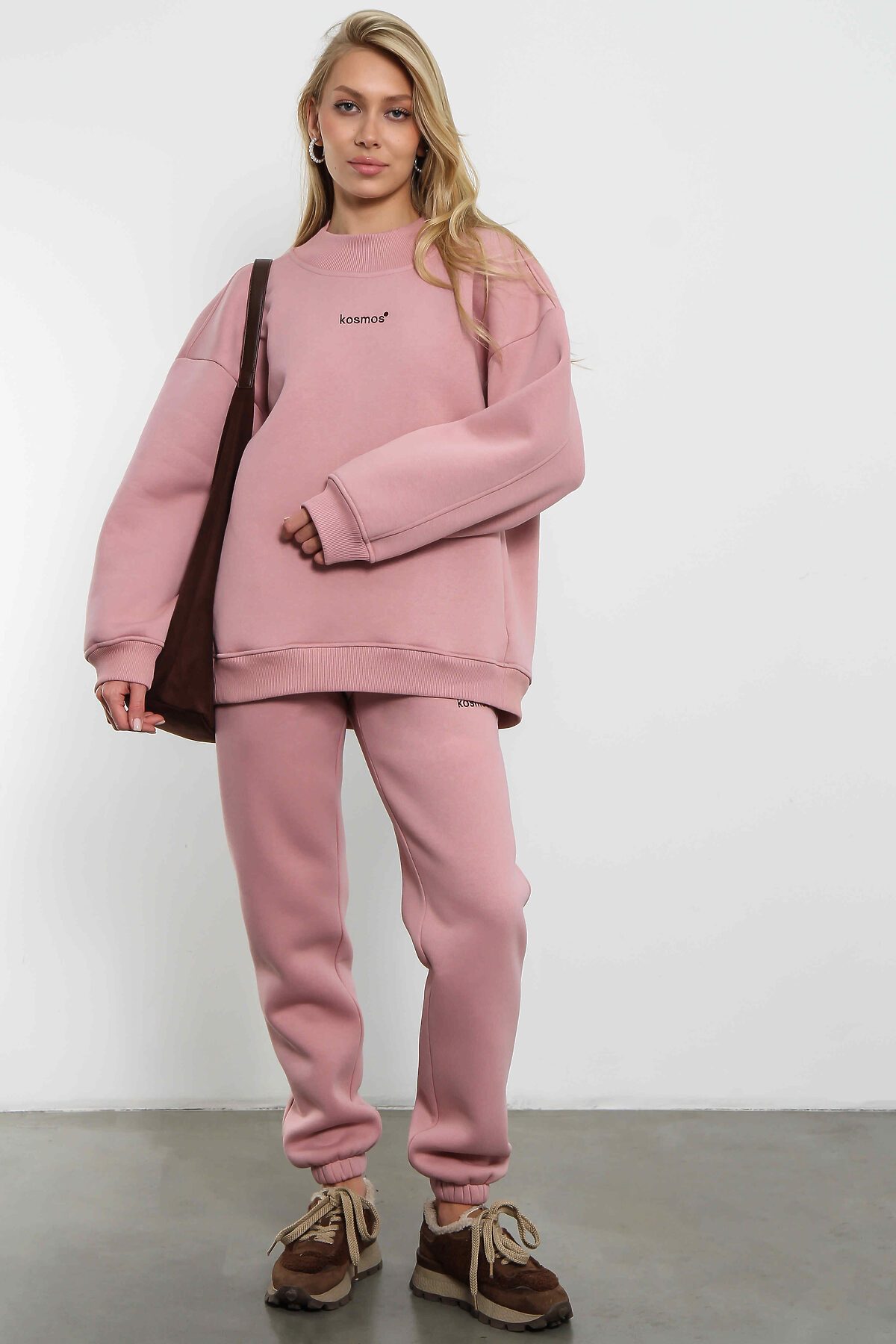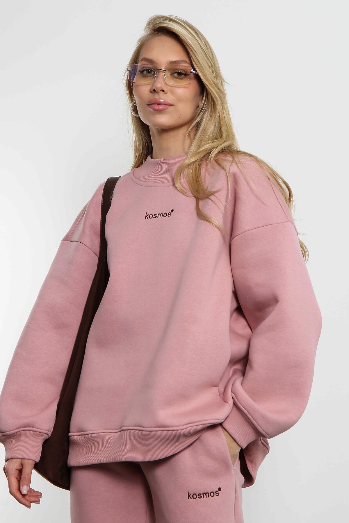 Свитшот женский оверсайз с начесом Розовая пудра KOSMOS
