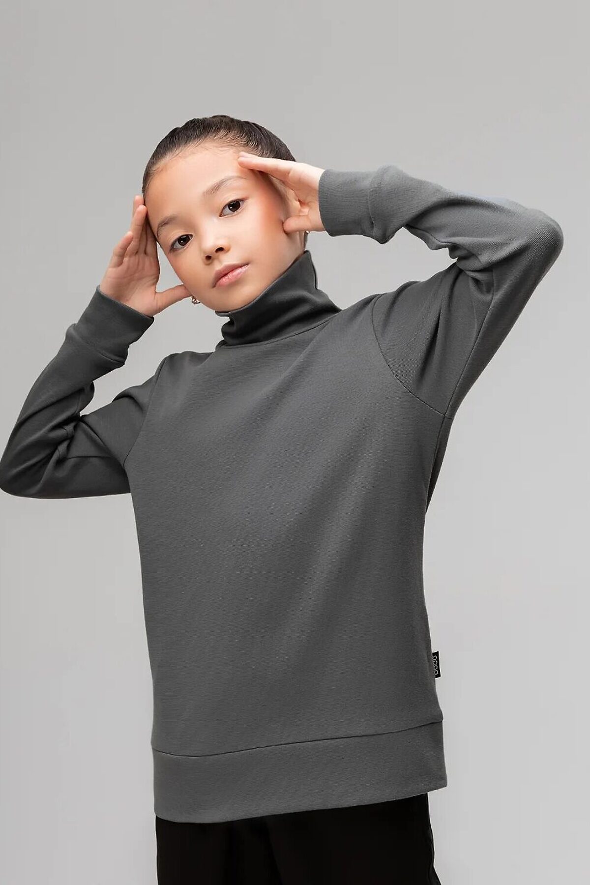 Водолазка детская. Детали: полуприлегающий покрой, рукава на манжетах, воротник-стойка. Состав: рибана 92% хлопок 8% лайкра