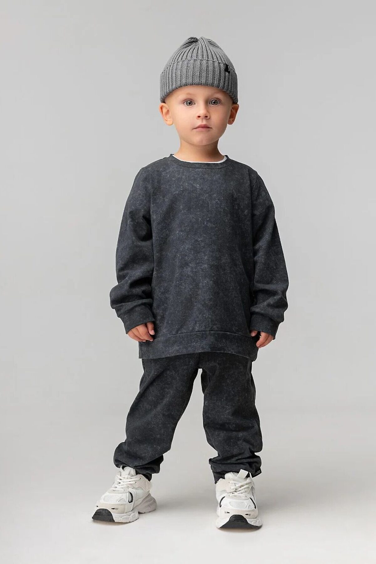 Детский костюм, состоящий из джемпера и брюк.