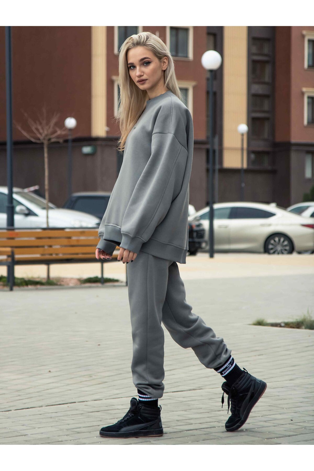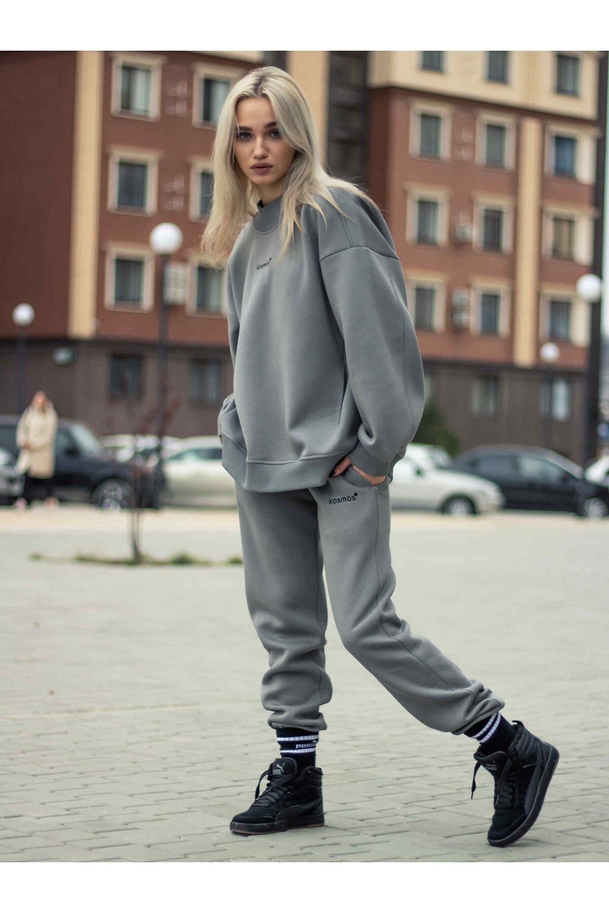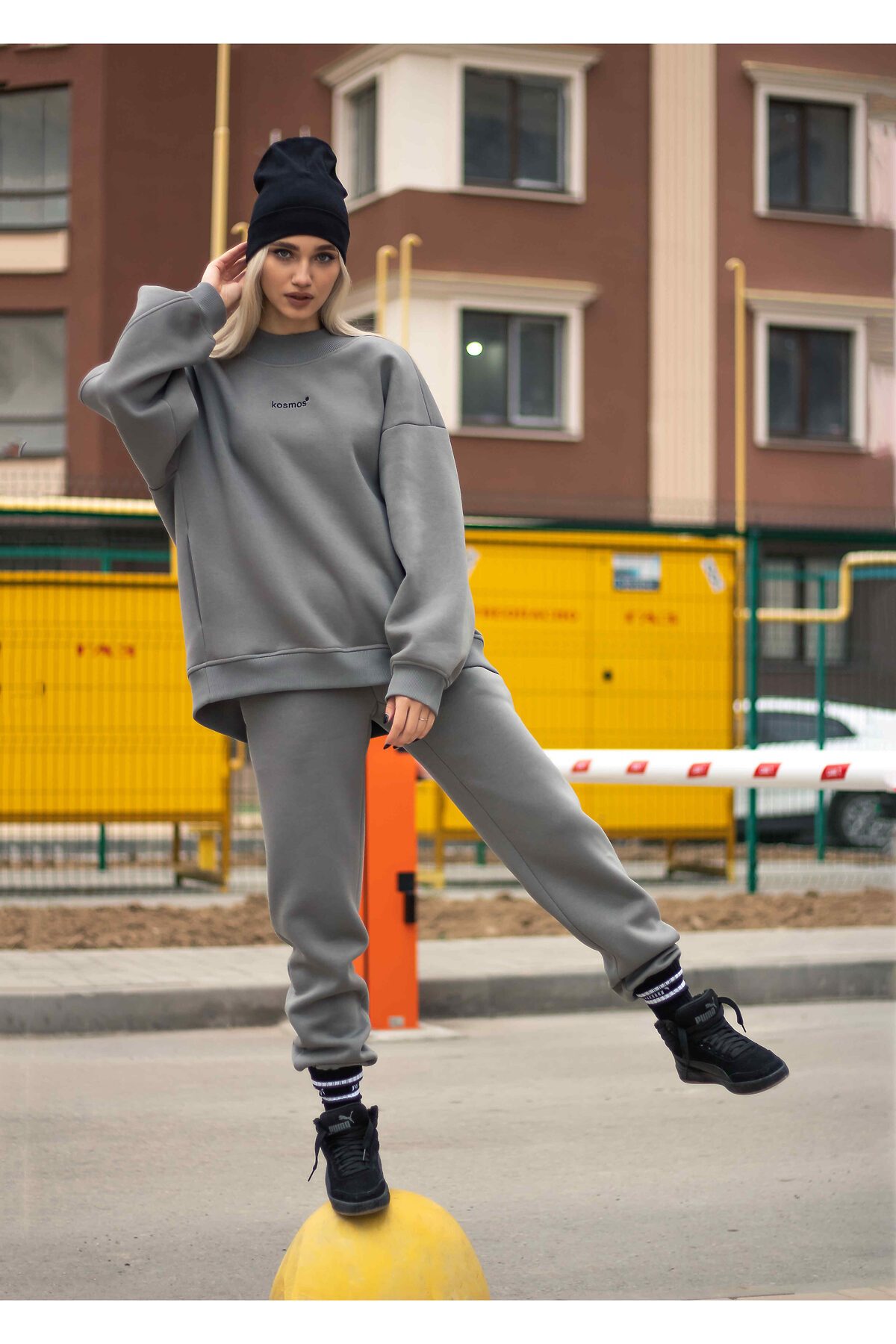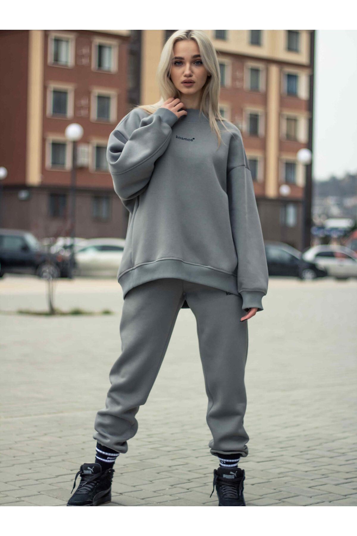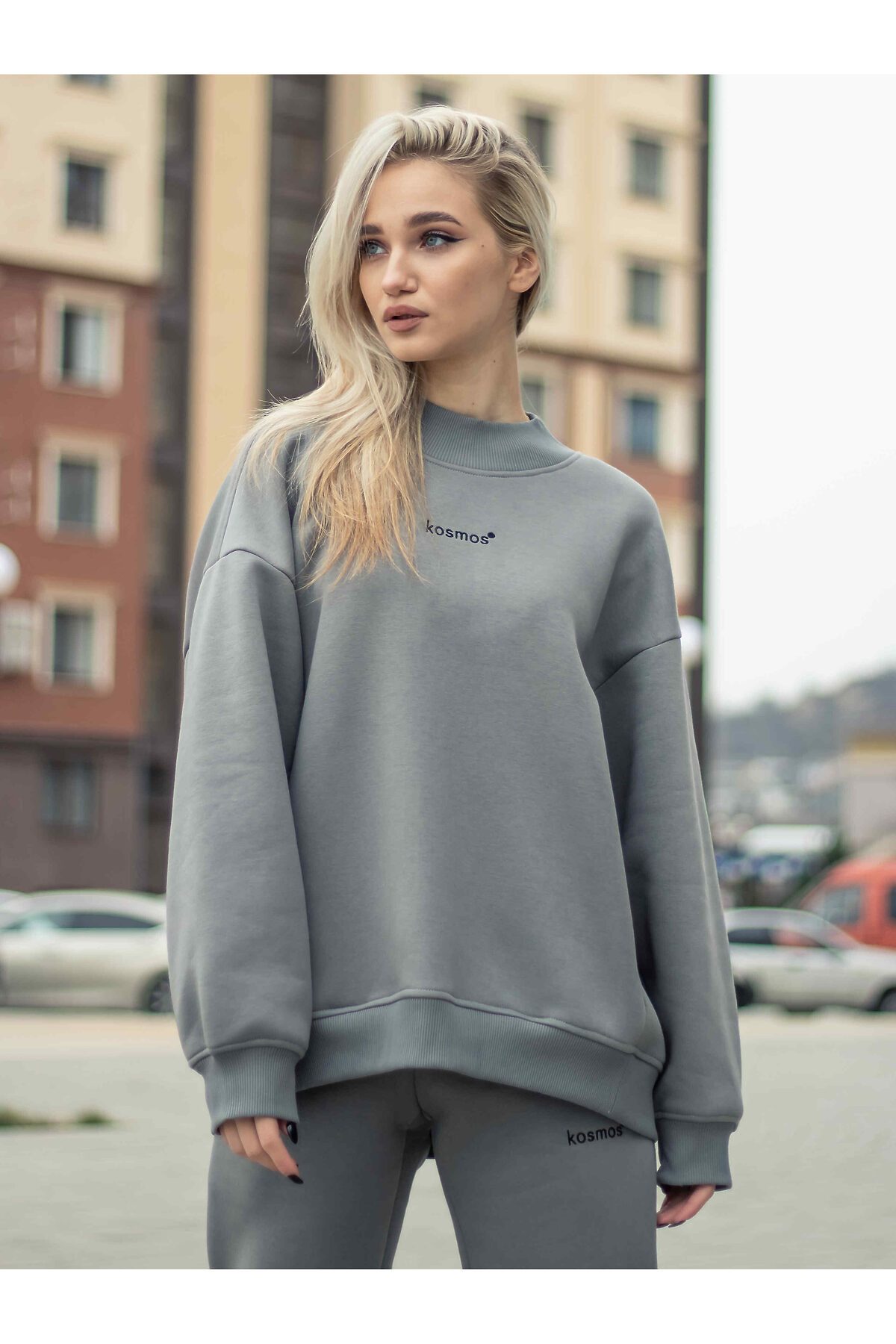 Свитшот женский оверсайз с начесом серый KOSMOS