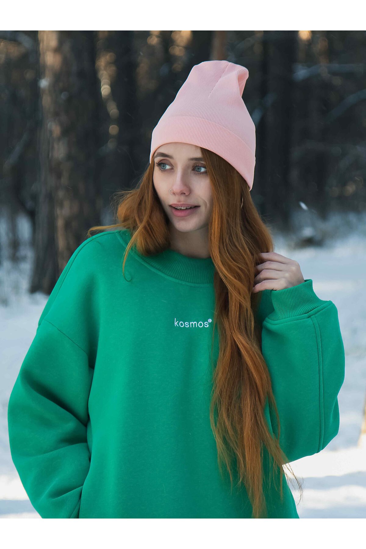 Свитшот женский оверсайз с начесом Зеленый KOSMOS