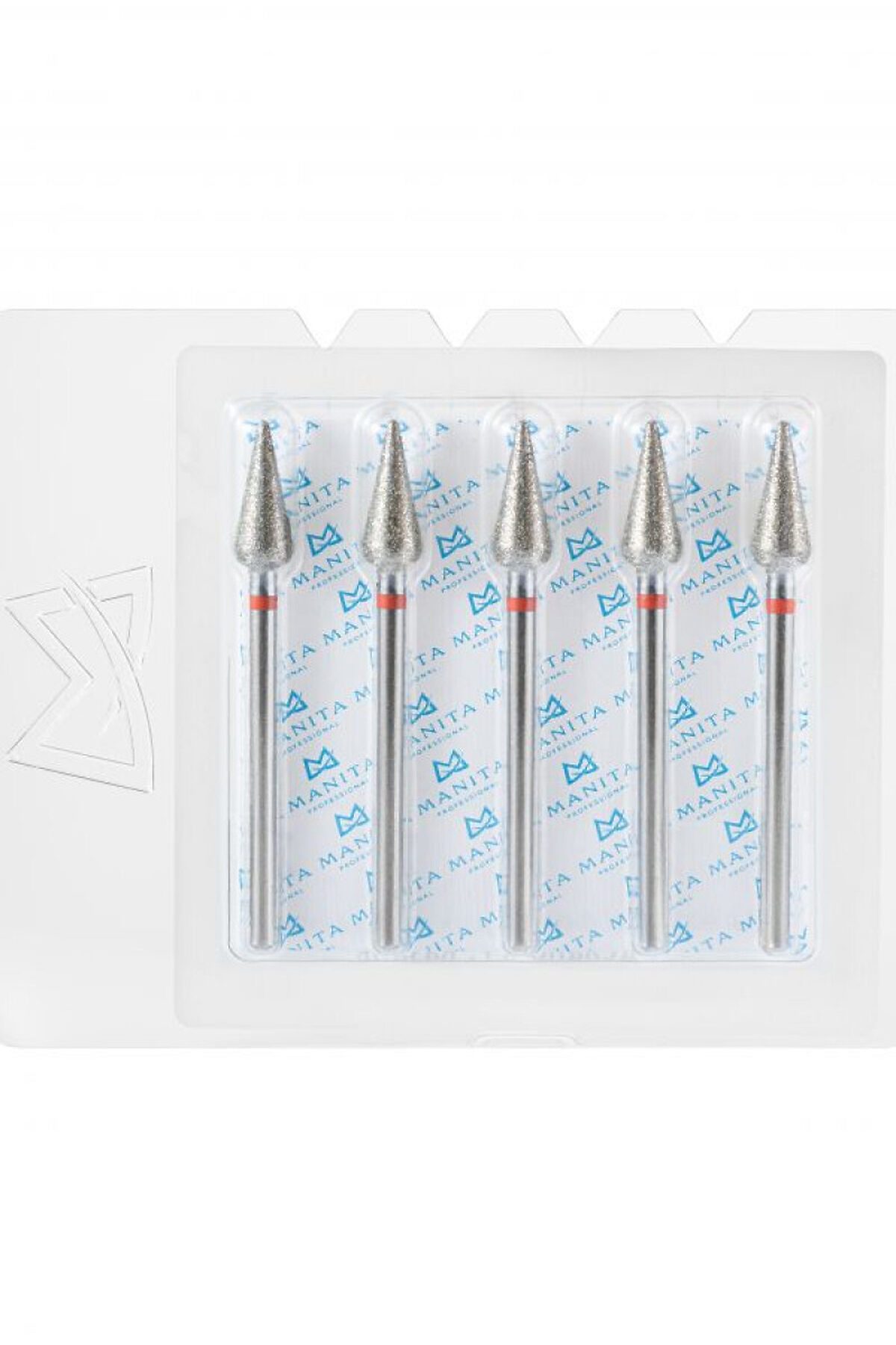 Manita Professional Фреза алмазная капля большая для аппаратного маникюра 856.104.260.125.050 ФАК-5,0 12,5М, красная насечка, ø 5,0 мм, 5 шт. KRISTALLER