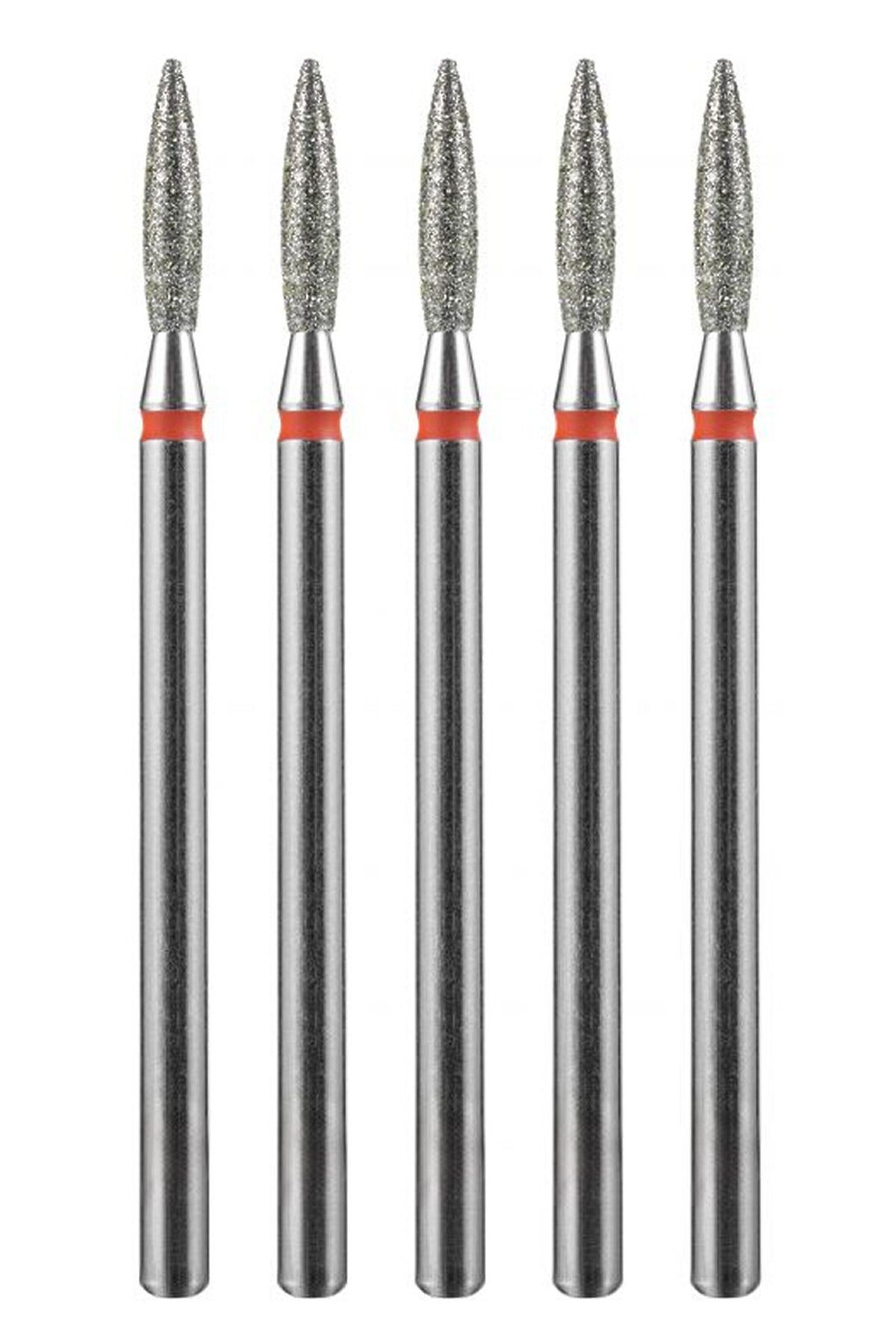 Manita Professional Фреза алмазная пламя острое удлиненное для аппаратного маникюра 856.104.243.100.021 ФАП-2.1 10М, красная насечка, ø 2,1 мм, 5 шт. KRISTALLER