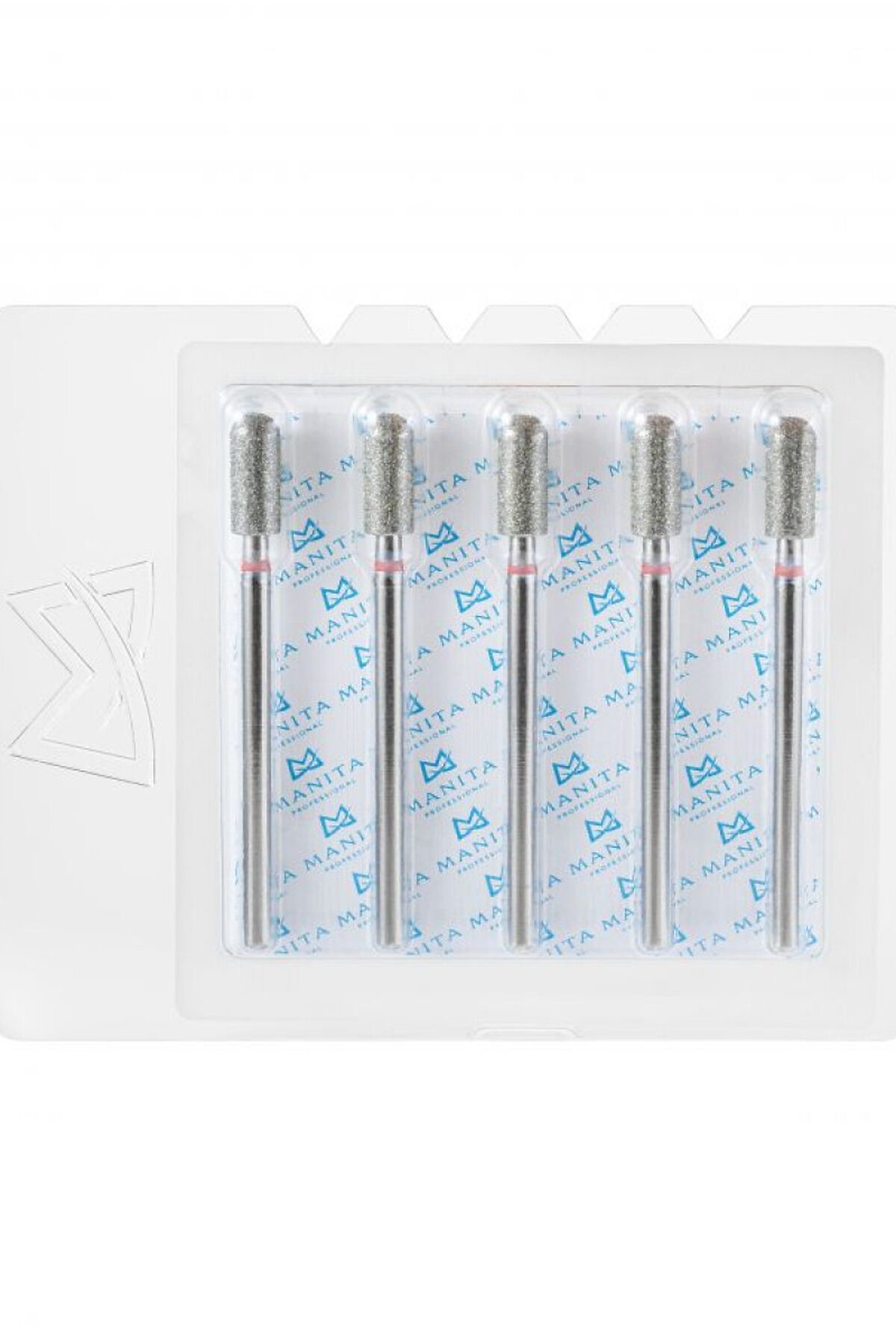 Manita Professional Фреза алмазная цилиндр закругленный для аппаратного маникюра 856.104.141.090.040 ФАЦС-4,0 9М, красная насечка, ø 4,0 мм, 5 шт. KRISTALLER