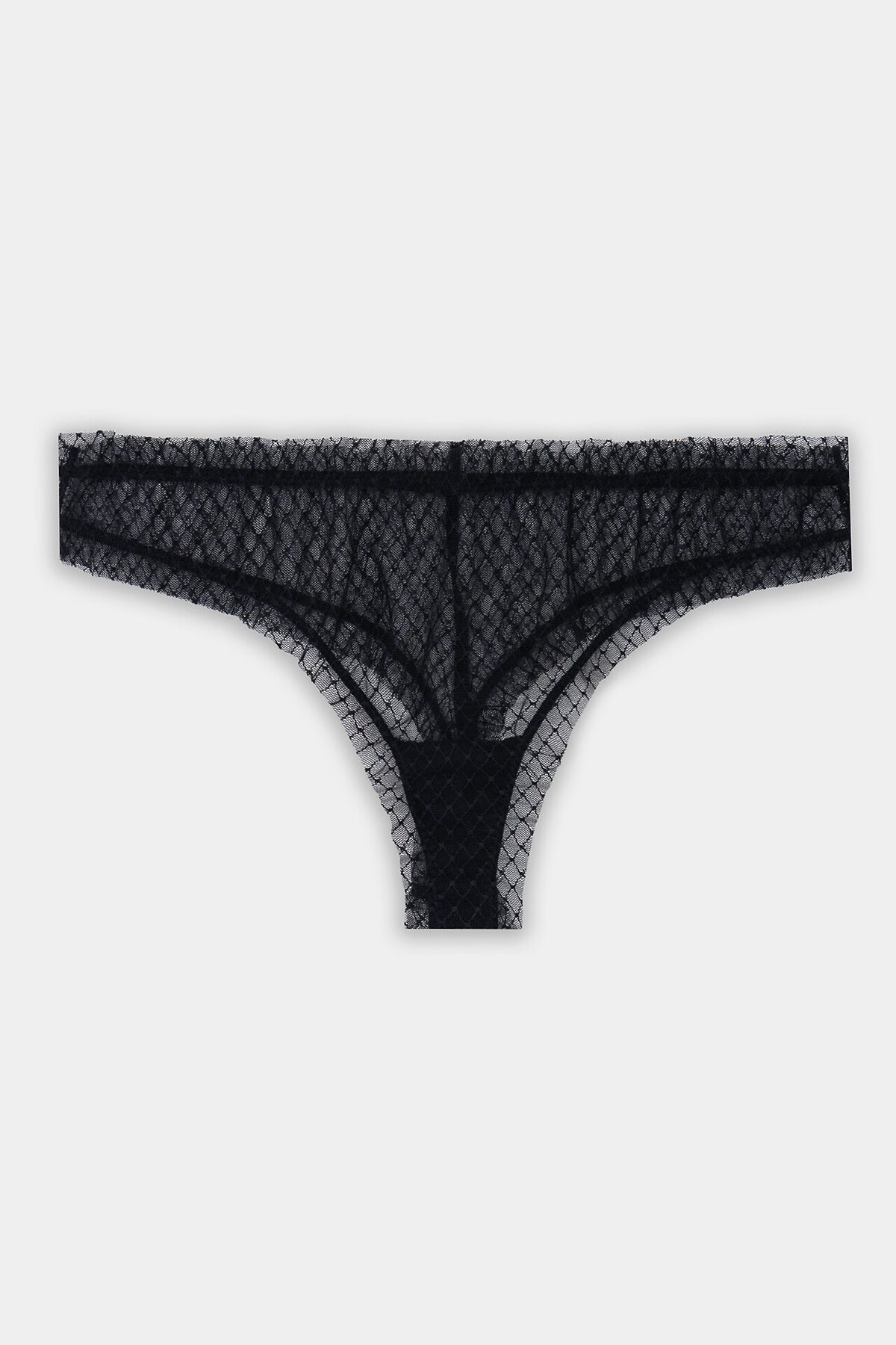 Трусы женские, средняя линия талии, силуэт - бразилиано. Передняя и задние детали выполнены из сетки. Подкладка ластовицы из хлопка, верхний срез подкладки ластовицы отлетной. По верхнему срезу трусов и по ножкам рюша из сборки, под низом жилка.