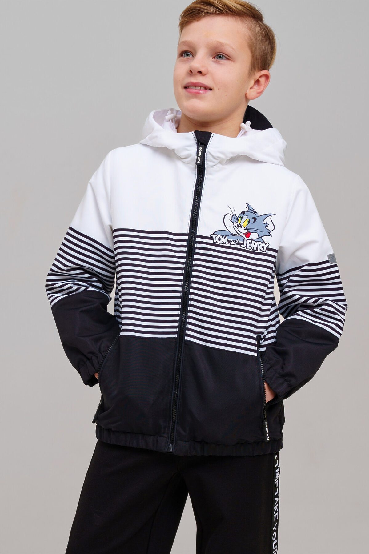 Куртка текстильная с полиуретановым покрытием для мальчиков (ветровка) PLAYTODAY, белый,черный