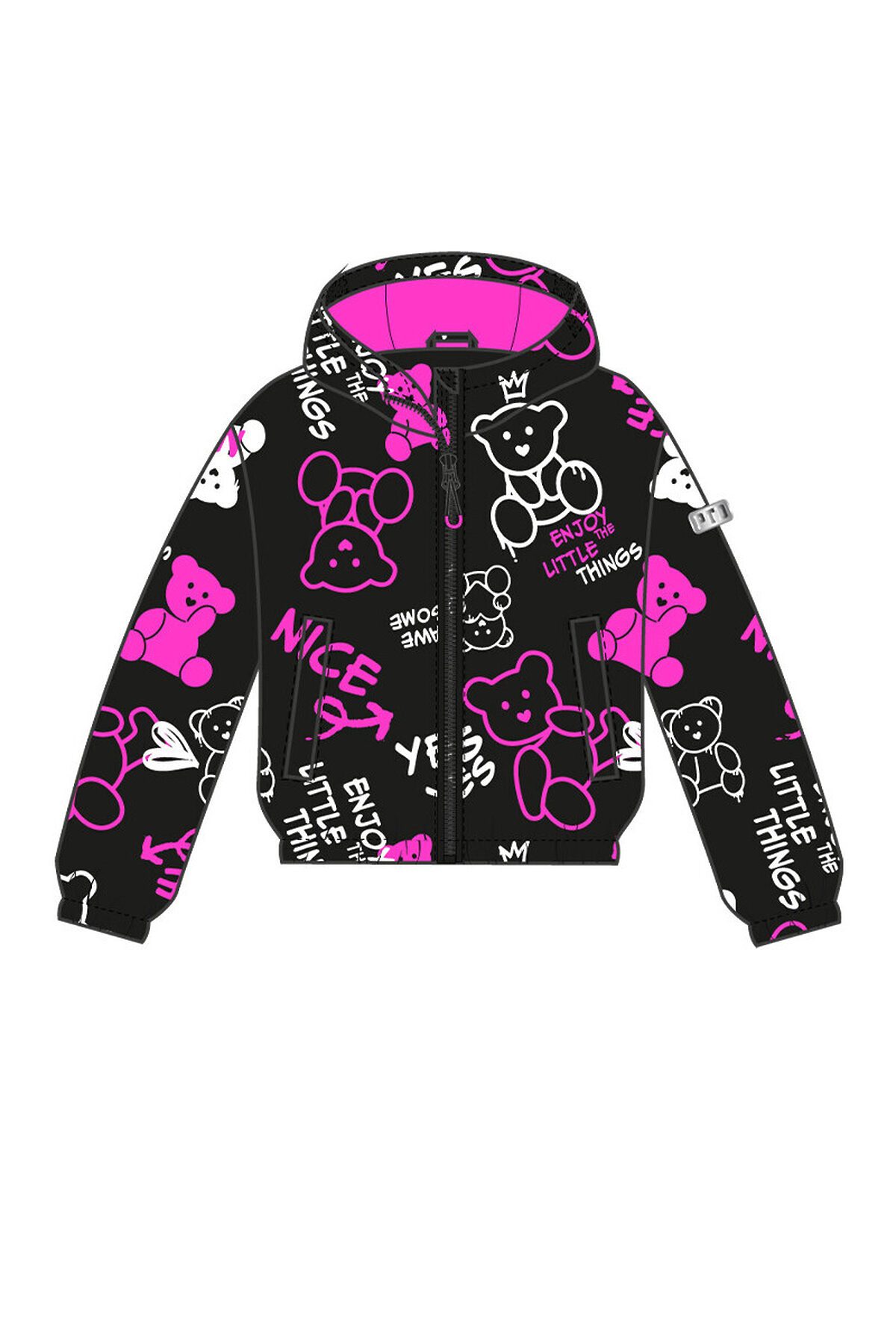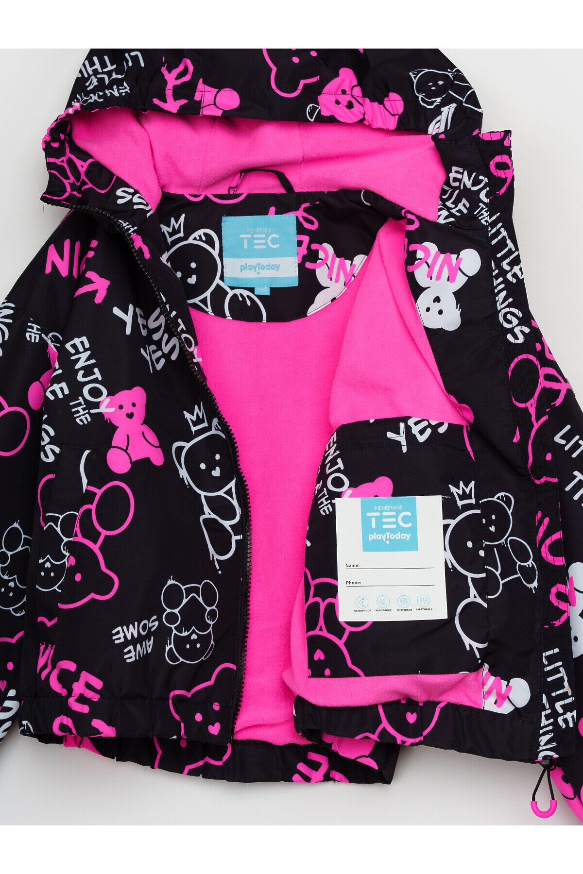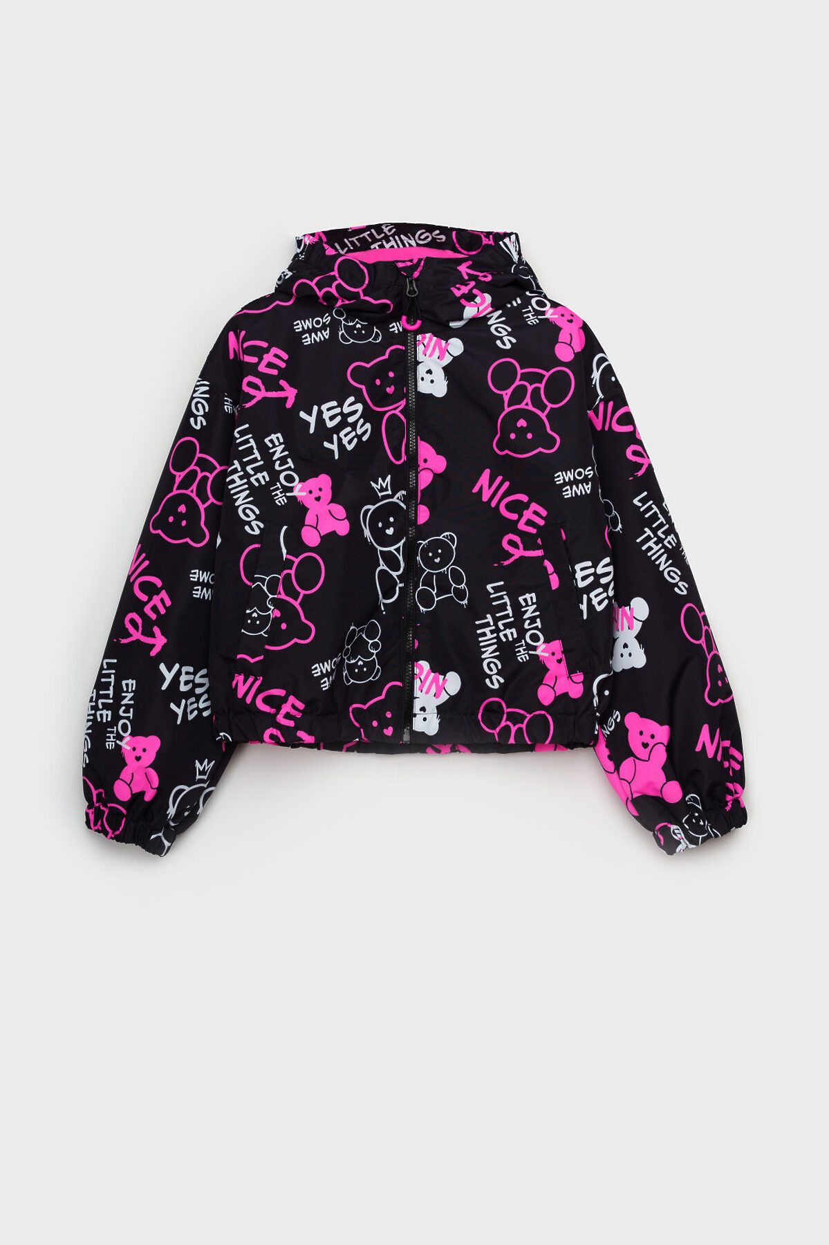 Куртка текстильная с полиуретановым покрытием для девочек (ветровка) PLAYTODAY, черный,фуксия,белый