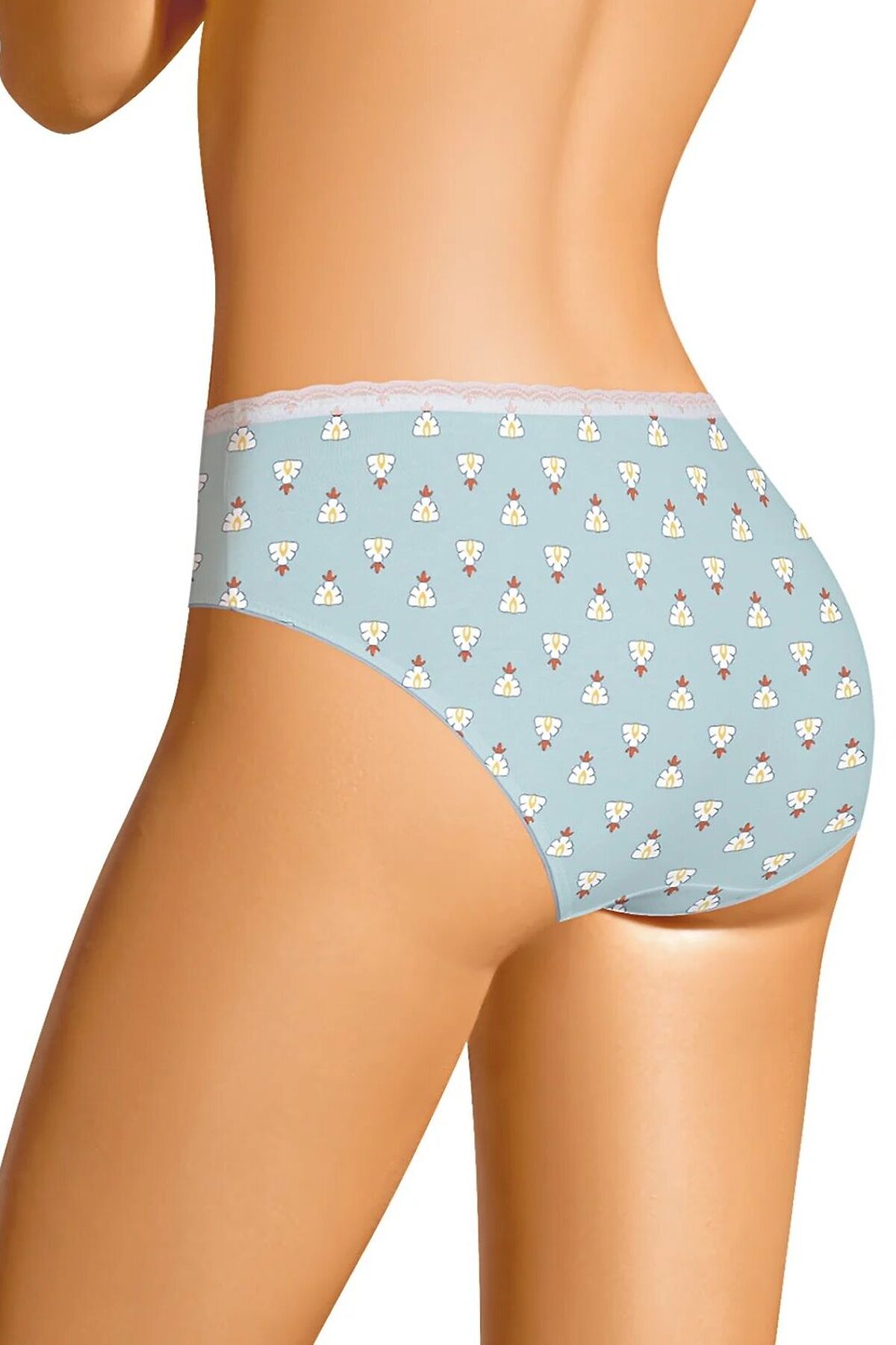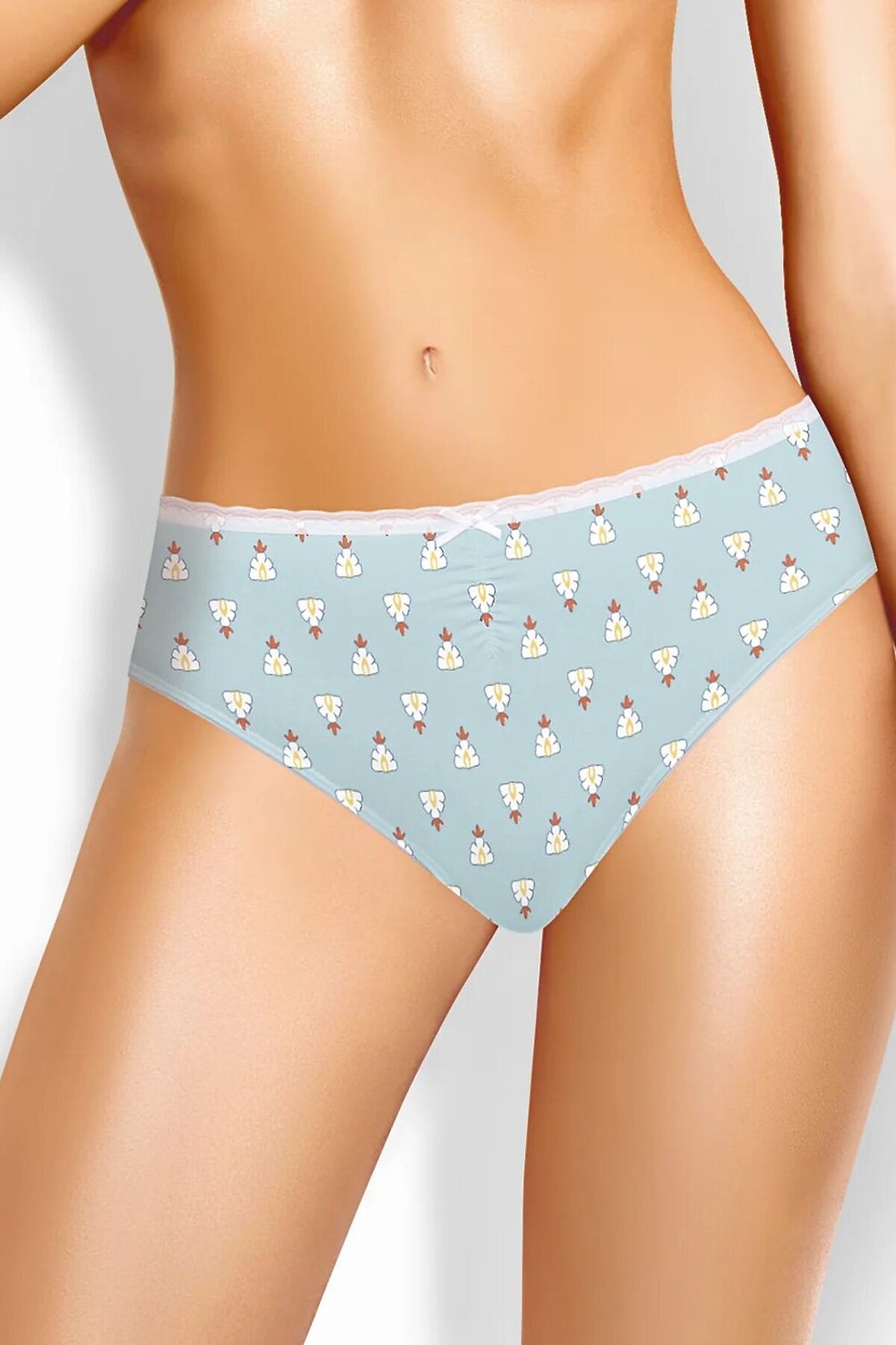 Трусы слипы женские из эластичного хлопкового полотна. Обработка краев по талии кружево с резинкой, по ноге - полуокантовка. По центру переда сборка на резинку, атласный бант.