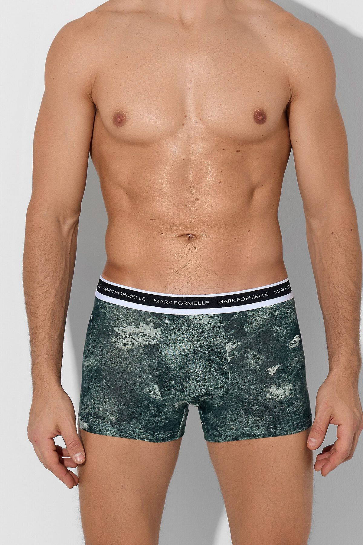 Трусы мужские из трикотажного полотна кулирного. Прилегающие, без боковых швов. Планка с вытачкой. Задний шов ластовицы обработан строчкой «флэт-лок». По верхнему срезу настрочена фирменная жаккардовая эластичная тесьма (30 мм или 35 мм, по заданию) на 3-хигольной плоскошовной машине. Боковой срез тесьмы стачен строчкой «флэт-лок». Нижние срезы застрочены швом вподгику на плоскошовной машине.