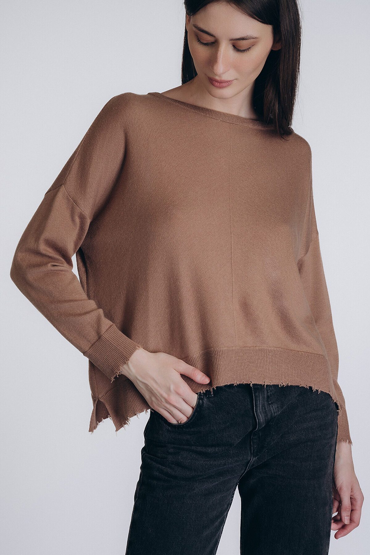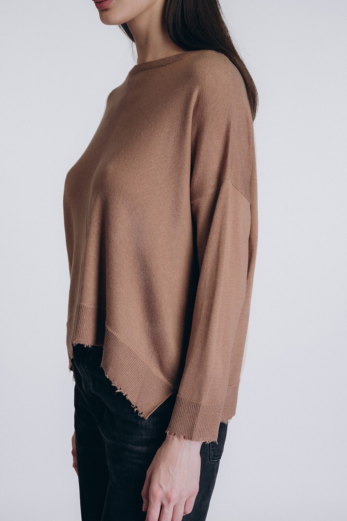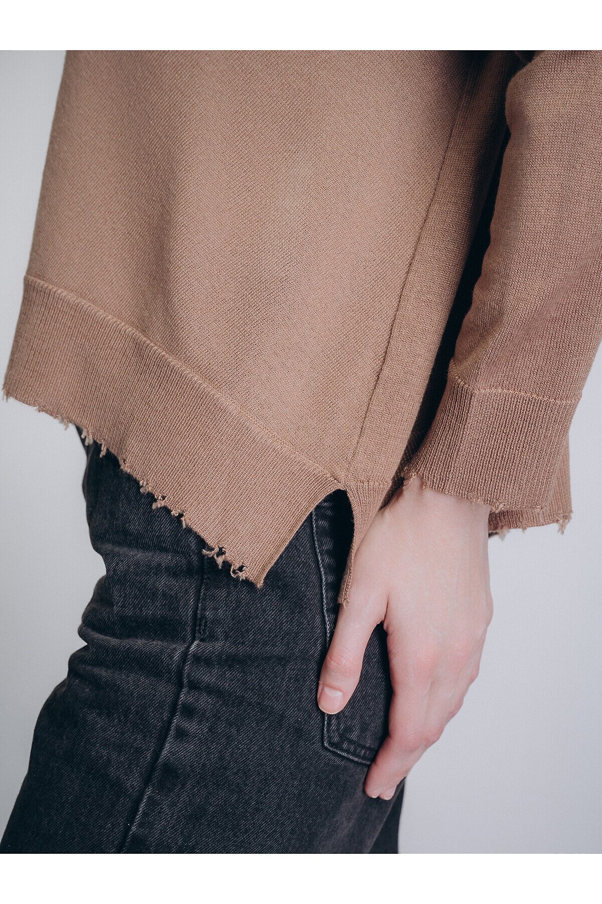 Женская кофта бренда Indefini выполнена в светло-бежевом оттенке из мягкой смесовой ткани с высоким содержанием полиэстера, акрила, нейлона и шерсти. Лёгкая дышащая ткань и свободный крой с асимметричным низом обеспечивают комфорт и свободу движений. Нежный бежевый оттенок придаёт образу утончённость и современную лаконичность, делая эту кофту универсальным элементом повседневного гардероба.