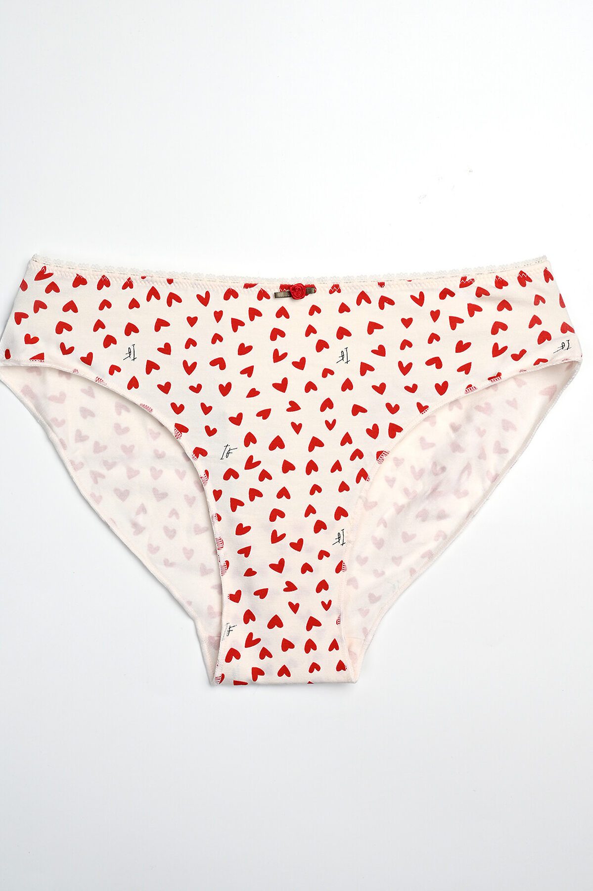 Женские трусы-слипы с комфортной посадкой. Модель украшена россыпью ярких красных сердечек — такой принт поднимет настроение с утра. Легкая ткань поддерживает оптимальный микроклимат, приятна к телу. Трусы универсальны: в них удобно спать и ходить в течение дня.