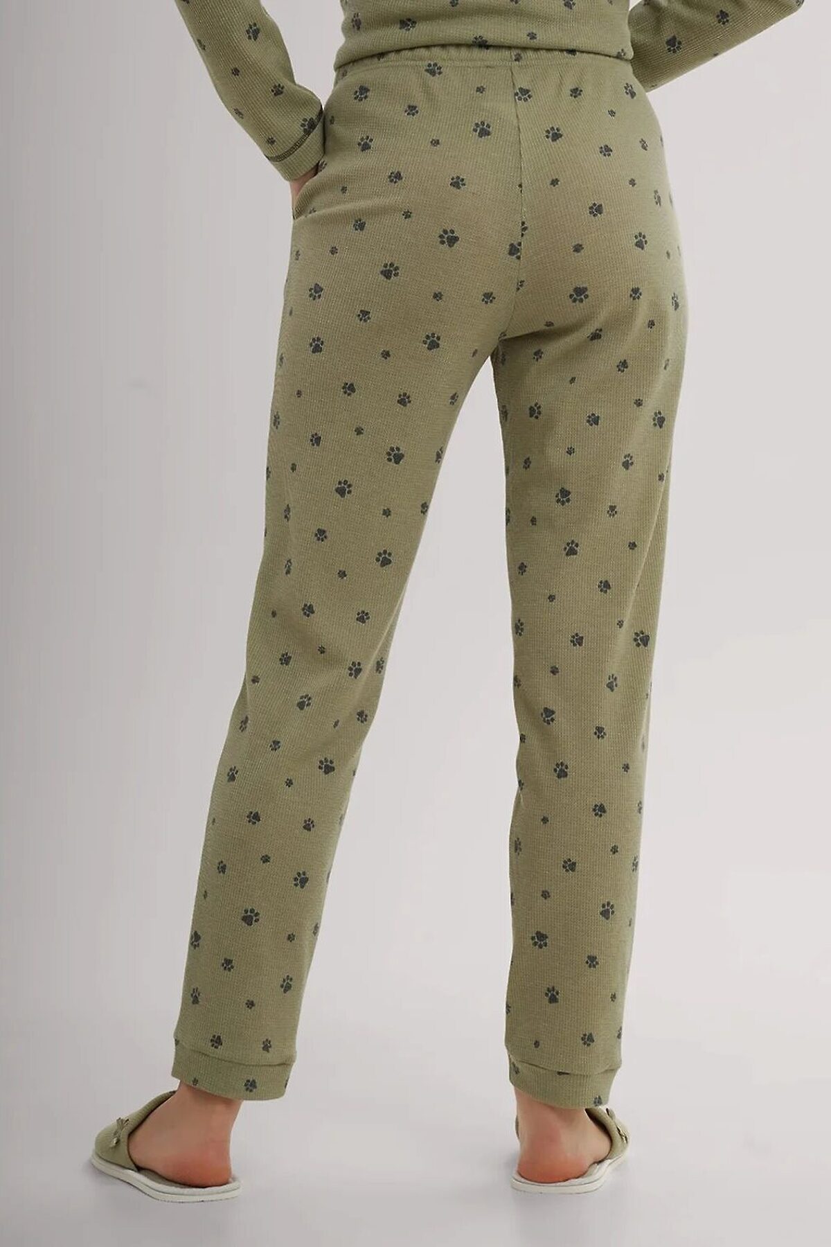 Набор одежды из трикотажного полотна "вафелька". Фуфайка прямого силуэта.По горловине обтачка. Втачной длинный рукав. По горловине,низу изделия и рукавов застил. Брюки с притачным поясом на внутренней резинке. Боковые карманы в швах. По низу брюк манжет.