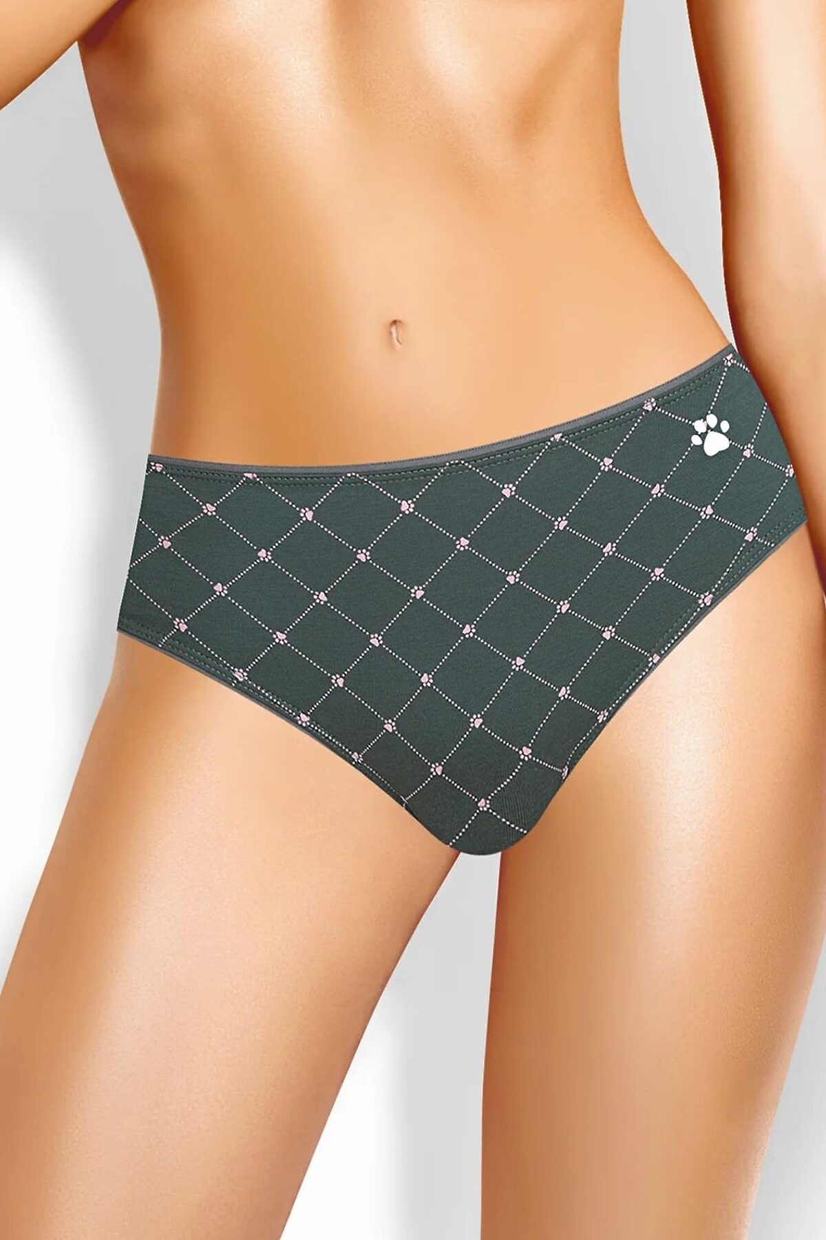 Трусы слипы женские из эластичного хлопкового полотна. Обработка краев по талии - резинка с кантом, по ноге - полуокантовка. Спереди термопленка.