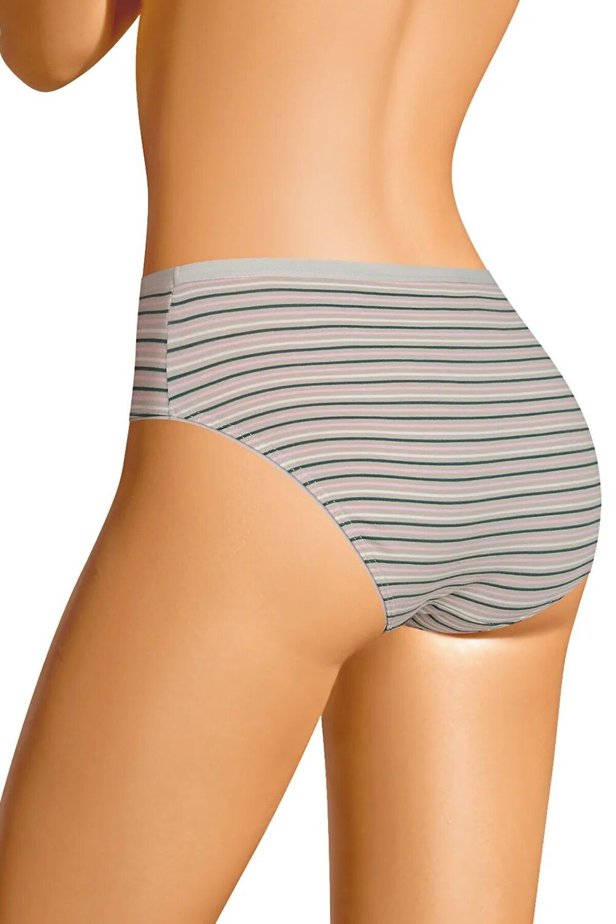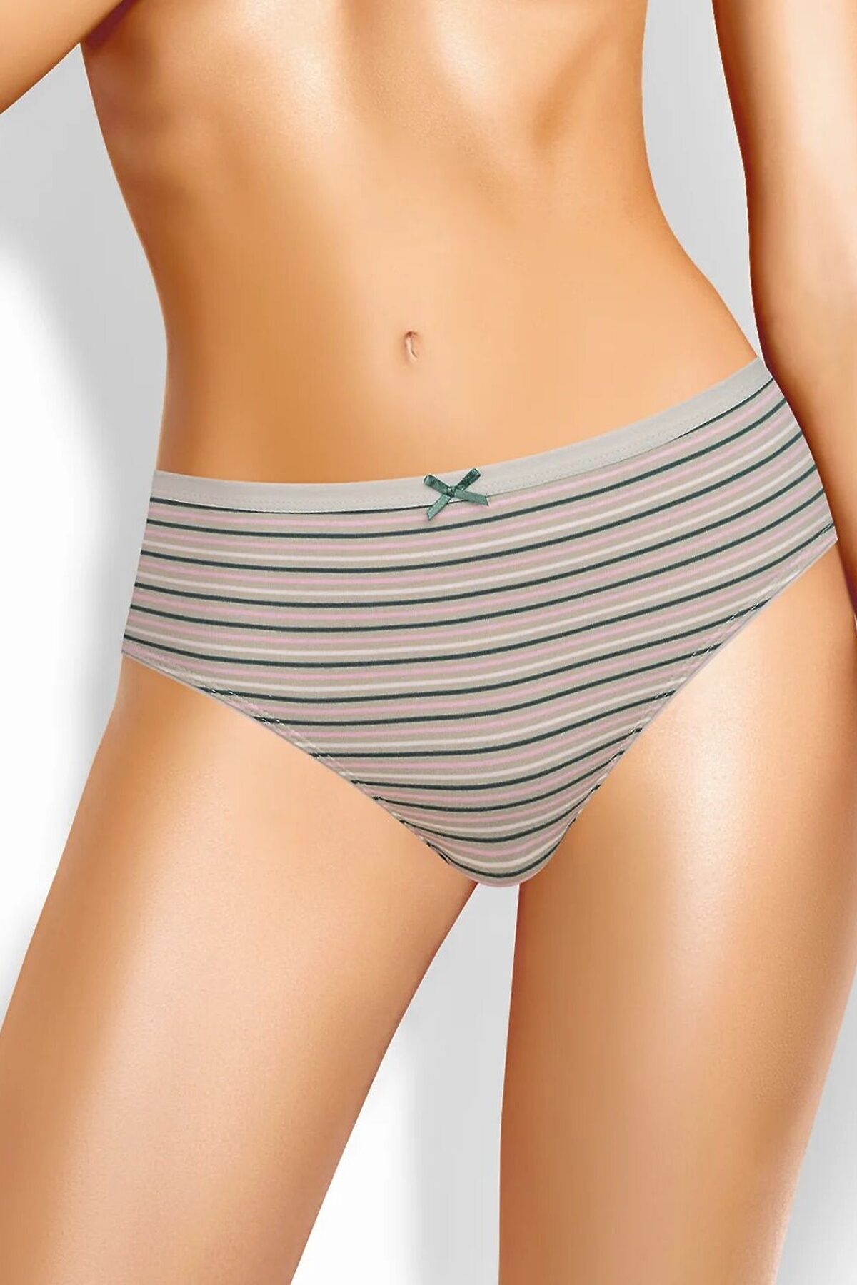 Трусы слипы женские из эластичного хлопкового полотна. Обработка краев по талии - окантовочная резинка, по ноге - полуокантовка. По переду атласный бант.